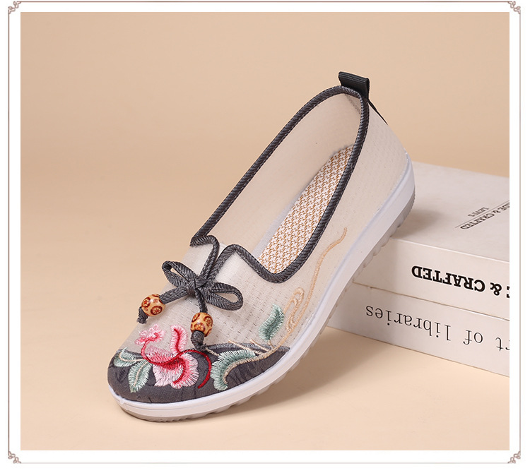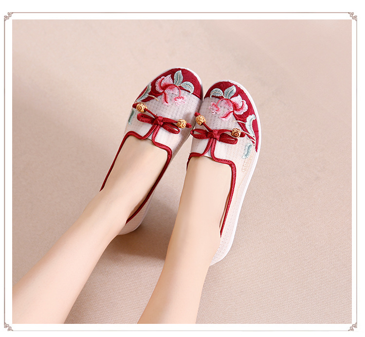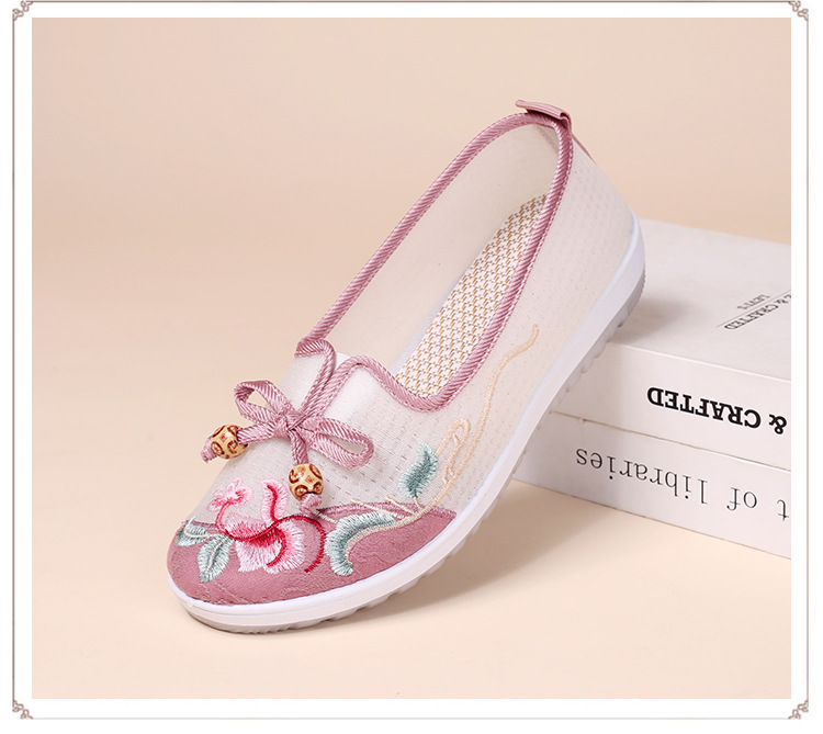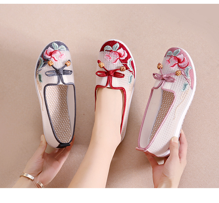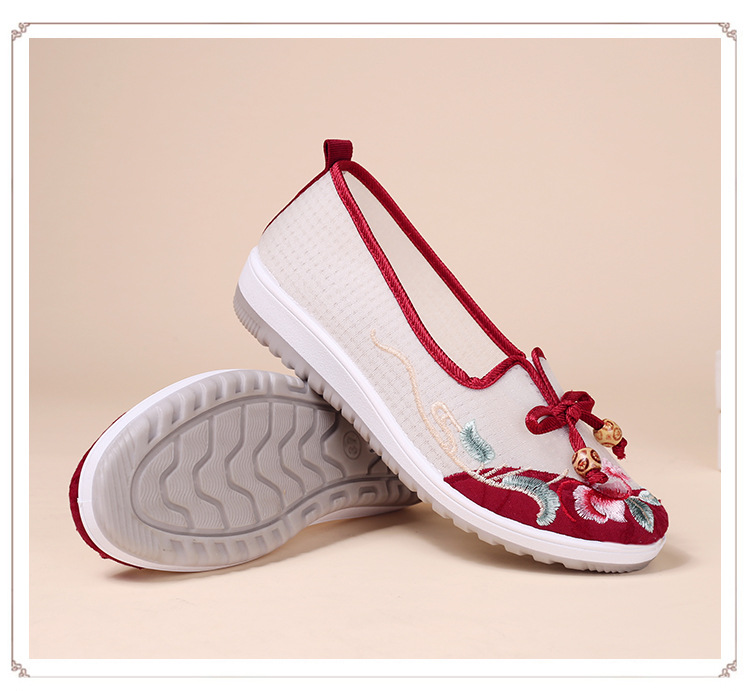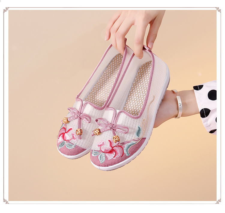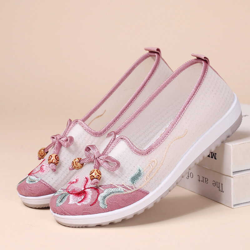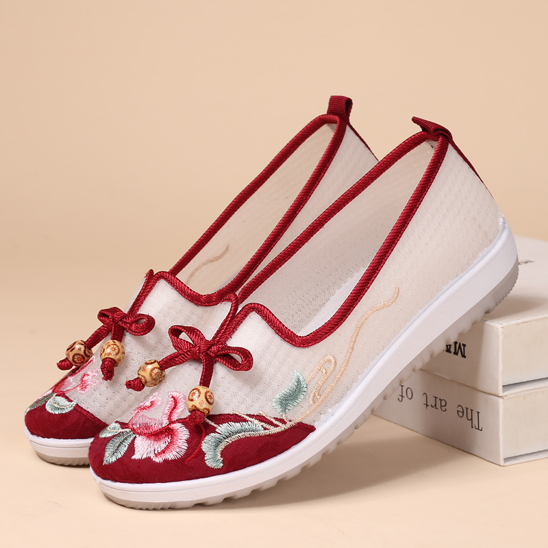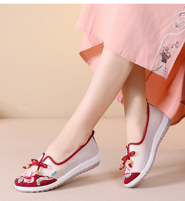 Женские летние тканевые туфли в стиле старого Пекина, дышащие сетчатые туфли для ханьфу с вышивкой, женские туфли на мягкой подошве с неглубоким вырезом и ажурным дизайном.