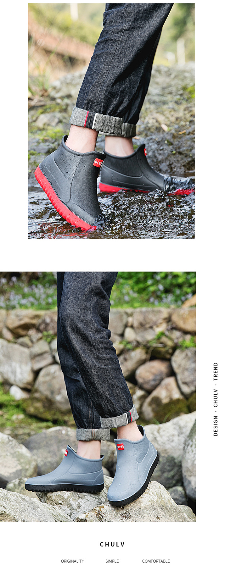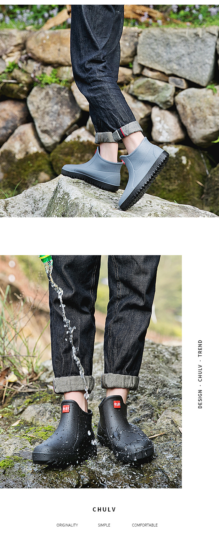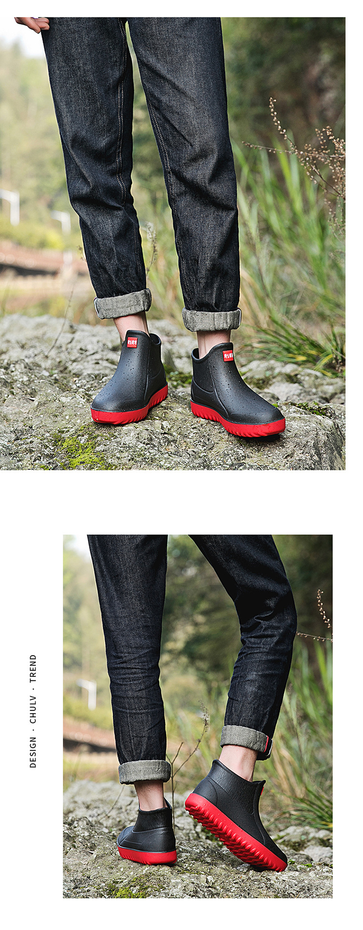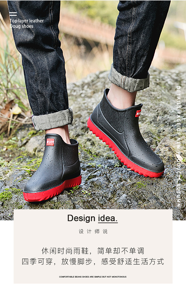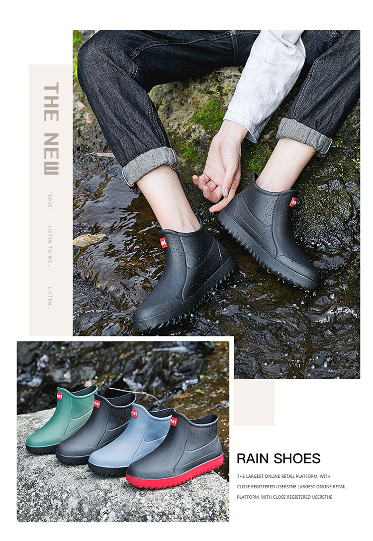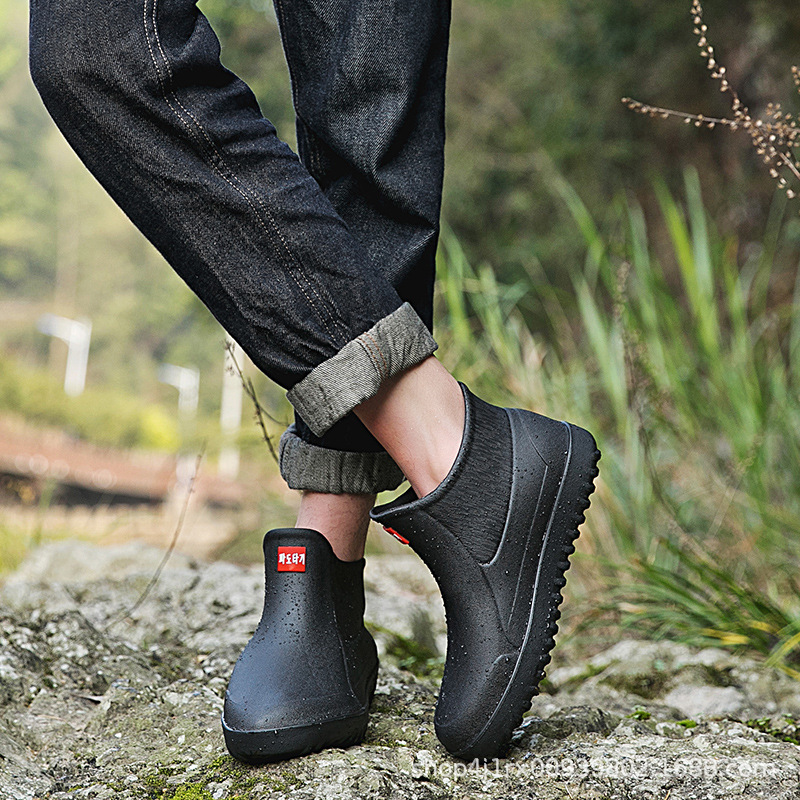 Трансграничные корейские уличные резиновые сапоги, Мужская короткая модная непромокаемая обувь, резиновая обувь для мойки автомобилей, нескользящие легкие кухонные галоши