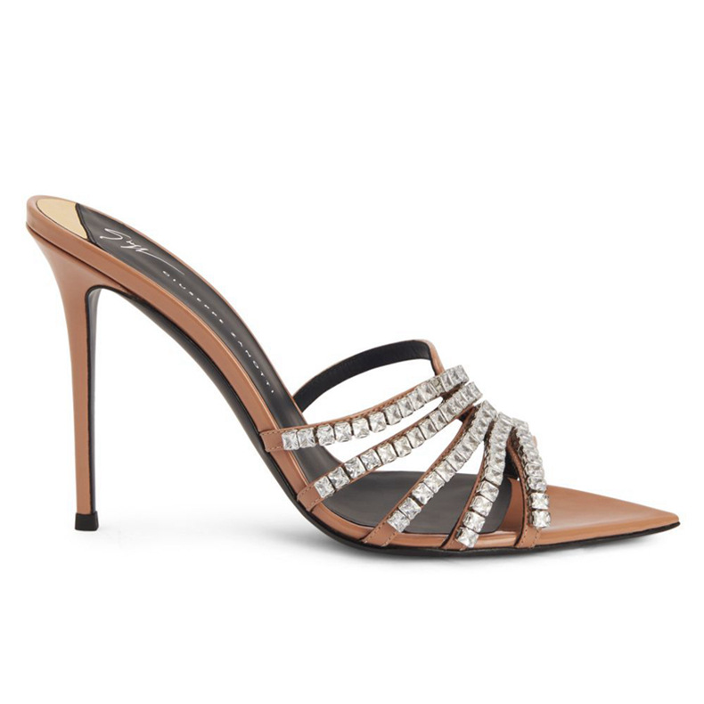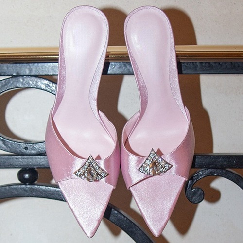 Новые туфли-мюли 2025 года с открытым носком, острым носком, стразами, на тонком высоком каблуке, без застежки, в европейском и американском стиле, с декором из страз.