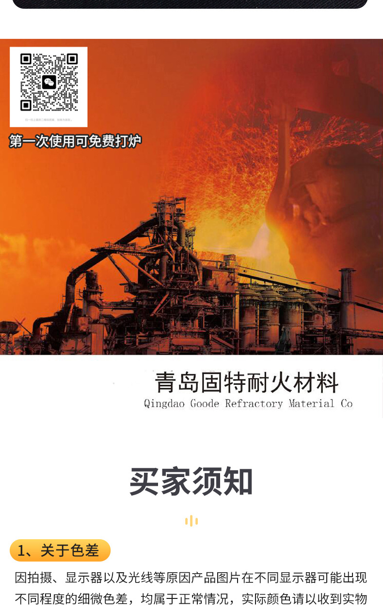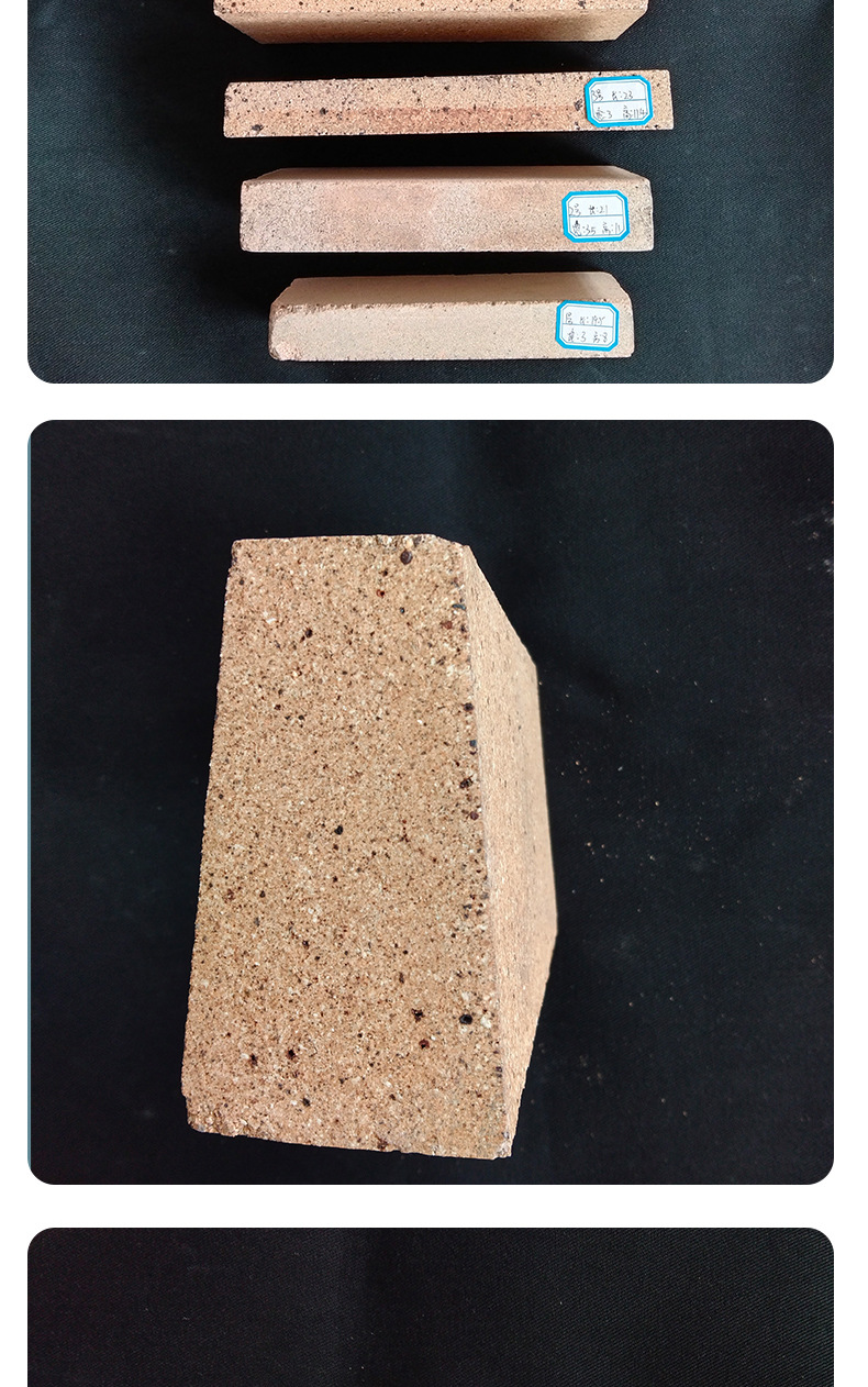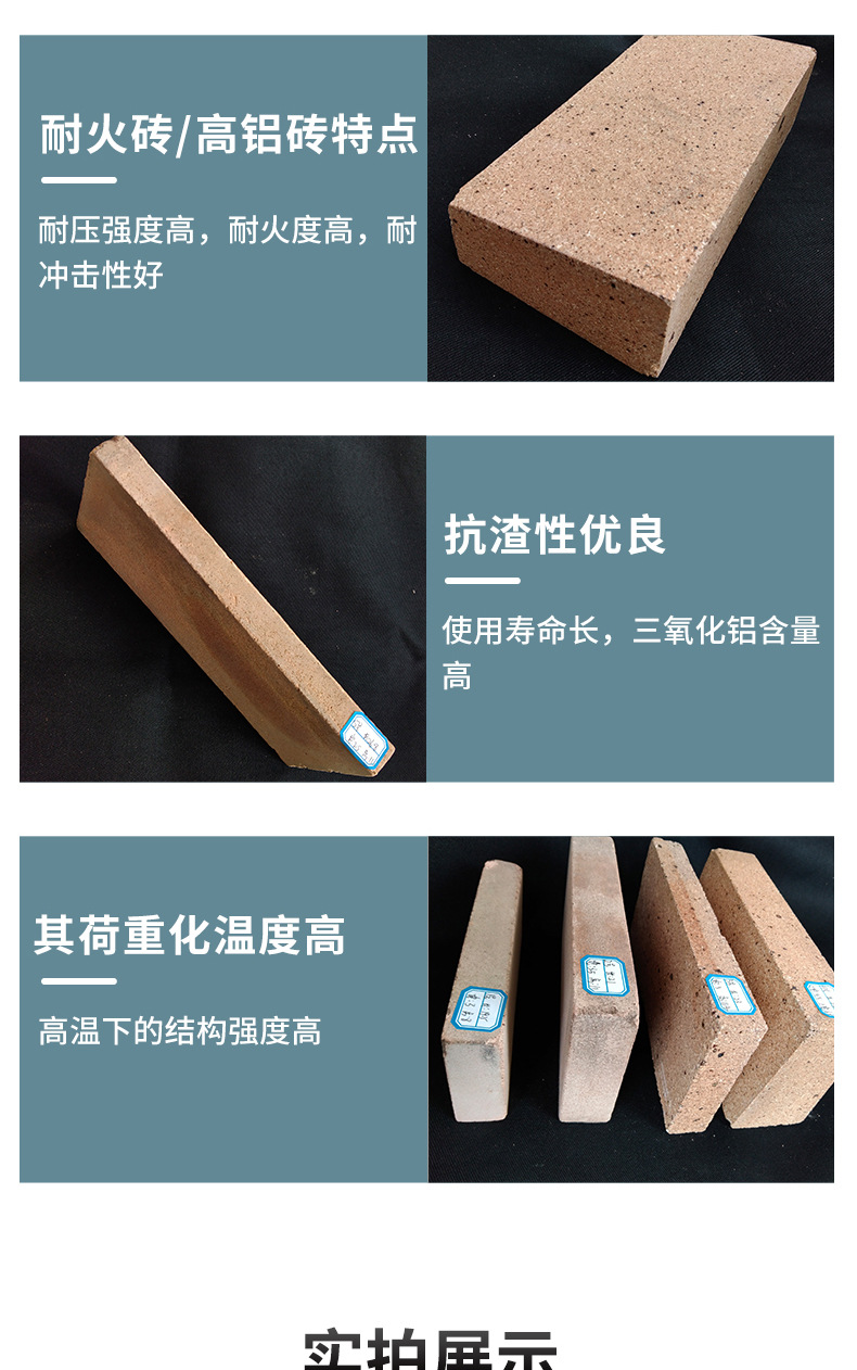耐压强度高,耐火度高,耐冲击性好,抗腐蚀强,抗渣性优良,使用寿命长,三氧化铝含量高,其荷重化温度高,高温下的结构强度高。