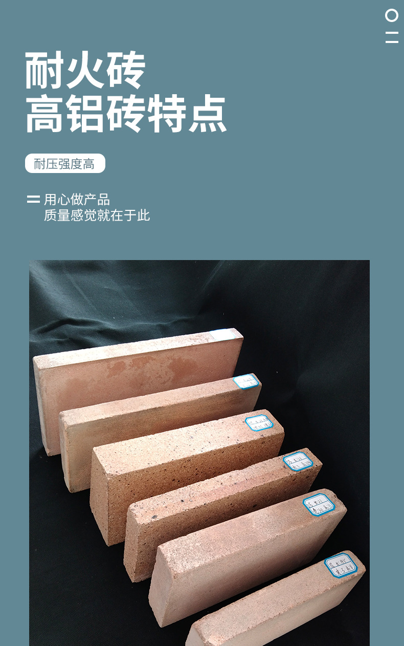 高铝砖是三氧化二铝(Al2O3)含量高的硅酸铝质耐火材料制品。由矾土或其他氧化铝含量较高的原料经成型和煅烧而成。热稳定性高,耐火度在1770℃以上。抗渣性较好,用于砌筑炼钢电炉、玻璃熔炉、水泥回转炉等的衬里。