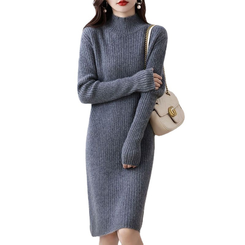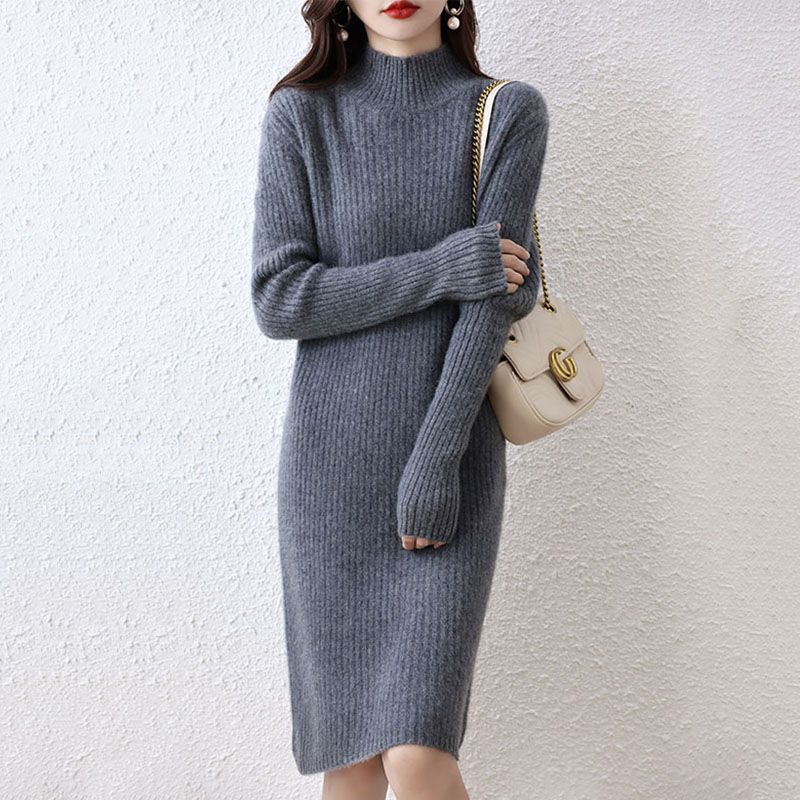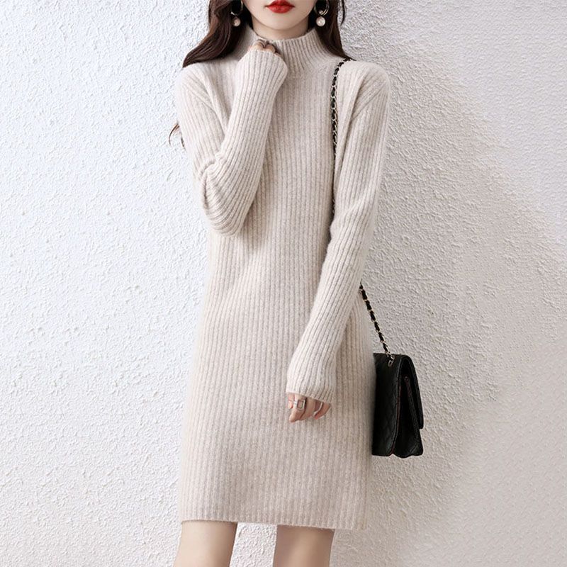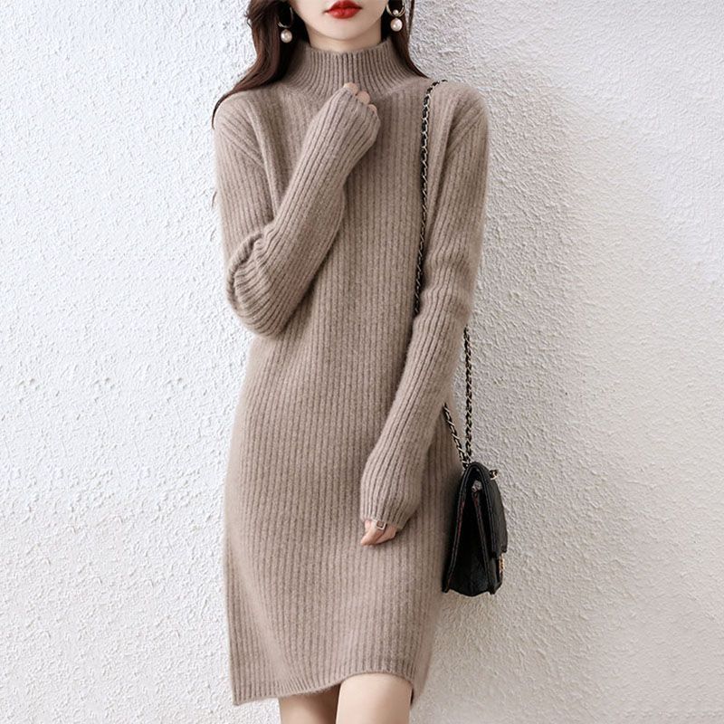 Простая Однотонная рубашка, женский свитер средней длины с высоким воротом, осенне-зимняя приталенная Базовая рубашка узкого кроя, теплая