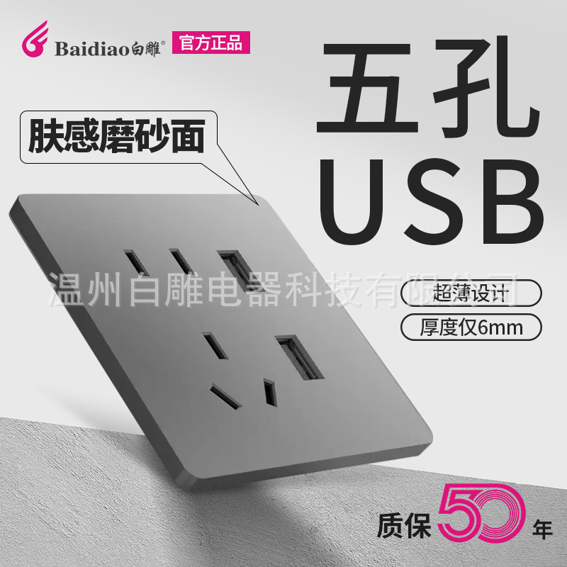 Оптовая продажа 86 типов бытовых ультратонких серых настенных выключателей, одна открытая панель розеток USB с пятью отверстиями