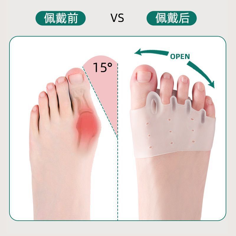Силиконовый Ортез для пальцев ног с пятью отверстиями, коррекция вальгусной деформации большого пальца, артефакт, подушка для передней стопы, подушка половинного размера