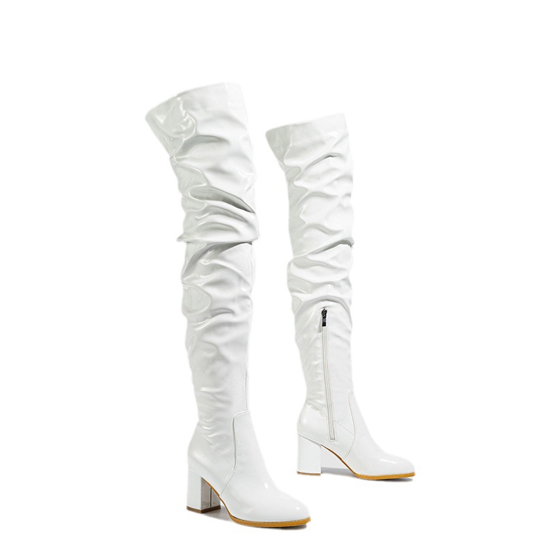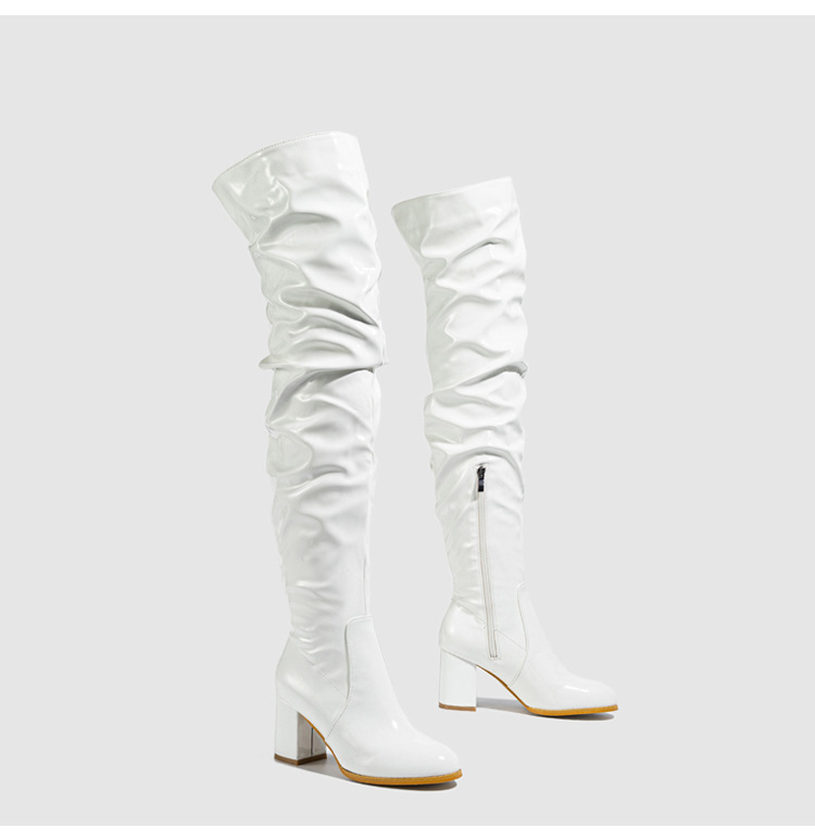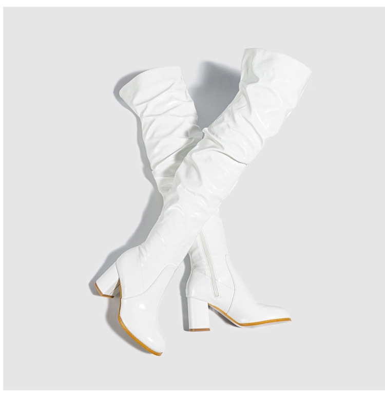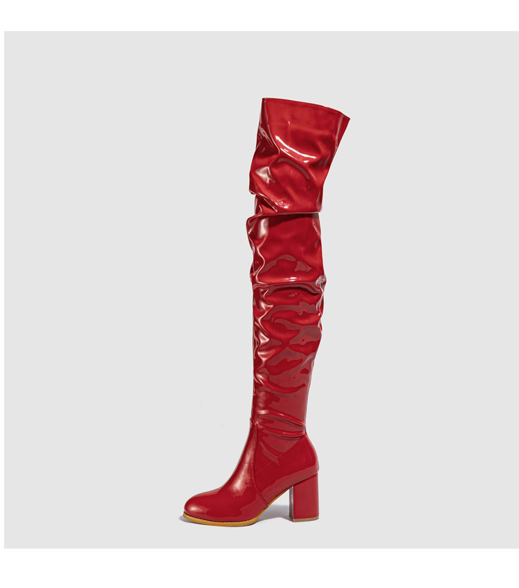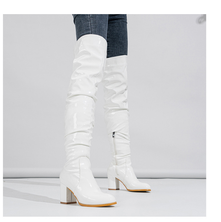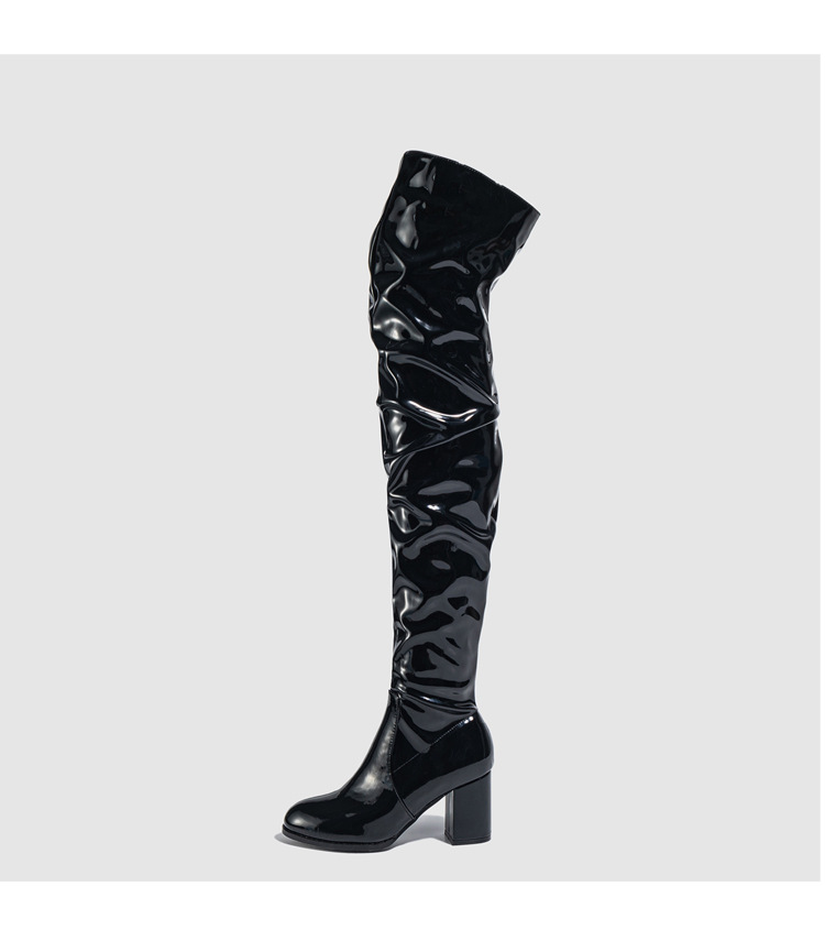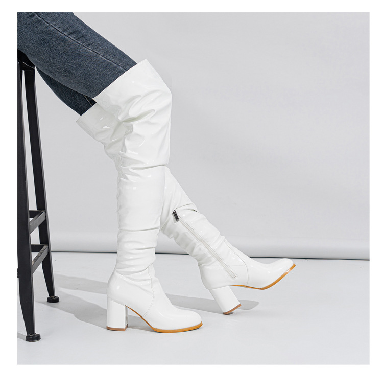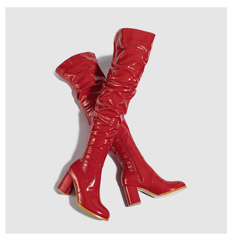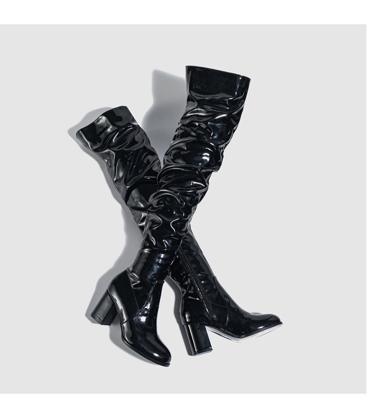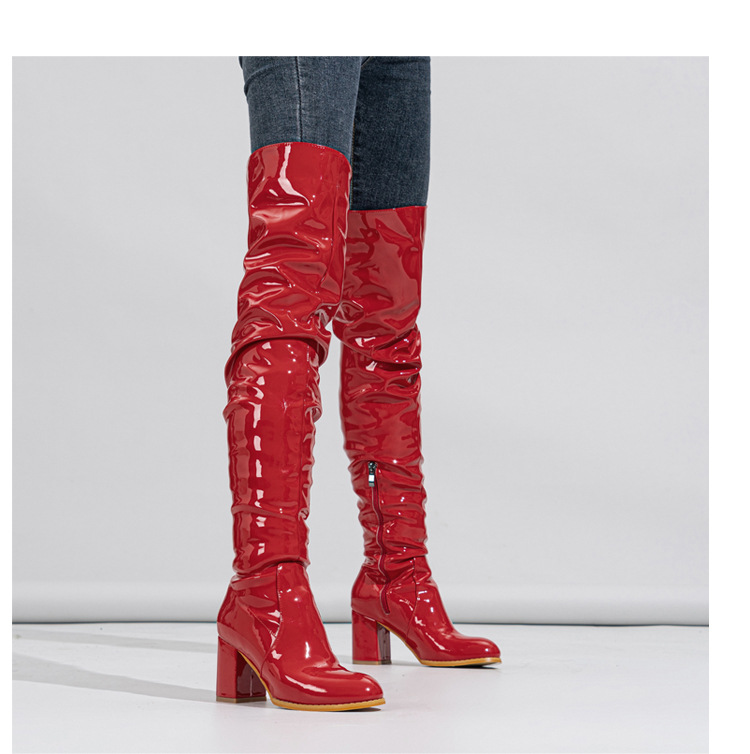 Трансграничные поставки на складе, женские сапоги на высоком каблуке, модные сапоги до колен из лакированной кожи с круглым носком, зеркальные сапоги до колен на толстом каблуке, внешняя торговля, 42 ярда
