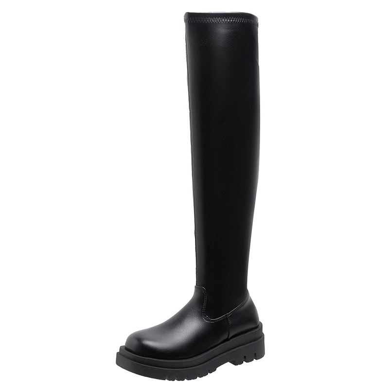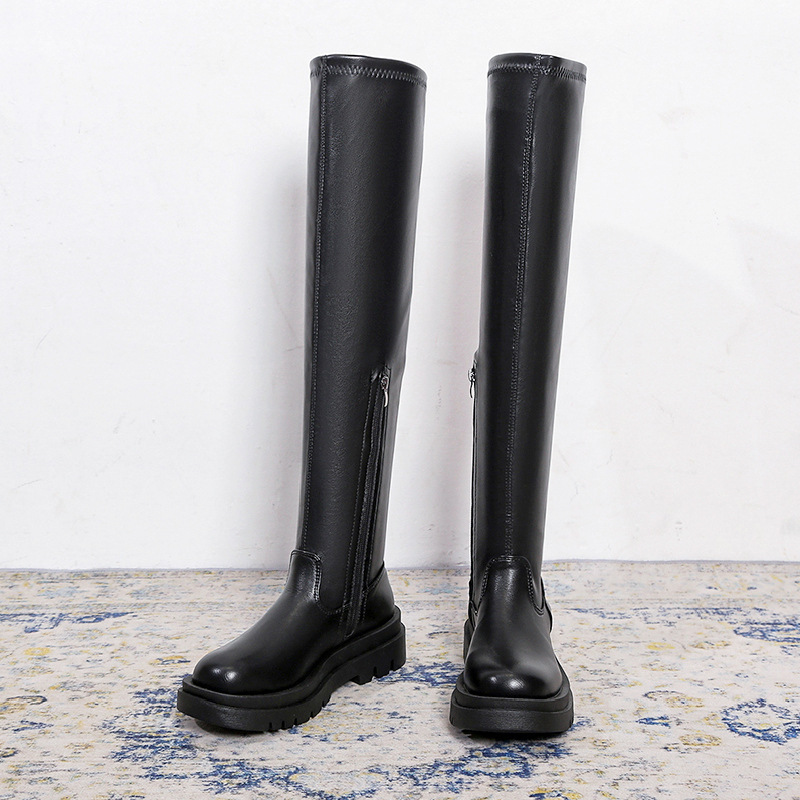 Европейские и американские большие размеры, осень и зима 2023, новые эластичные сапоги, женские высокие сапоги на толстой подошве, утягивающие Сапоги выше колена с боковой молнией