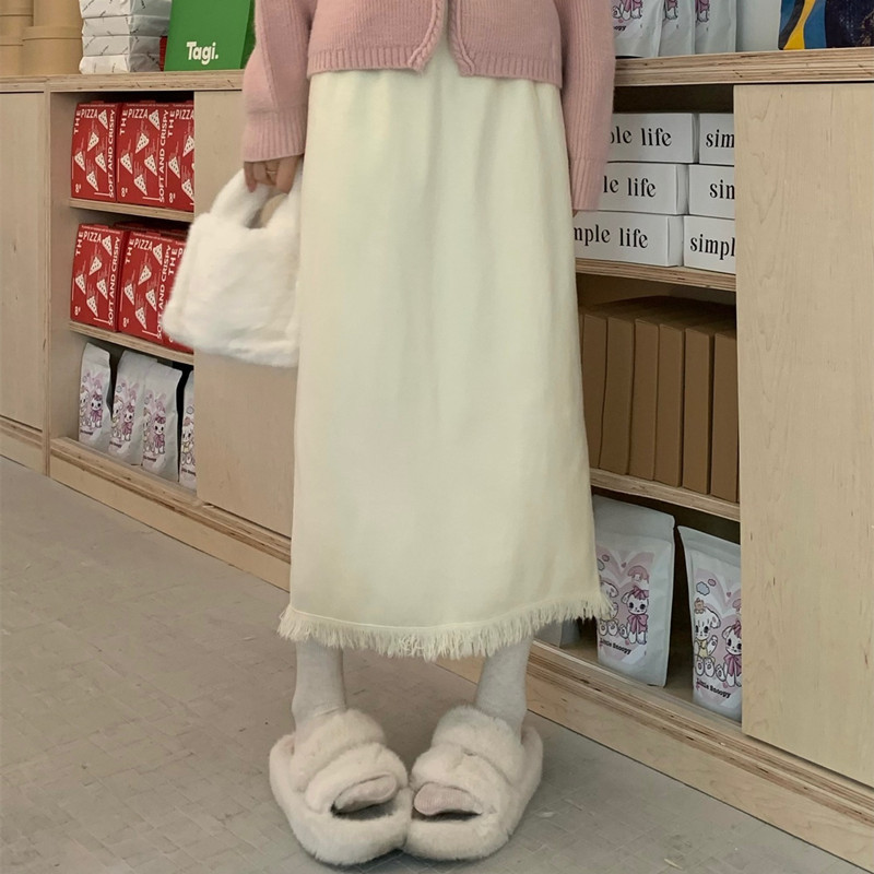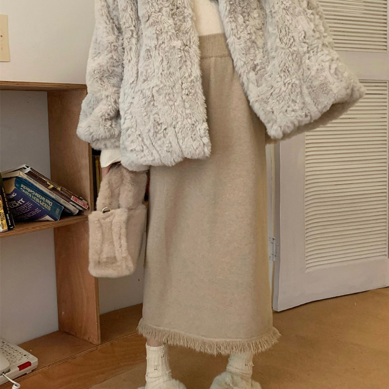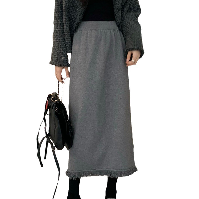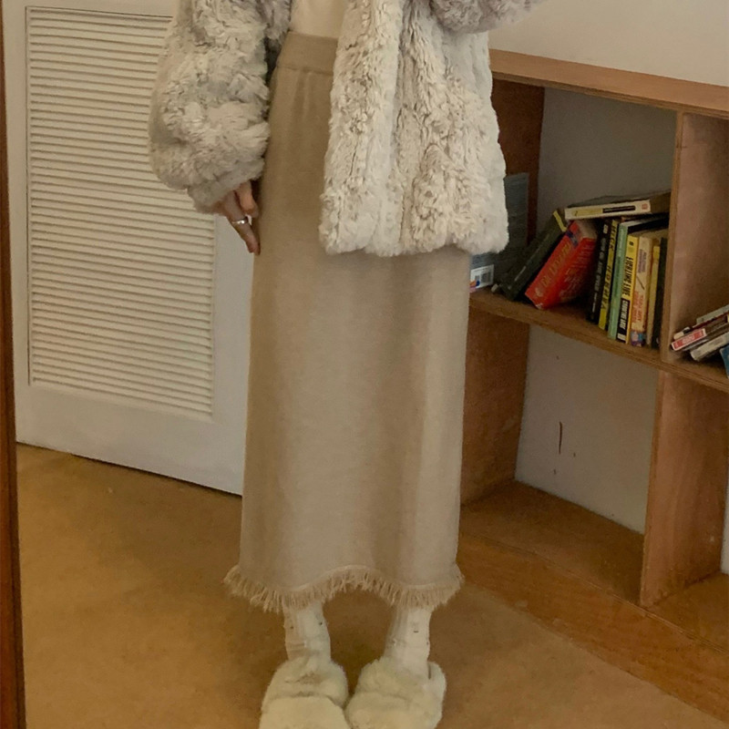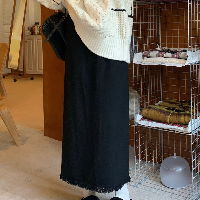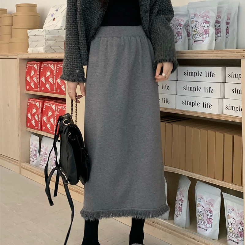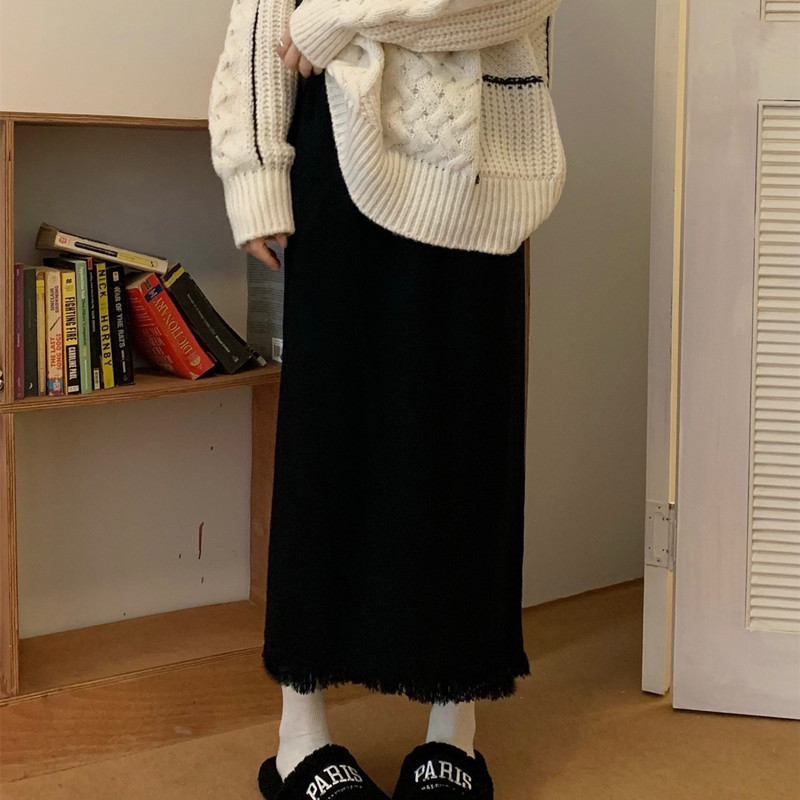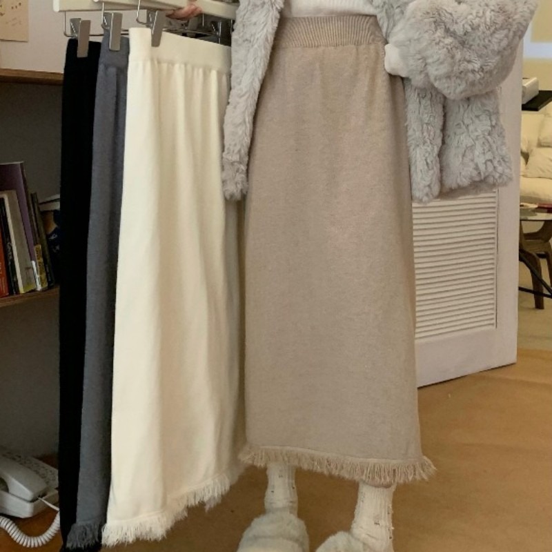 2023 Осенне-зимняя новая вязаная юбка средней длины с кисточками в Корейском стиле с дизайном и кисточками, приталенная юбка-силуэта для женщин