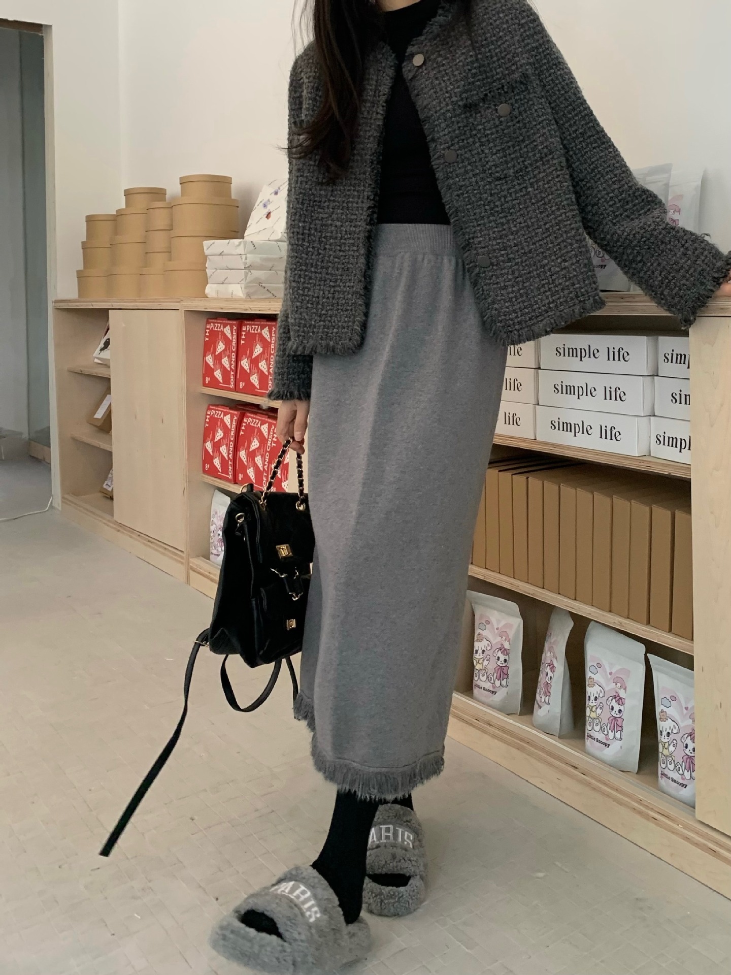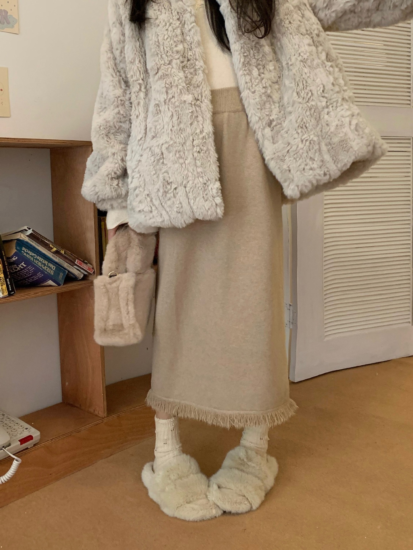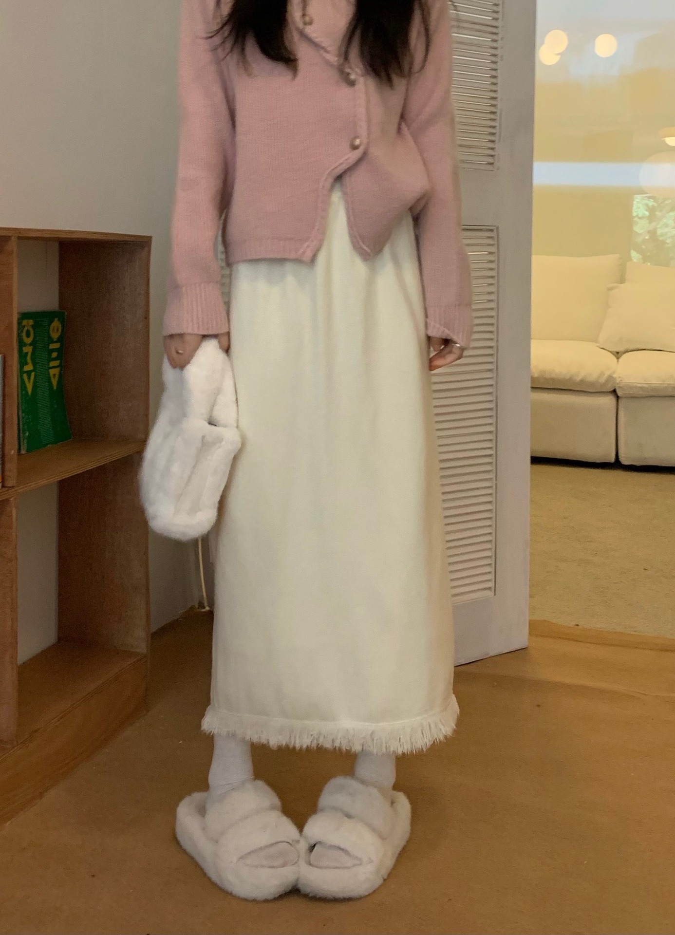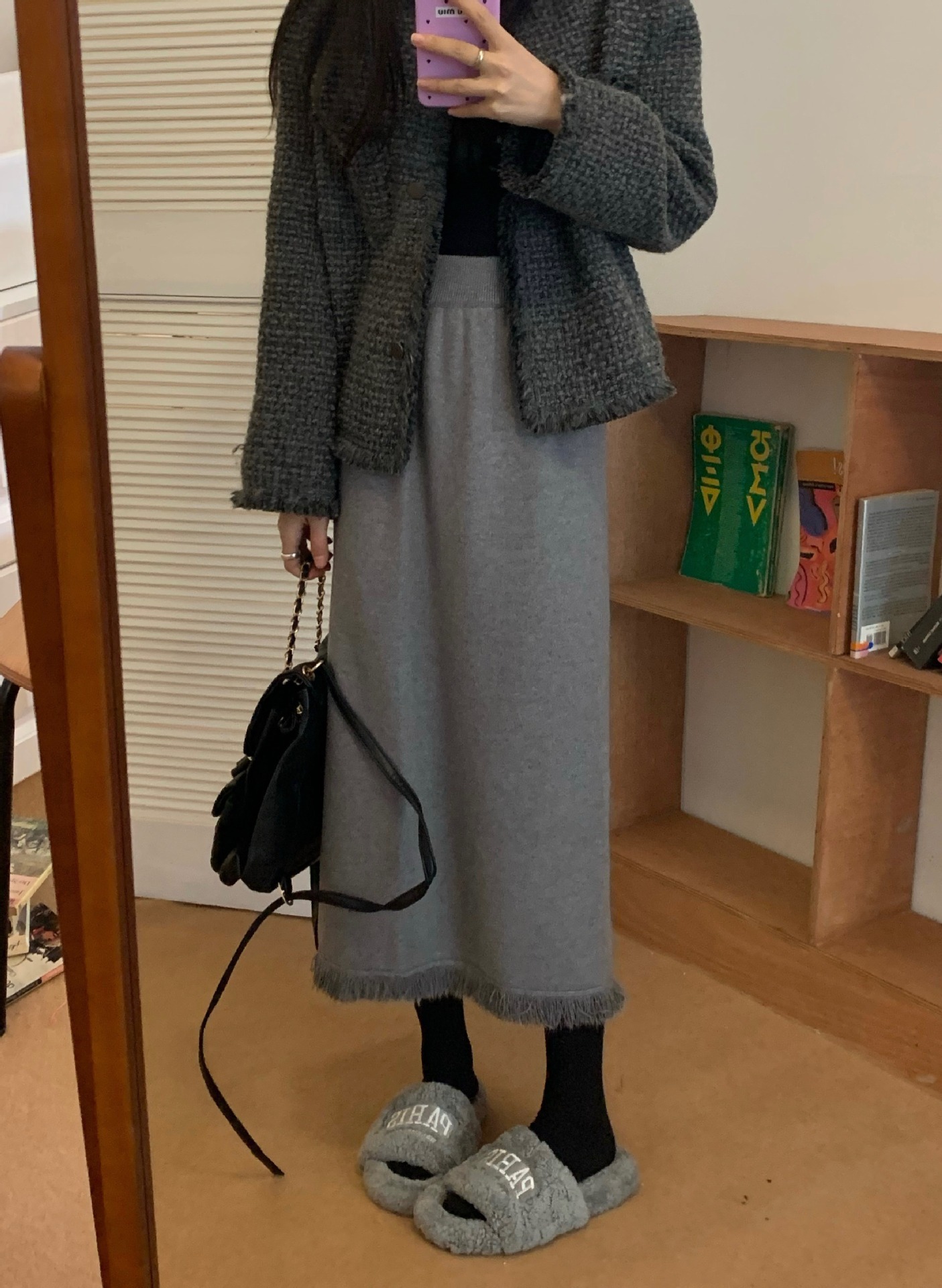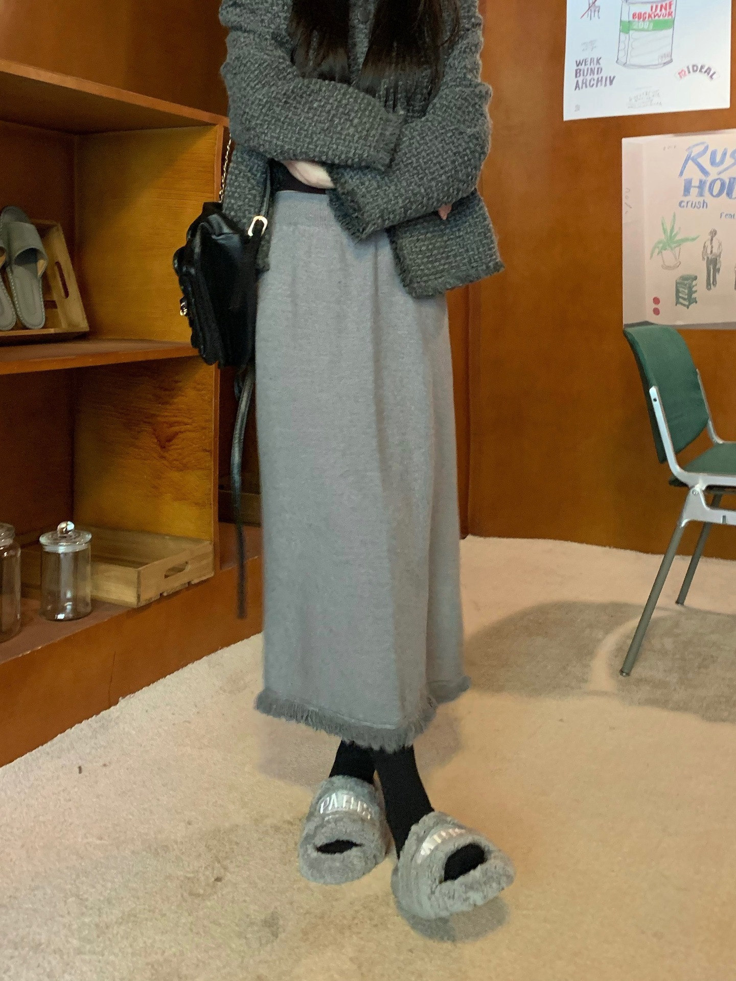2023 Осенне-зимняя новая вязаная юбка средней длины с кисточками в Корейском стиле с дизайном и кисточками, приталенная юбка-силуэта для женщин