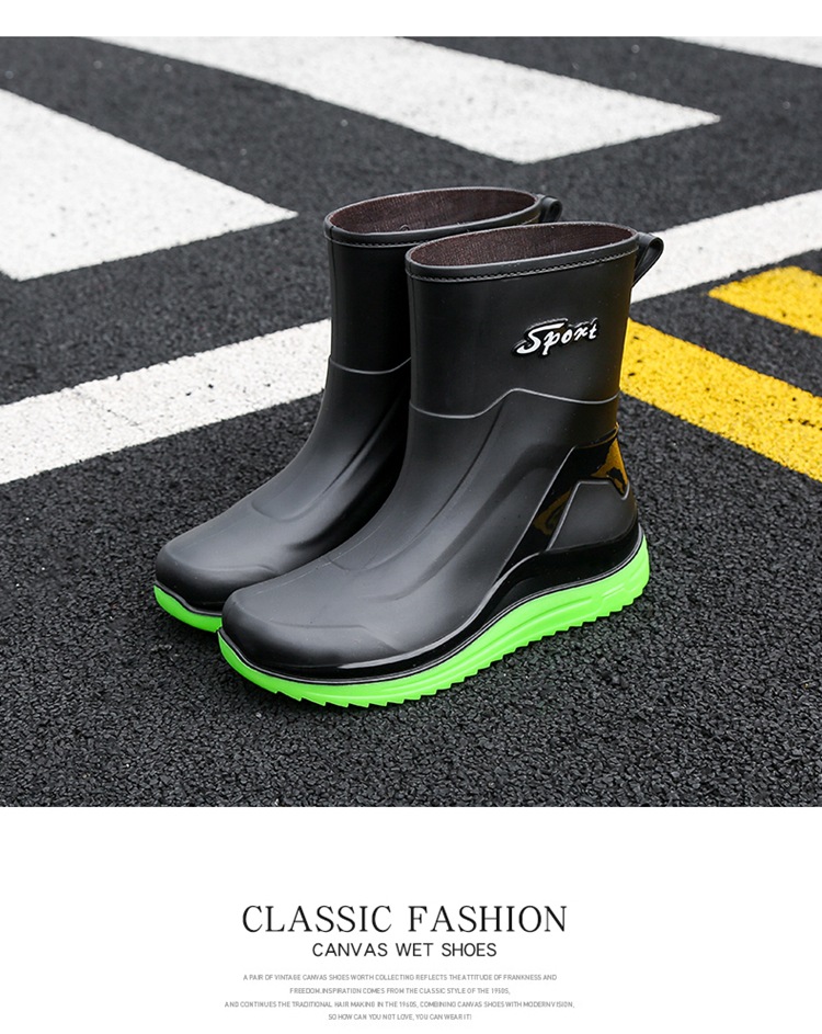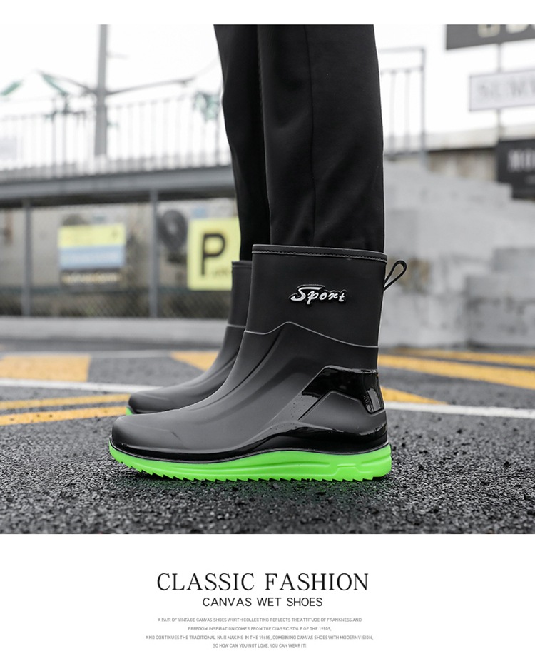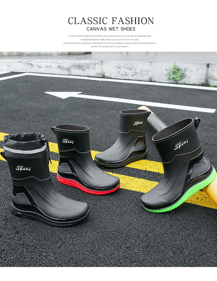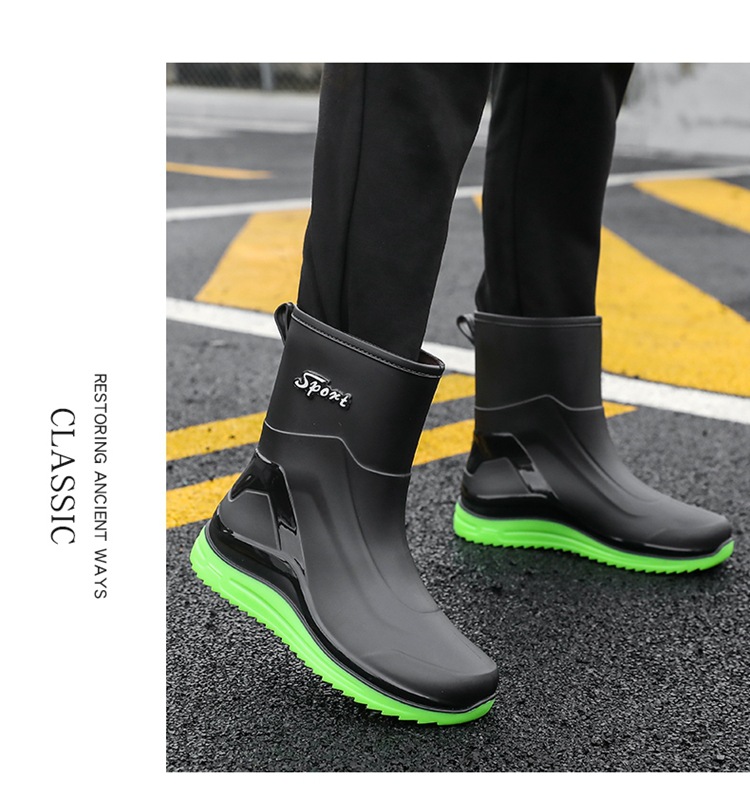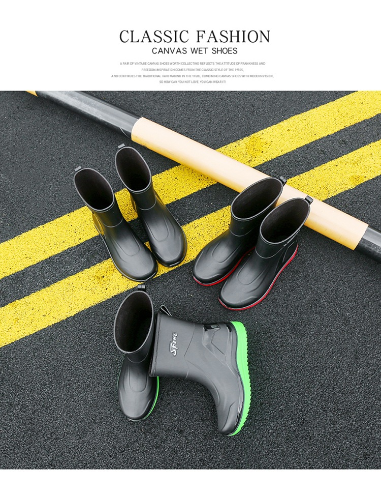Новые резиновые сапоги мужские рабочие кухонные Нескользящие водные ботинки Four Seasons носимые непромокаемые резиновые сапоги на открытом воздухе модная обувь для рабочего рынка