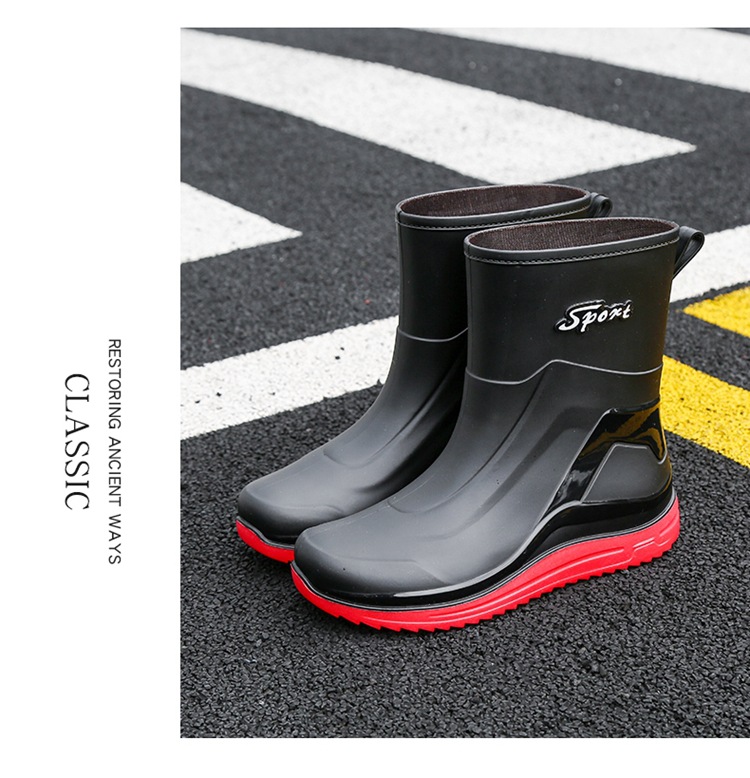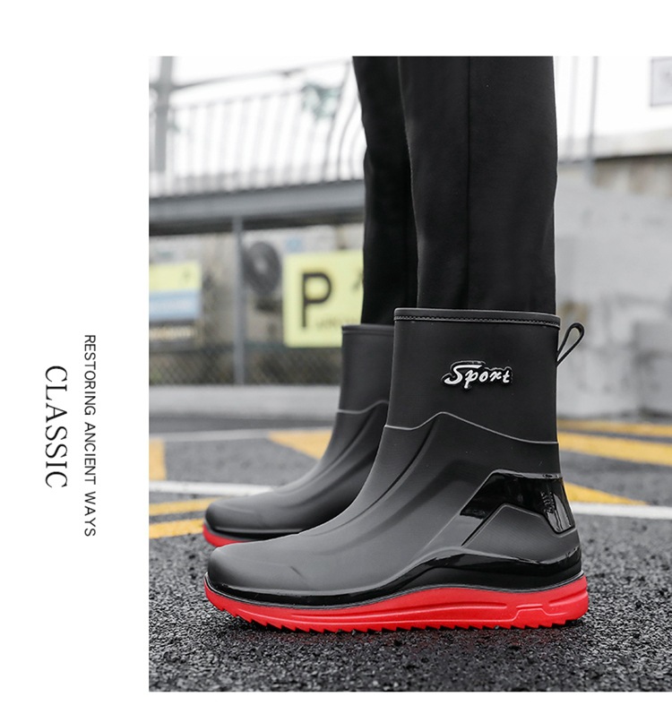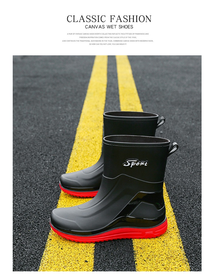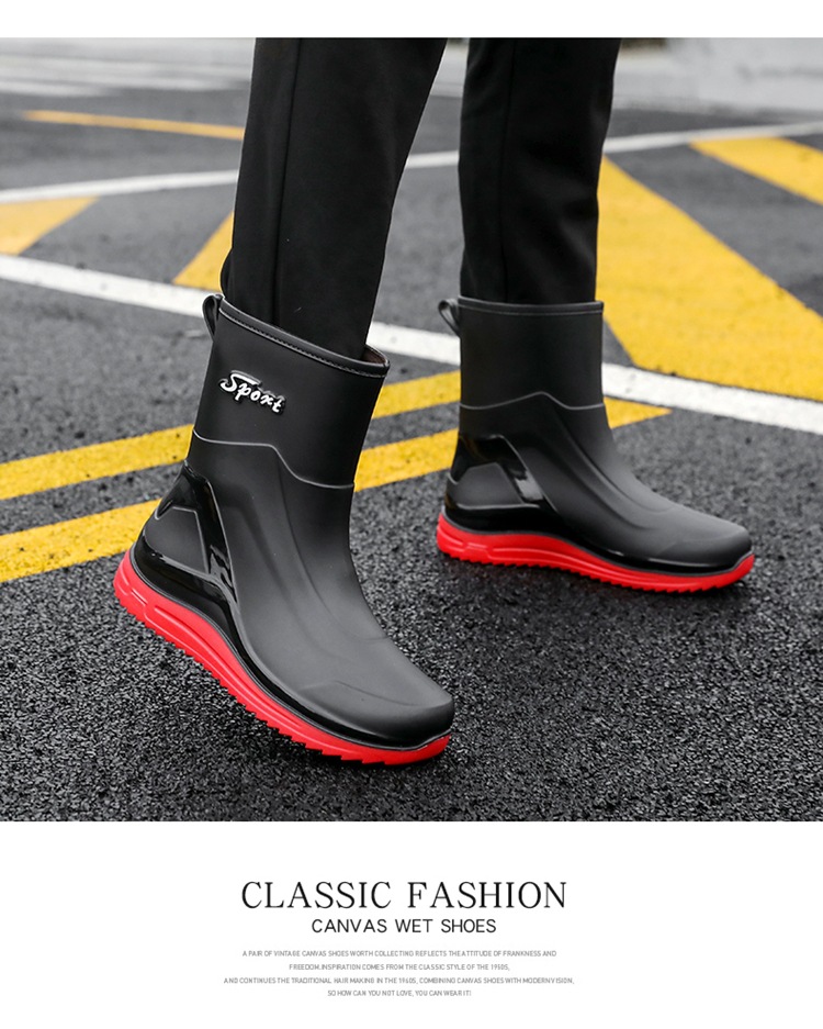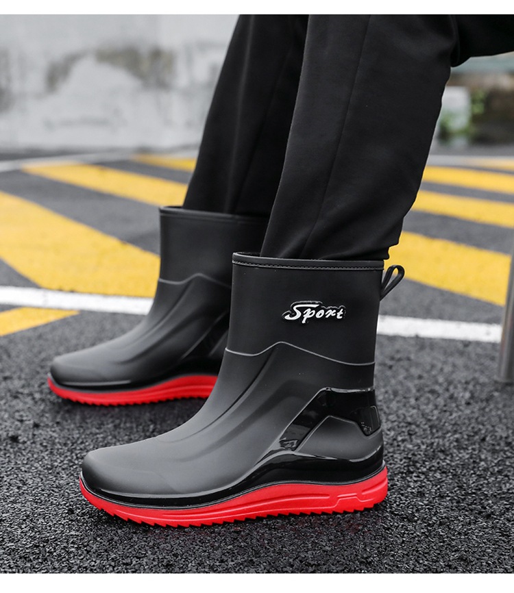 Новые резиновые сапоги мужские рабочие кухонные Нескользящие водные ботинки Four Seasons носимые непромокаемые резиновые сапоги на открытом воздухе модная обувь для рабочего рынка