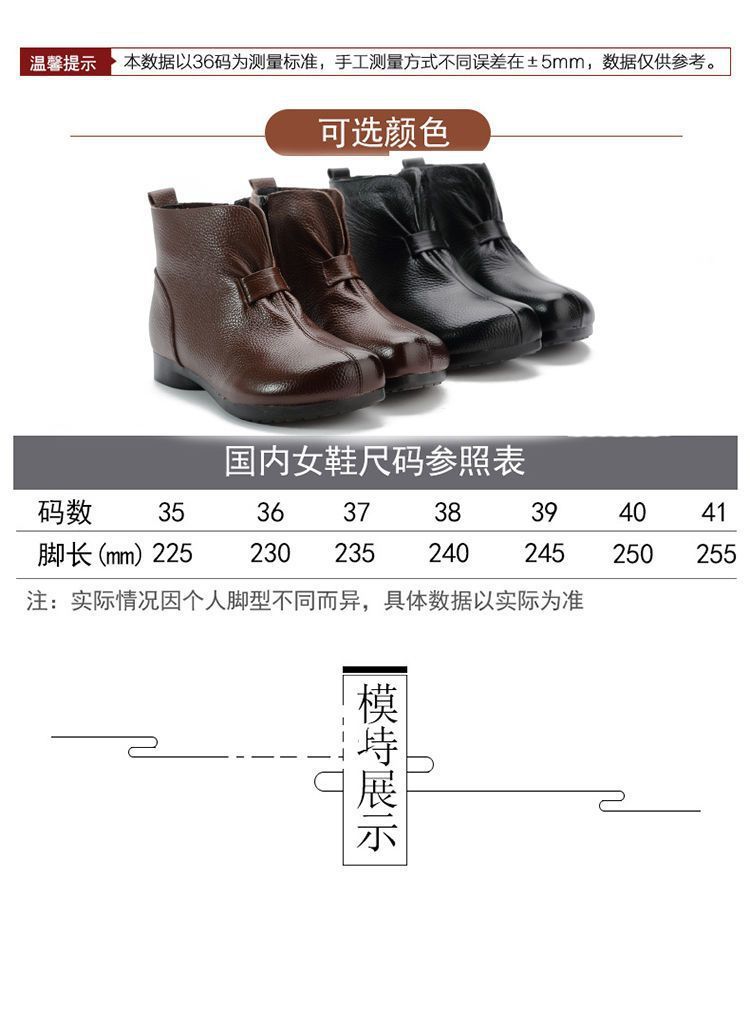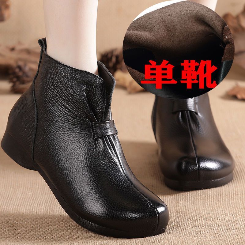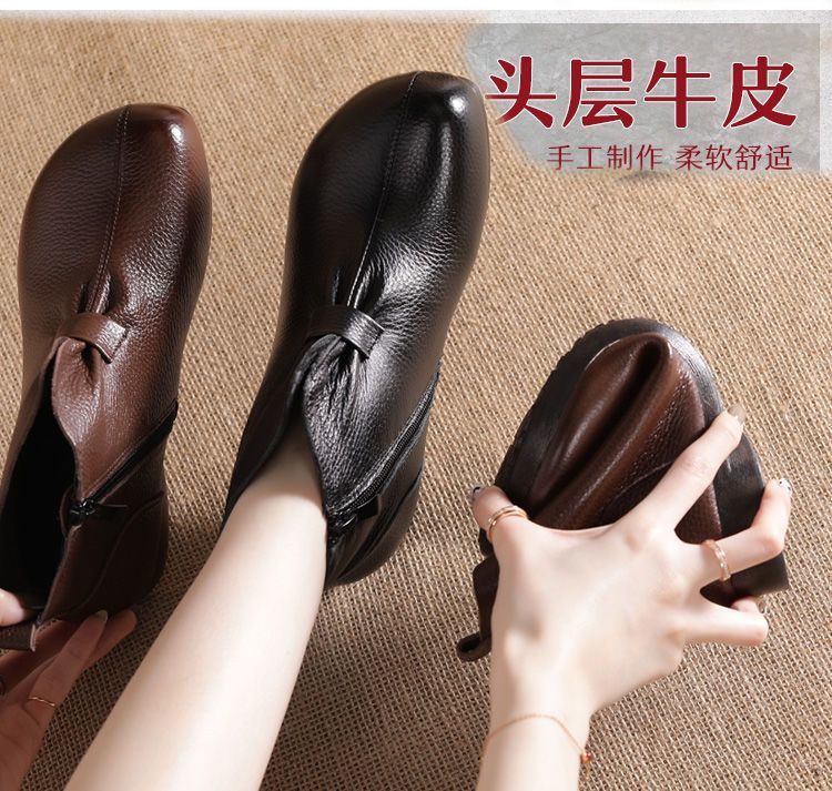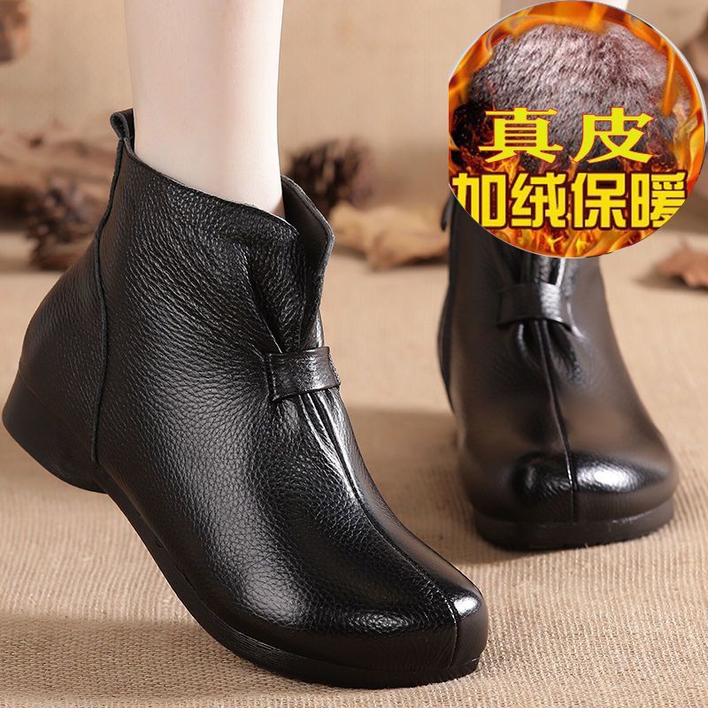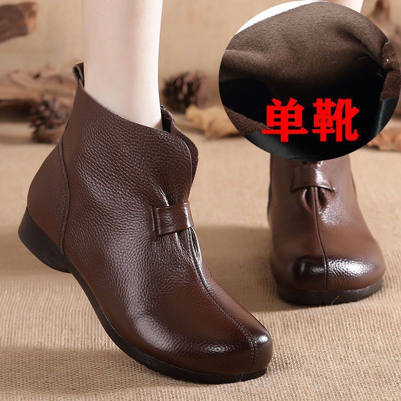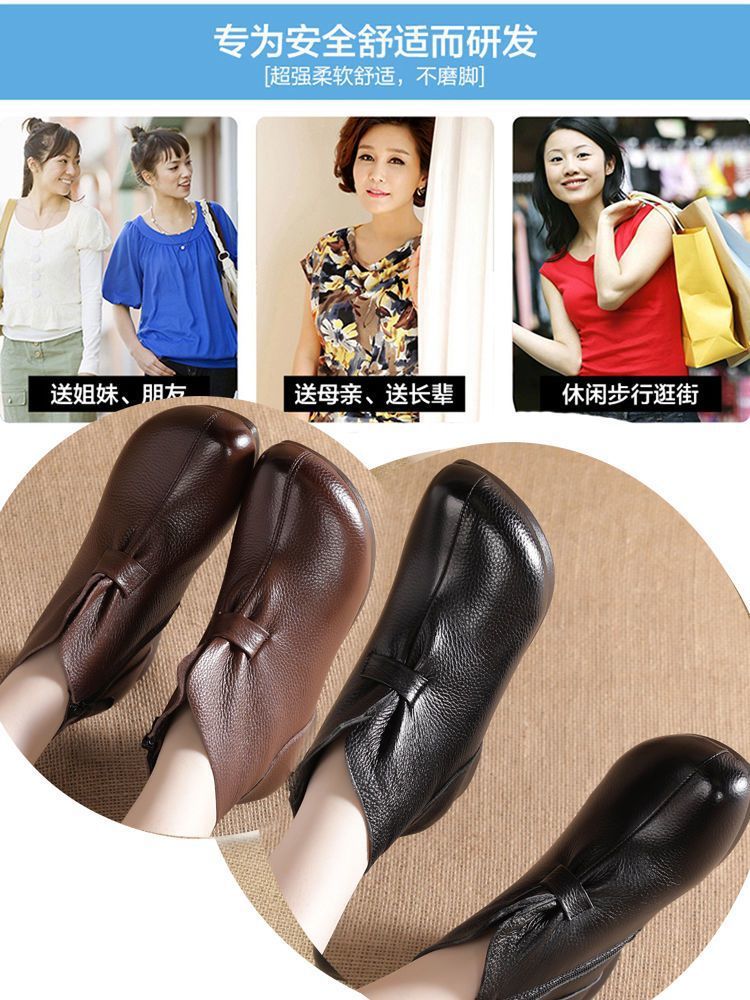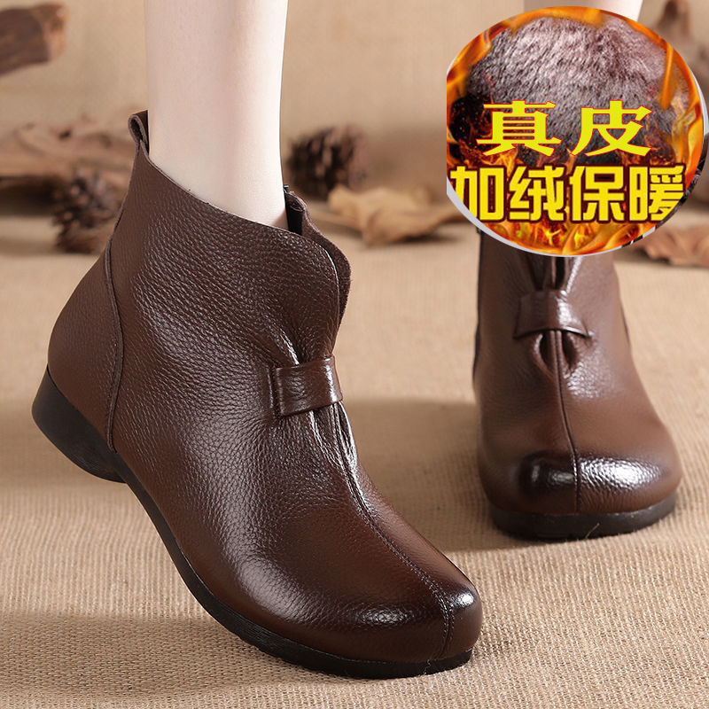 Зимняя мама обувь хлопчатобумажная обувь среднего и пожилого возраста плоская подошва короткие сапоги женские бархатные теплые кожаные сапоги мягкая подошва нескользкая кожа весенняя осень