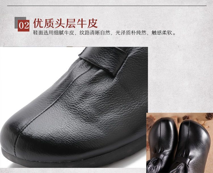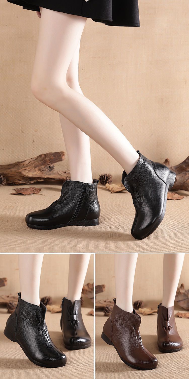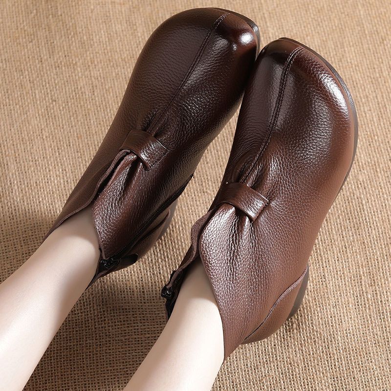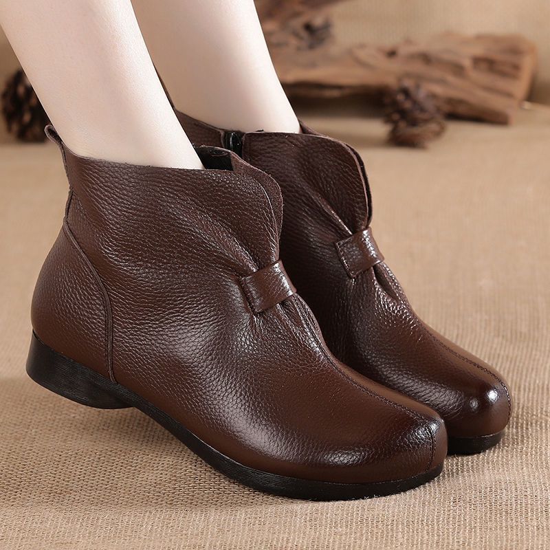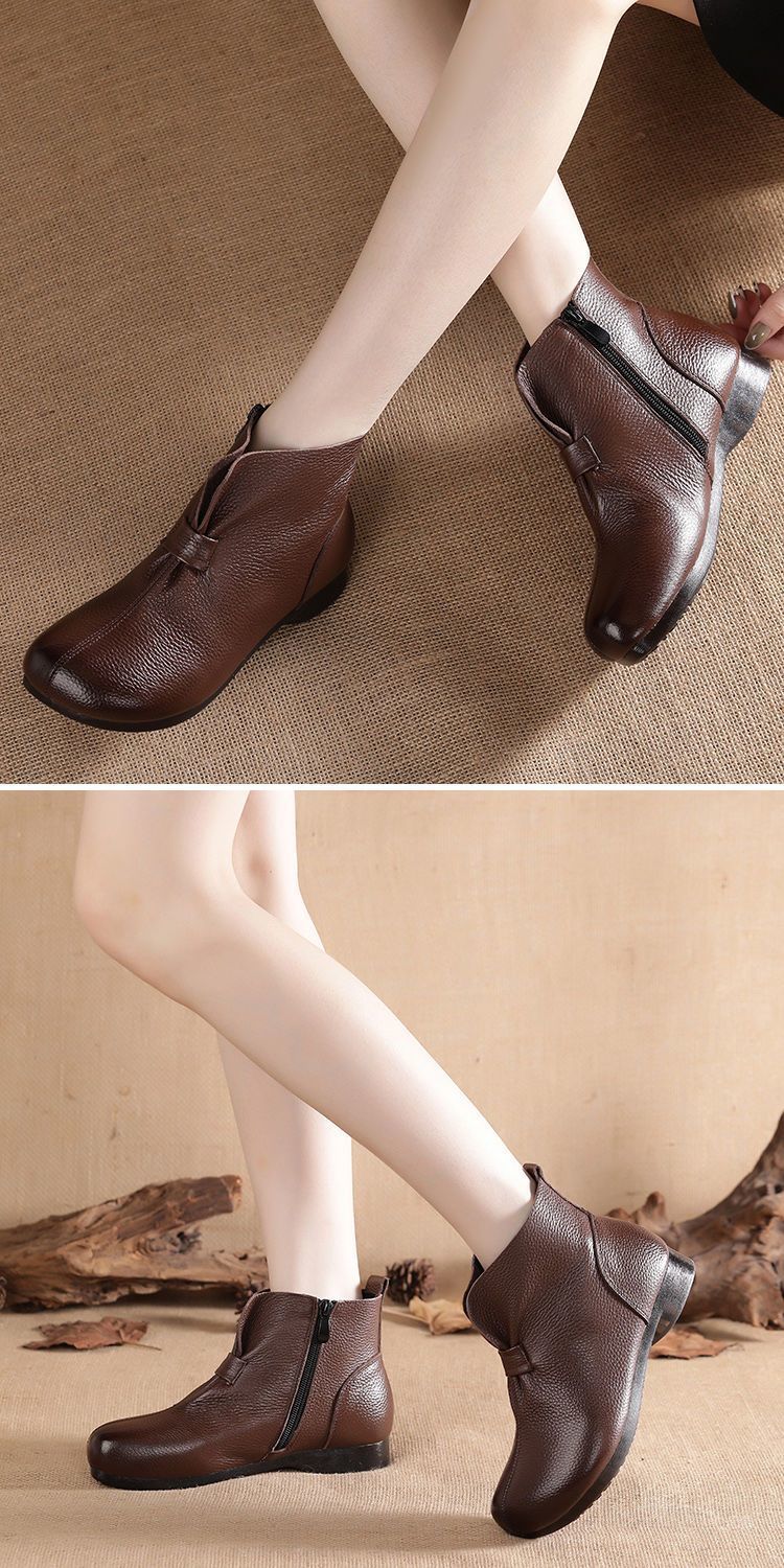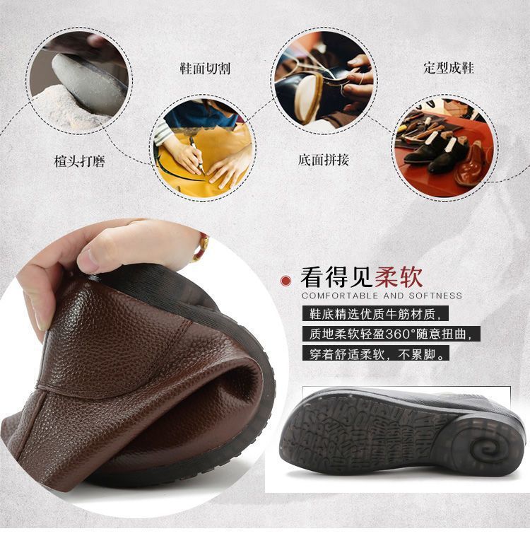 Зимняя мама обувь хлопчатобумажная обувь среднего и пожилого возраста плоская подошва короткие сапоги женские бархатные теплые кожаные сапоги мягкая подошва нескользкая кожа весенняя осень