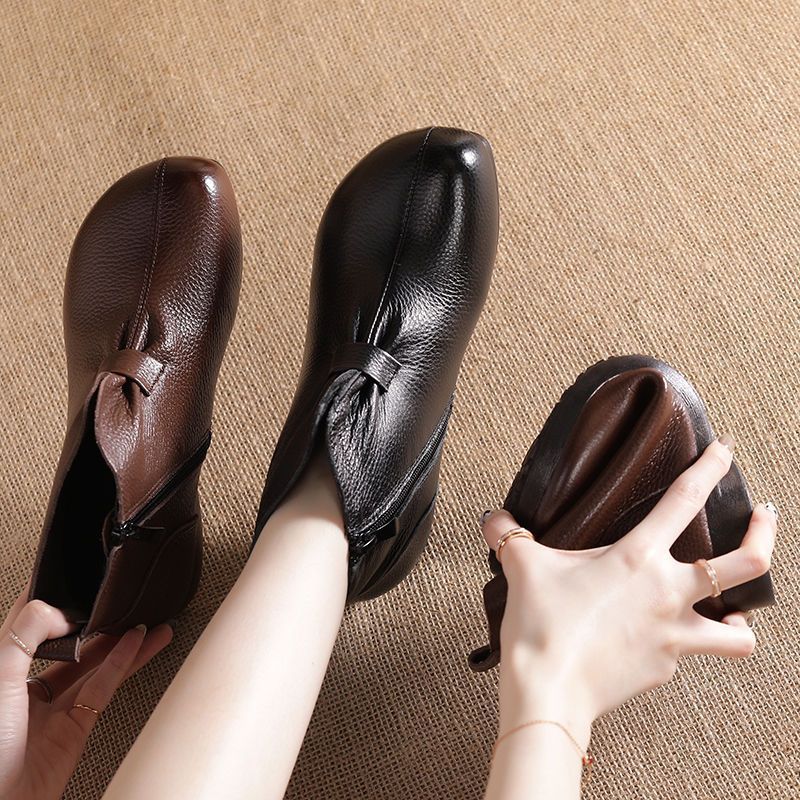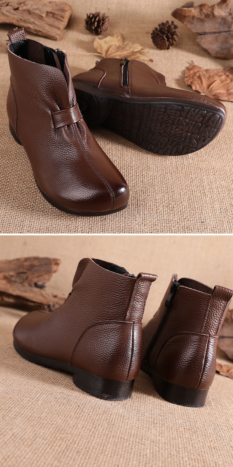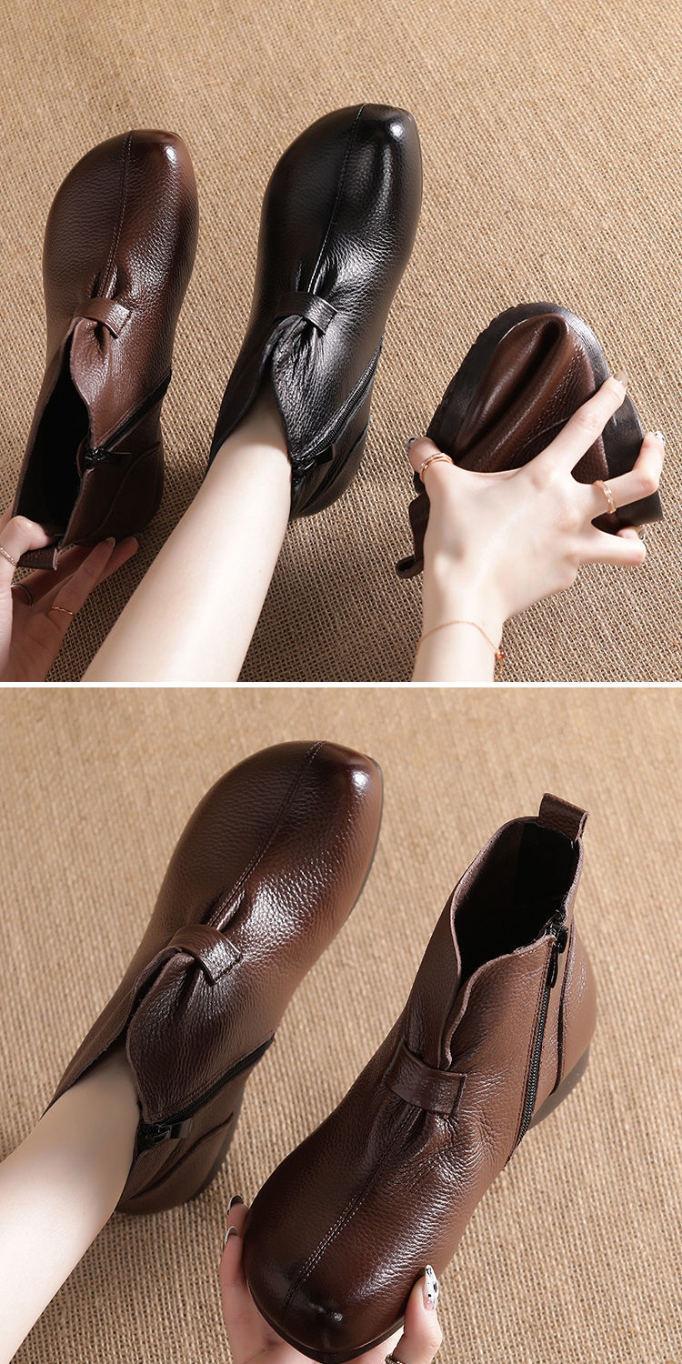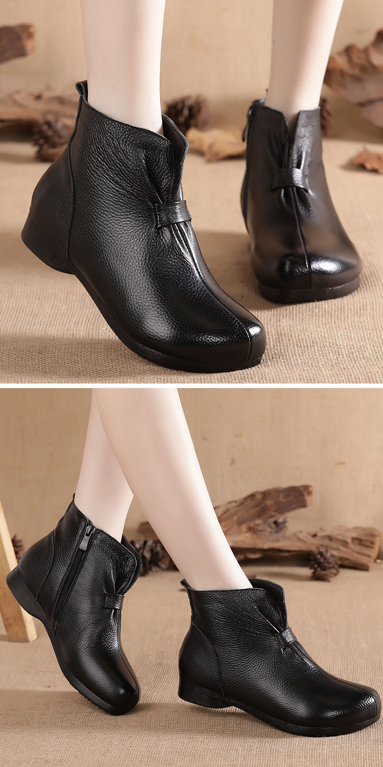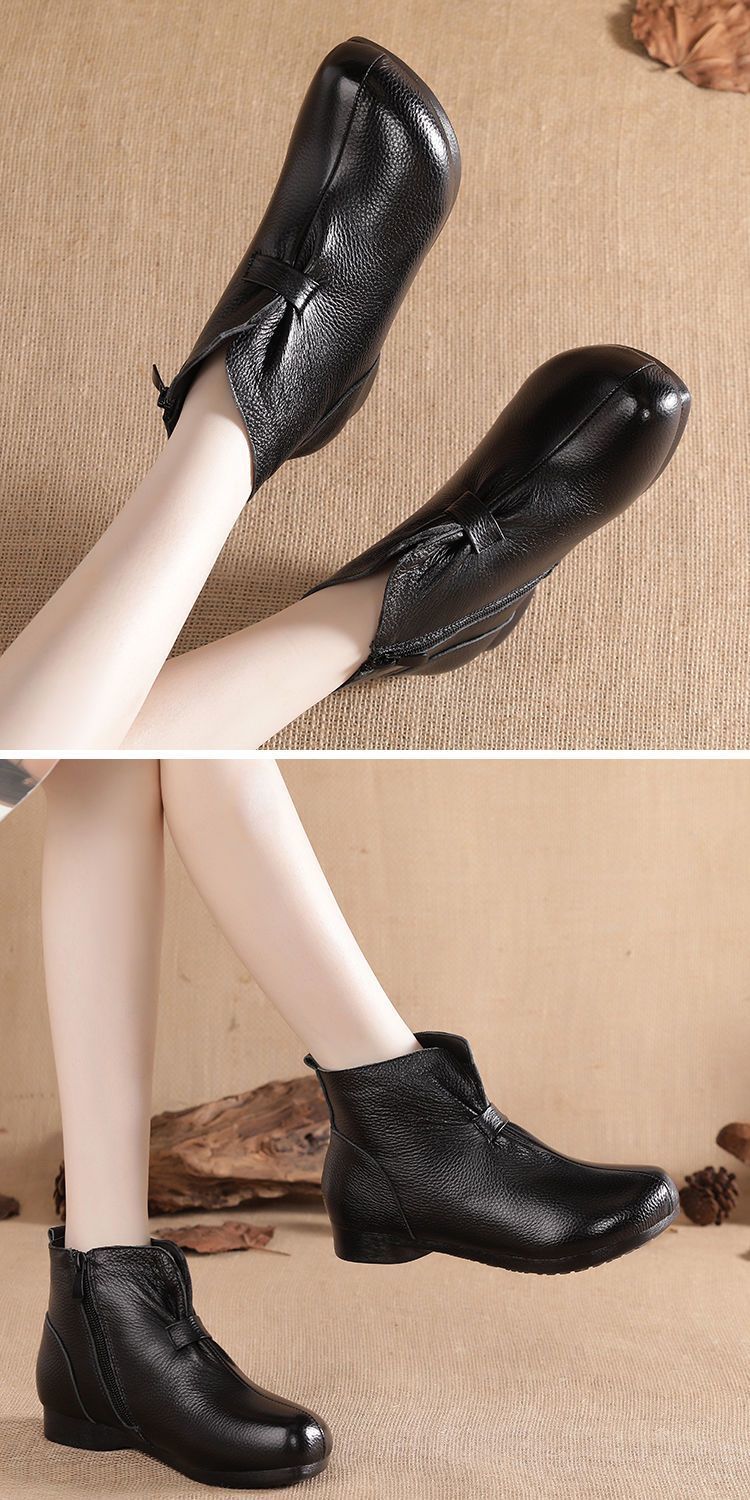 Зимняя мама обувь хлопчатобумажная обувь среднего и пожилого возраста плоская подошва короткие сапоги женские бархатные теплые кожаные сапоги мягкая подошва нескользкая кожа весенняя осень