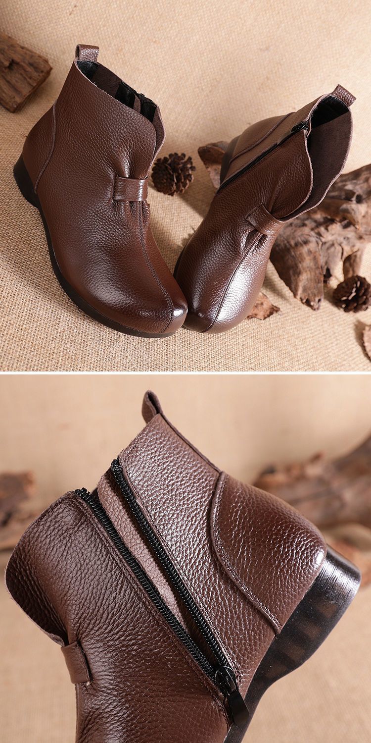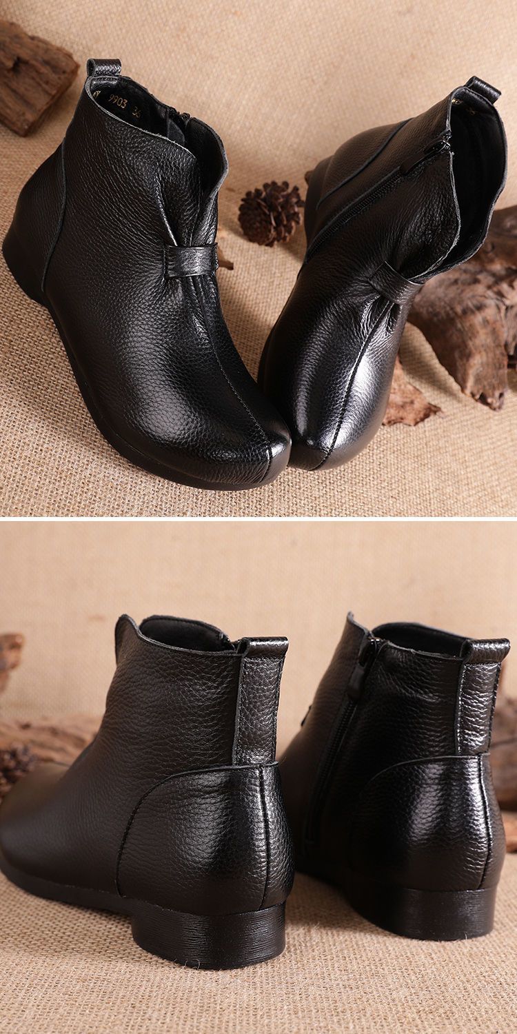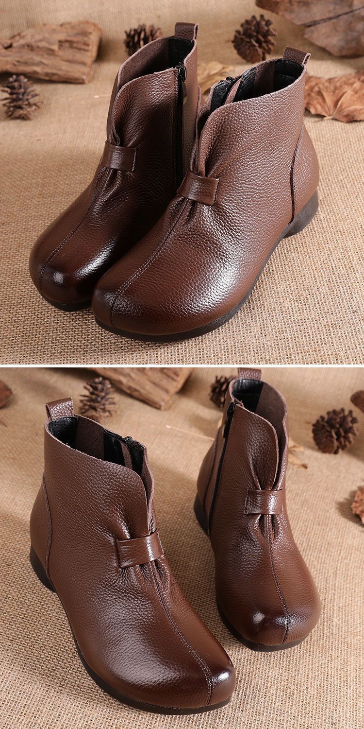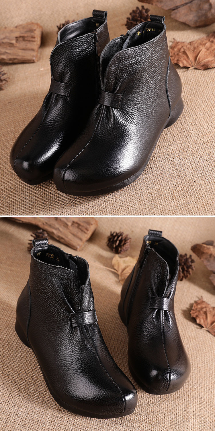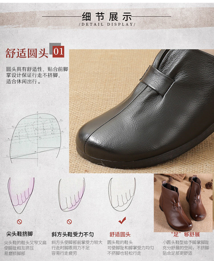 Зимняя мама обувь хлопчатобумажная обувь среднего и пожилого возраста плоская подошва короткие сапоги женские бархатные теплые кожаные сапоги мягкая подошва нескользкая кожа весенняя осень