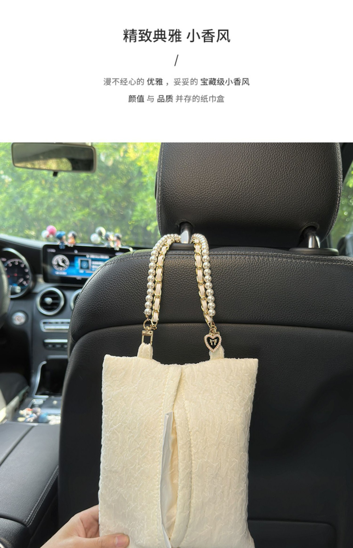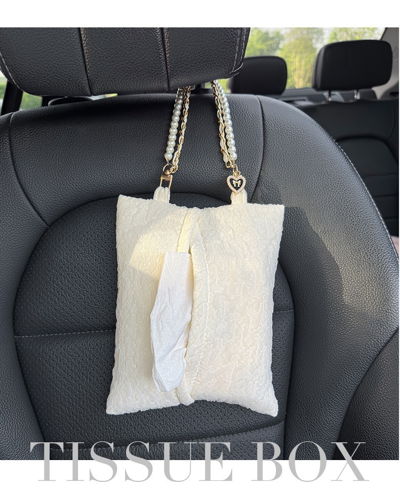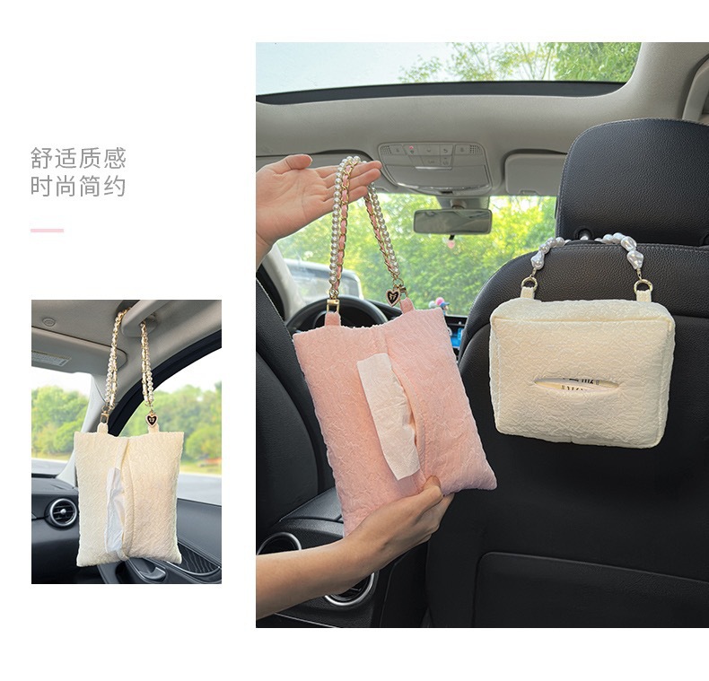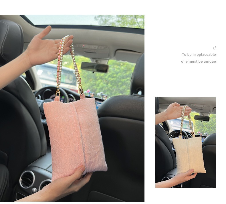 Интернет Модная автомобильная коробка для салфеток Seersucker Маленькая свежая Высококачественная легкая Роскошная Автомобильная бумажная коробка с подвесной цепью Стул спинки Подвесной Тип для женщин
