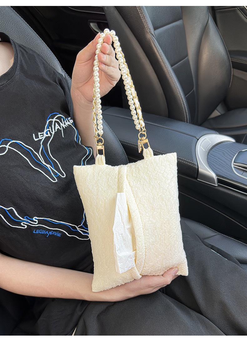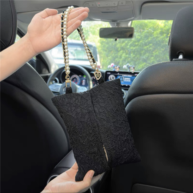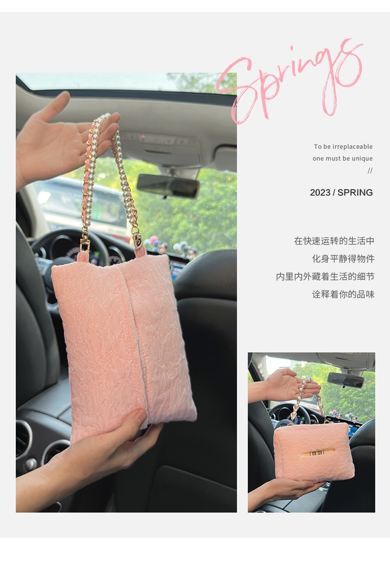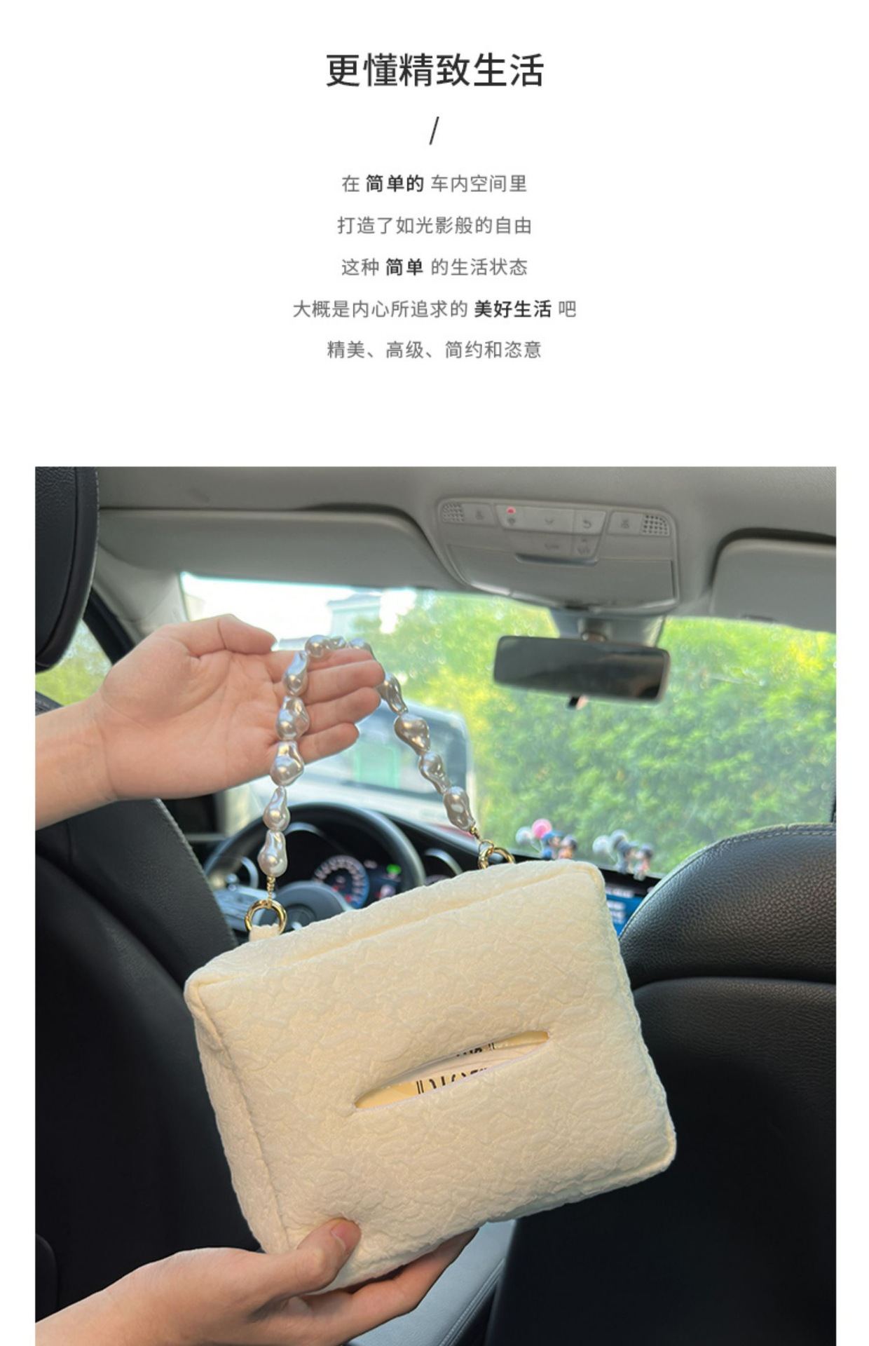 Интернет Модная автомобильная коробка для салфеток Seersucker Маленькая свежая Высококачественная легкая Роскошная Автомобильная бумажная коробка с подвесной цепью Стул спинки Подвесной Тип для женщин