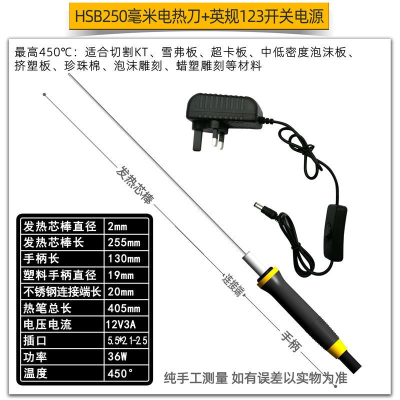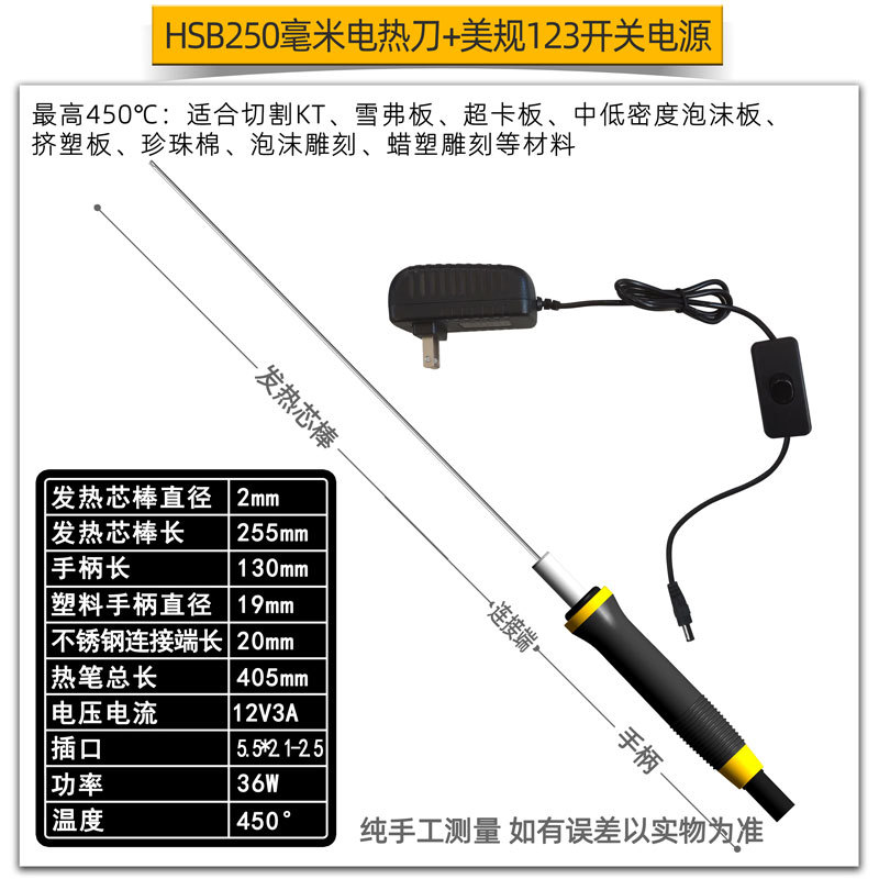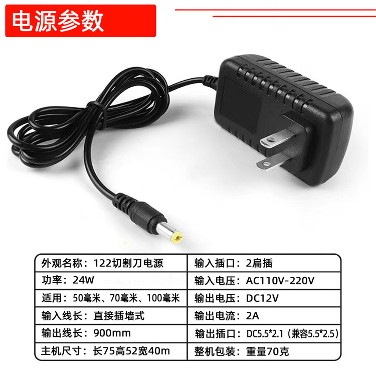 50-250mm都能通用使用12v2.5-3a适配器,在任何国家单独销售切割笔,任何一个家庭的基本都能有适配的电源,比如电脑显示器适配器等。
