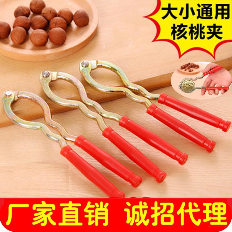 产品介绍:使用方法:将小核桃放在此夹前头有齿牙的部份,让夹咬住.握牢夹柄部份,轻轻一捏,小核桃就开了.