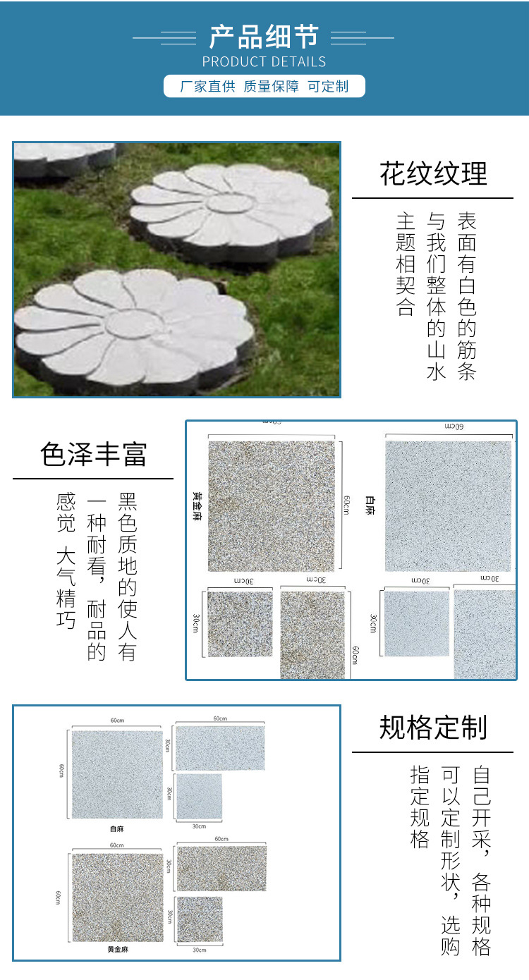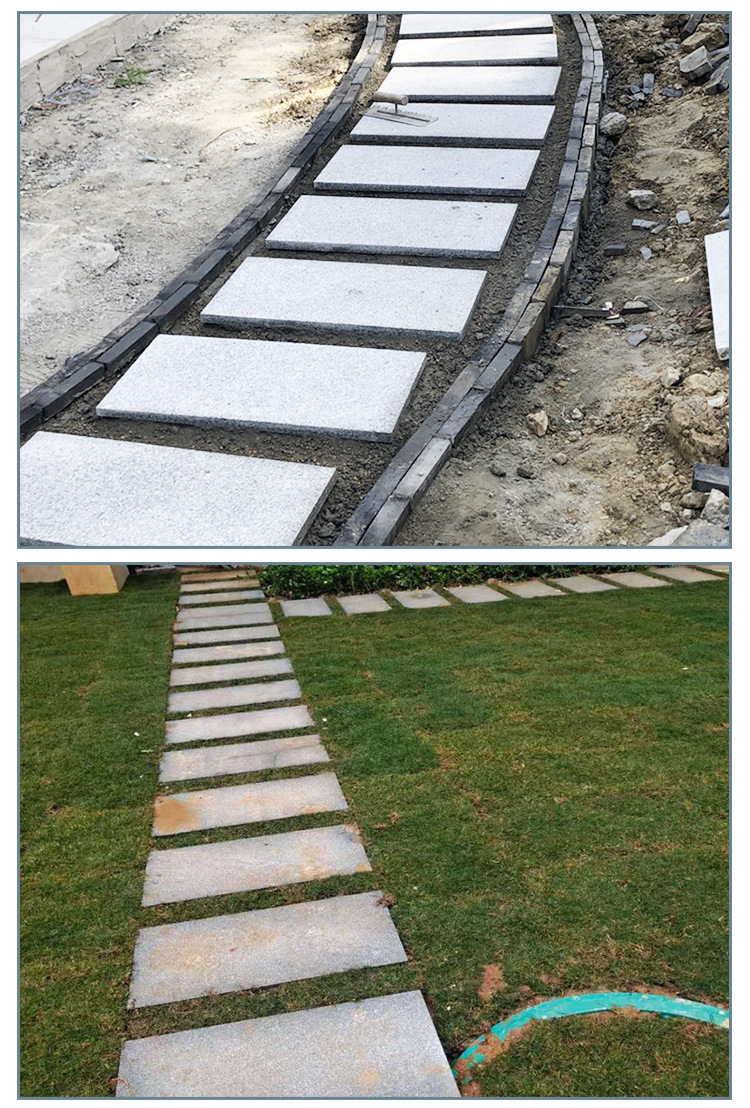 Гранитная огненная поверхность Мраморная плита на открытом воздухе Газон шаг за шагом Сад тротуарная дорожная кладка