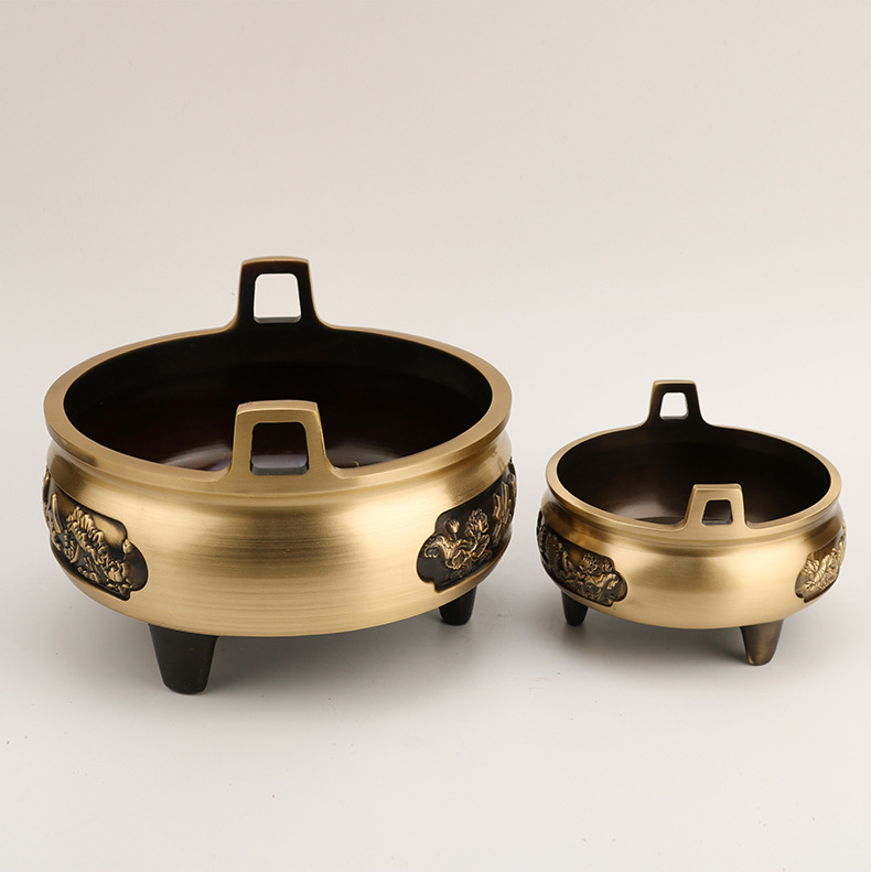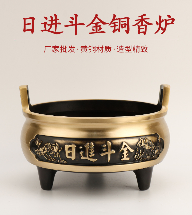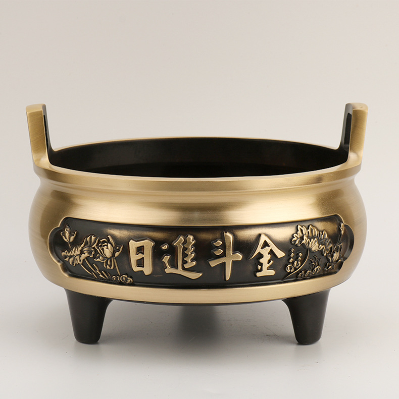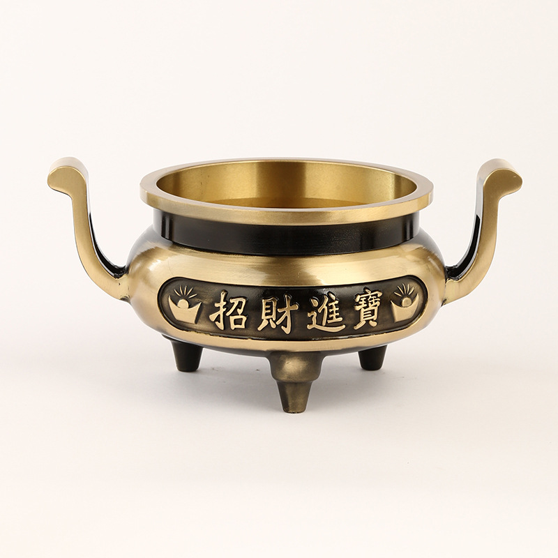 Оптовая Продажа с фабрики медная курильница для благовоний домашняя печь для поклонения Будде Богу богатства ежедневная Золотая трехногая курильница украшения