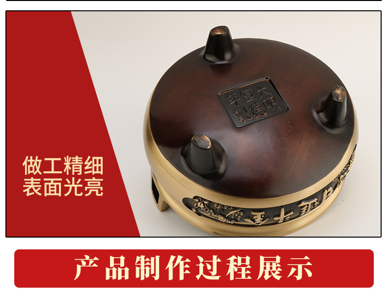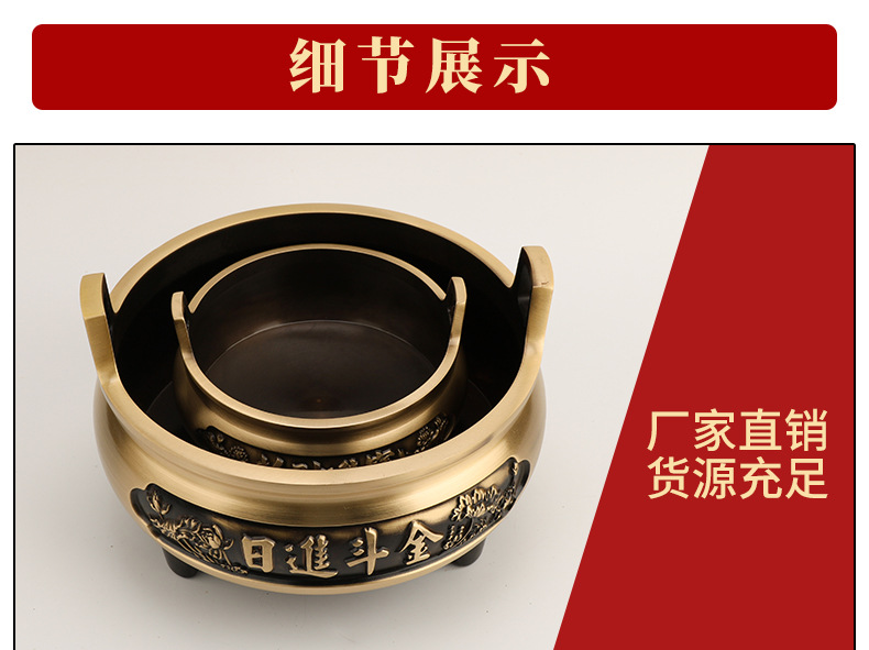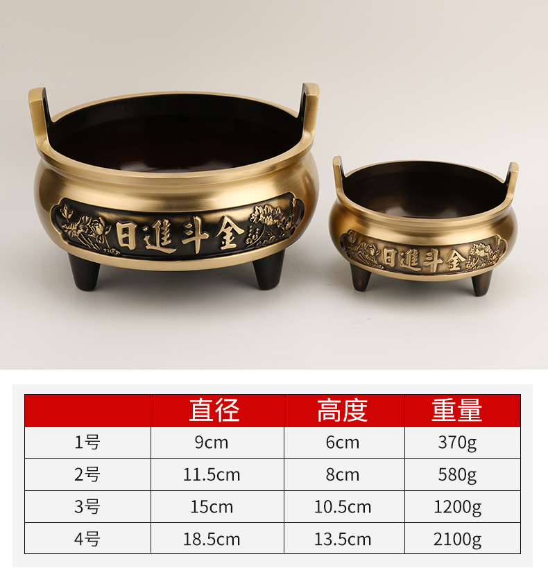 Ежедневная Золотая медная курильница диаметром 9 см; 11,5 cm Диаметр ежедневная Золотая медная курильница; Ежедневная Золотая медная курильница диаметром 15 см; Диаметр 18,5 см ежедневная Золотая медная курильница; Медный ароматический курильница с ушками, диаметр 12 см; Золотая и нефритовая медная курильница диаметром 14,5 см с ушками; Небольшая полукруглая плита высотой 10,5 см.; Большая полукруглая плита высотой 13,5 см.