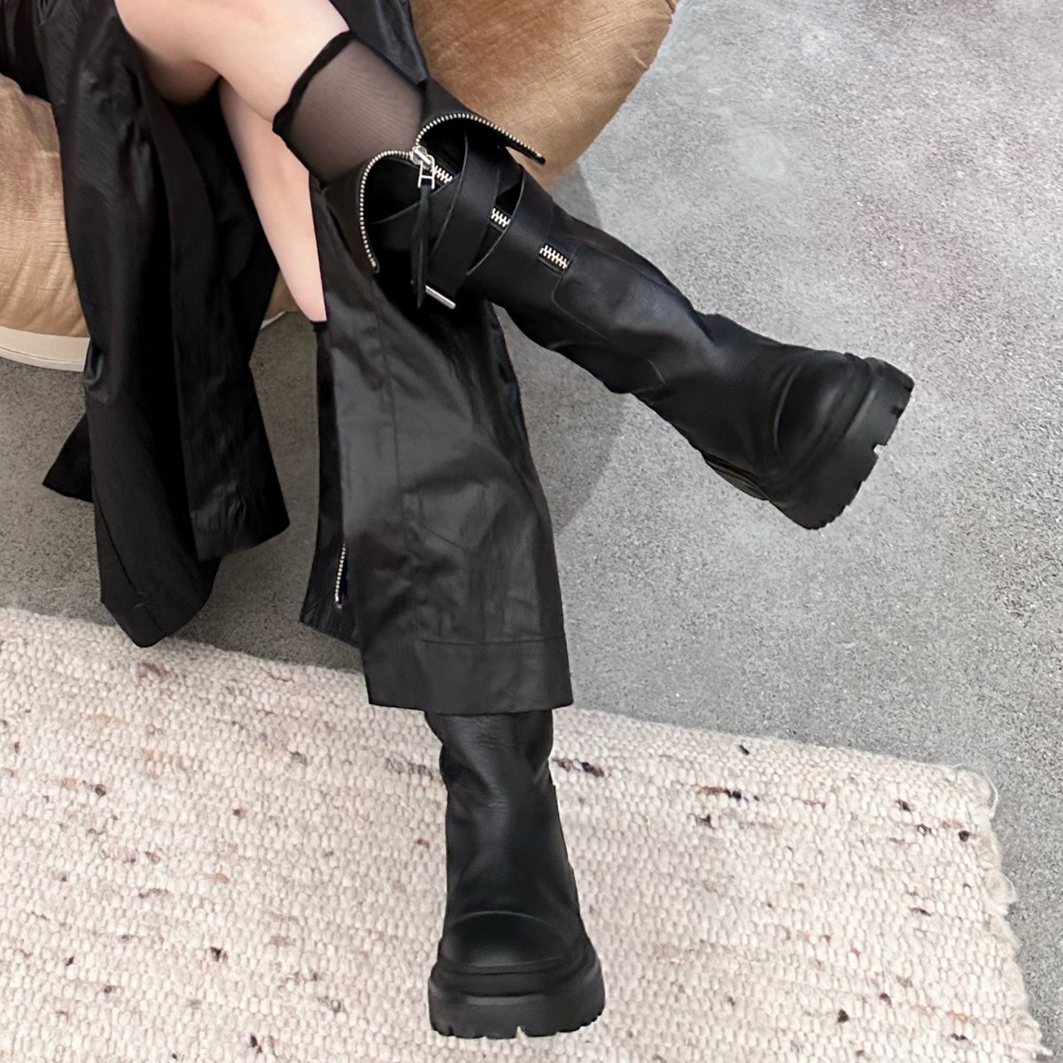 Новинка весны и осени 202, женские сапоги выше колена с пряжкой на ремне, мотоциклетные ботинки Майяра на толстой подошве, высокие модные ботинки