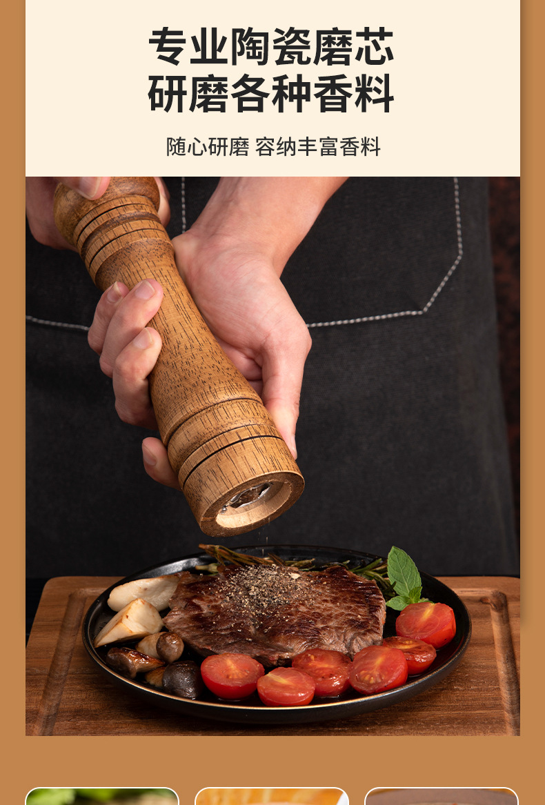 Черная ручка мясной молоток; 8 дюймов твердой древесины Перец мясорубки; Многоцелевой Зажим для барбекю