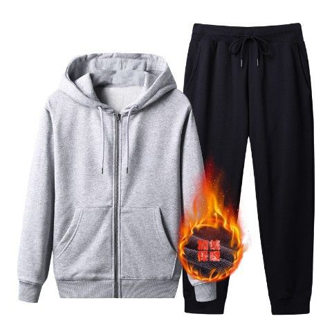 Костюм-толстовка с капюшоном на молнии-черный [флисовый стиль]; Толстовка с капюшоном на молнии серого цвета [флисовый стиль]; Толстовка на молнии с капюшоном, черный костюм [обычный стиль]; Толстовка с капюшоном на молнии, серый костюм [обычный стиль]