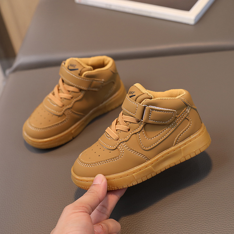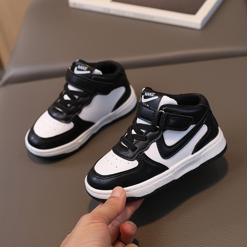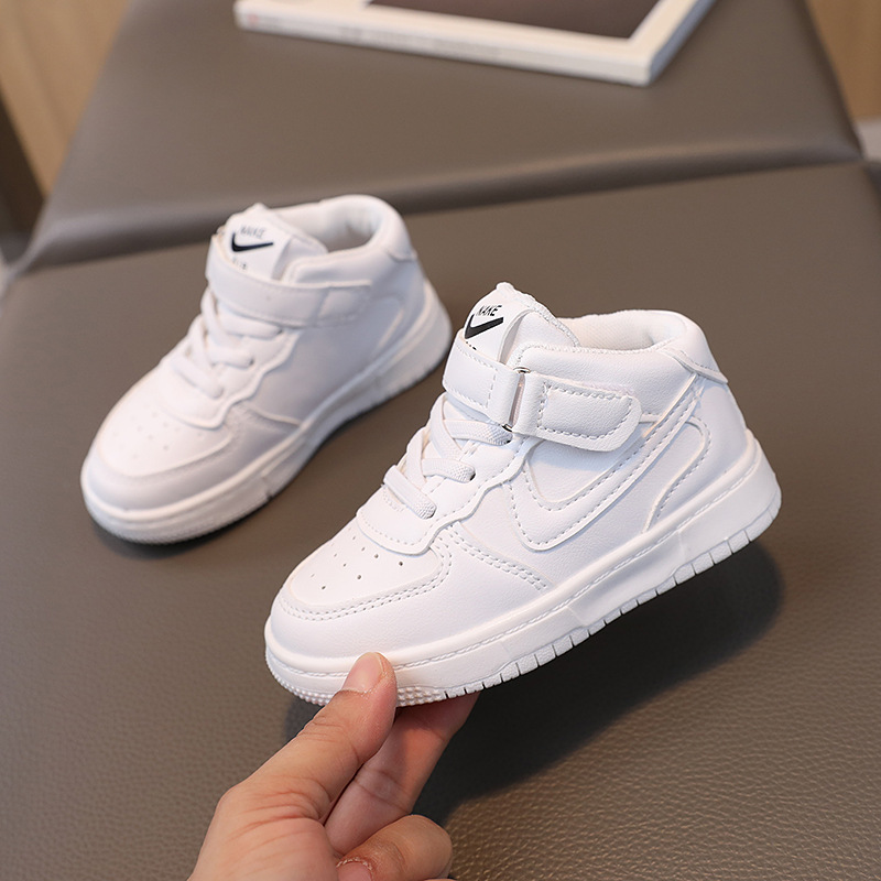 Осенне-зимние новые детские кожаные спортивные белые туфли для мальчиков и студентов, повседневные высокие кроссовки для девочек и малышей