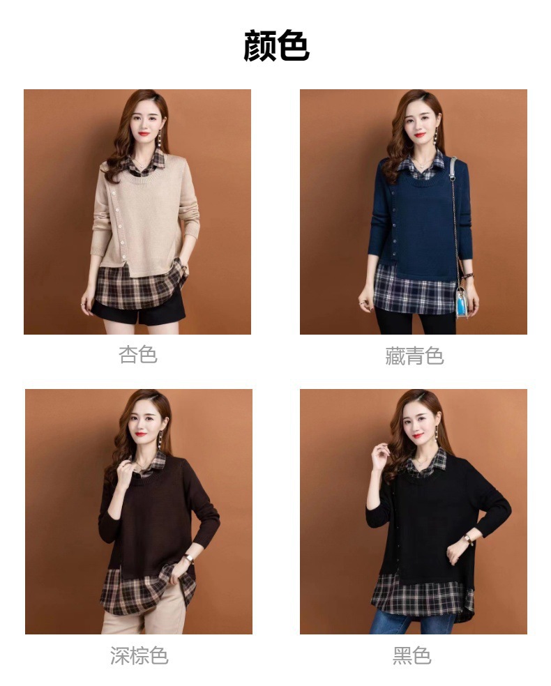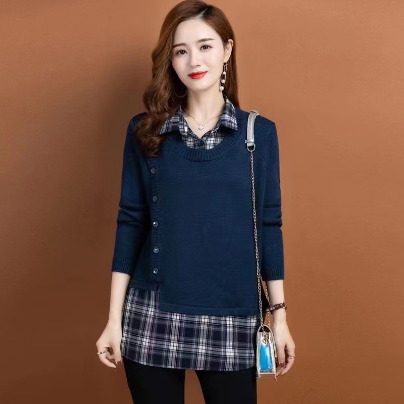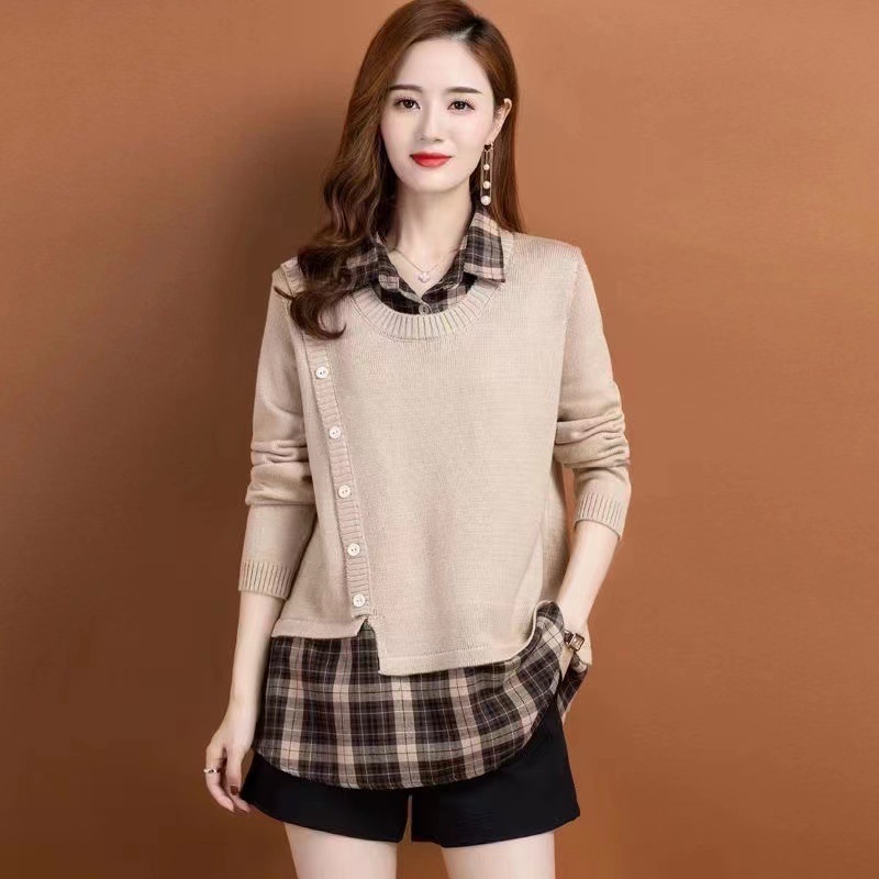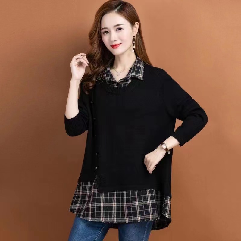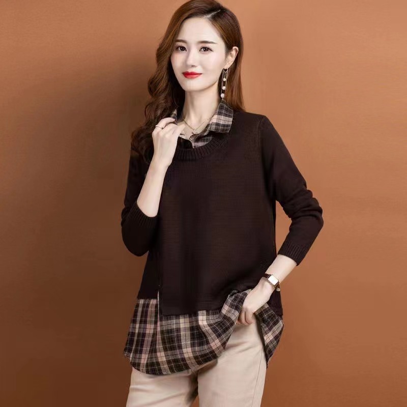 Топ из двух частей с имитацией, женская весна и осень 2023, новая осенне-зимняя Модная рубашка с воротником, вязаная Базовая рубашка, Топ с длинным рукавом