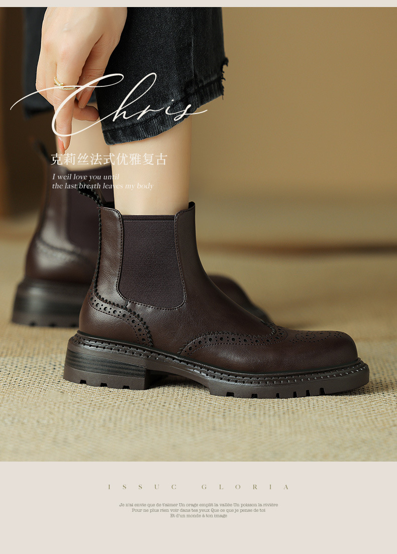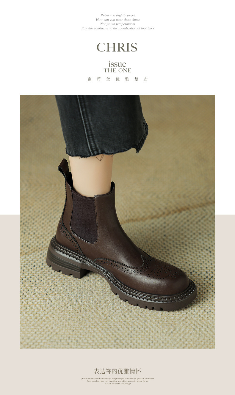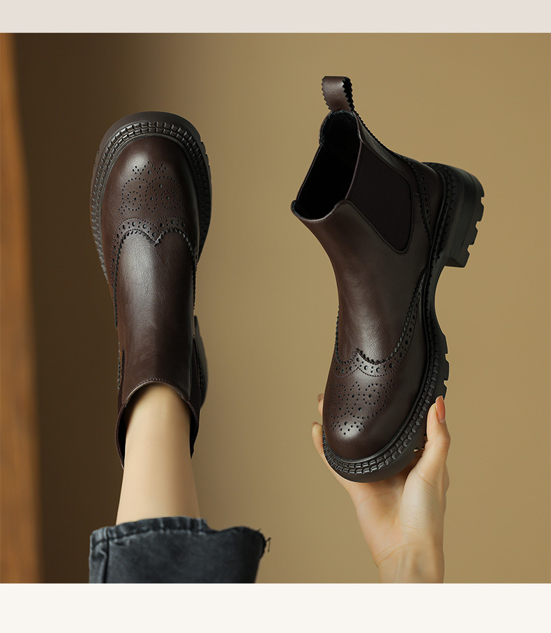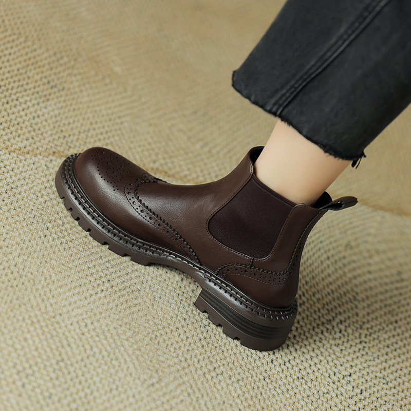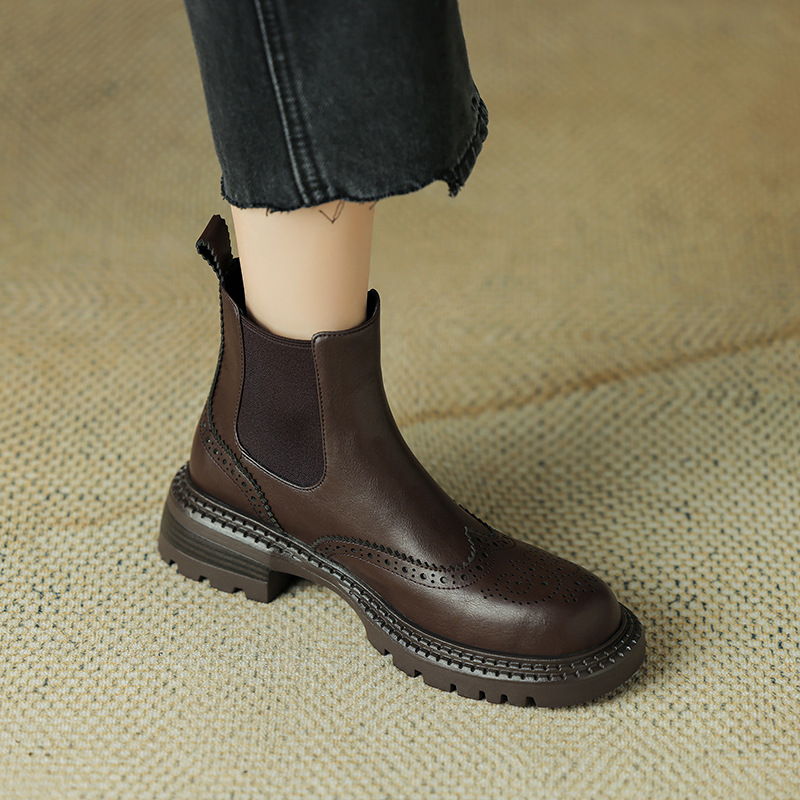 Кожаные ботильоны Bullock 2023 Резные винтажные коричневые рукава в британском стиле с круглым носком Ботинки Челси Женские Ботинки Martin