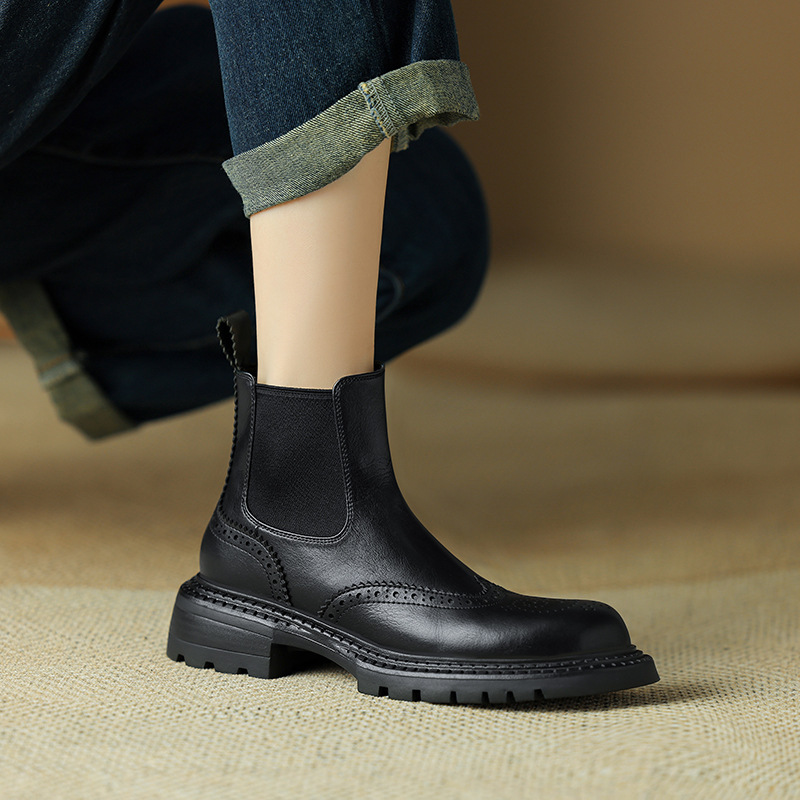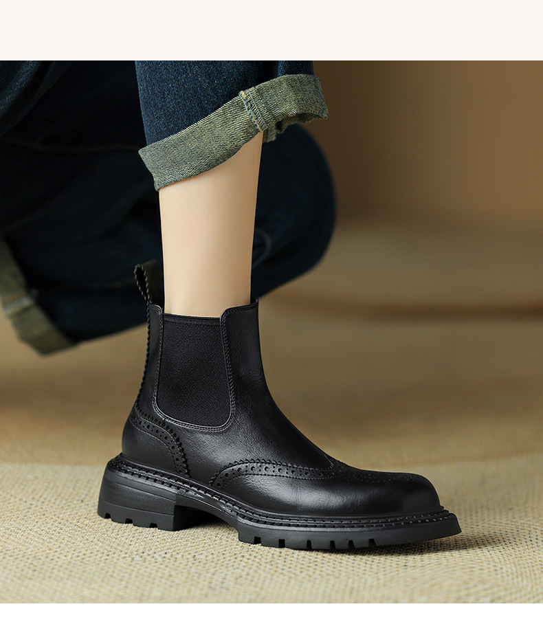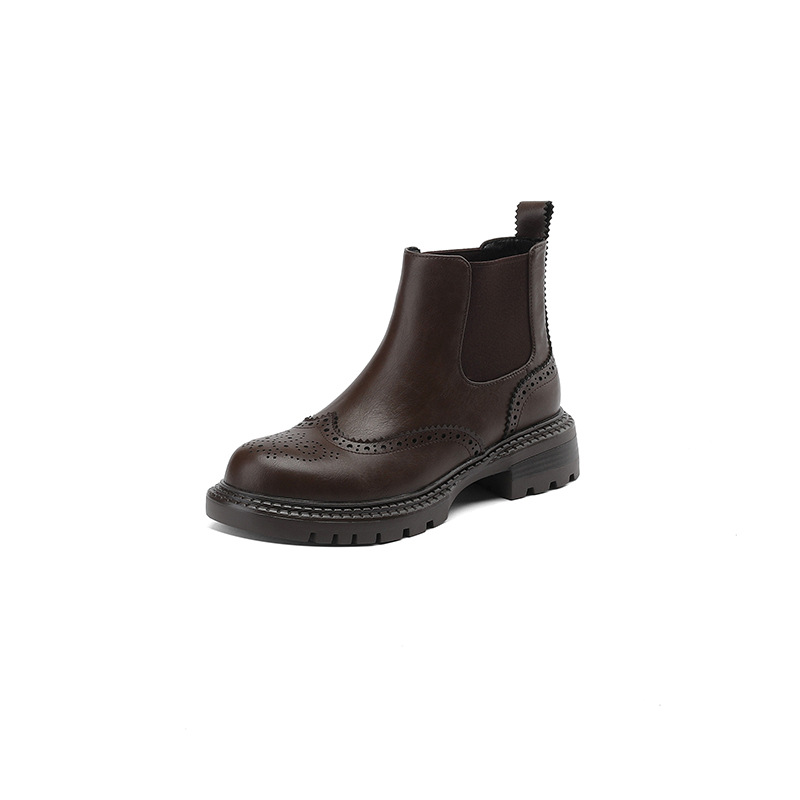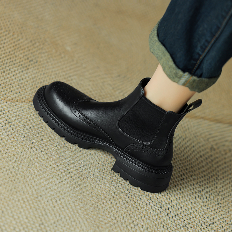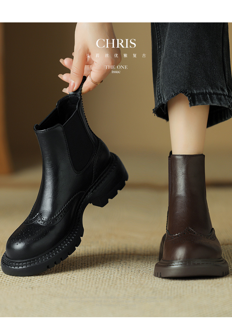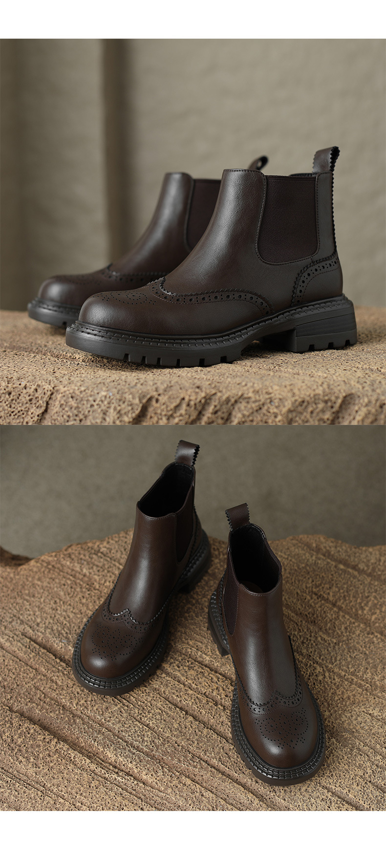 Кожаные ботильоны Bullock 2023 Резные винтажные коричневые рукава в британском стиле с круглым носком Ботинки Челси Женские Ботинки Martin