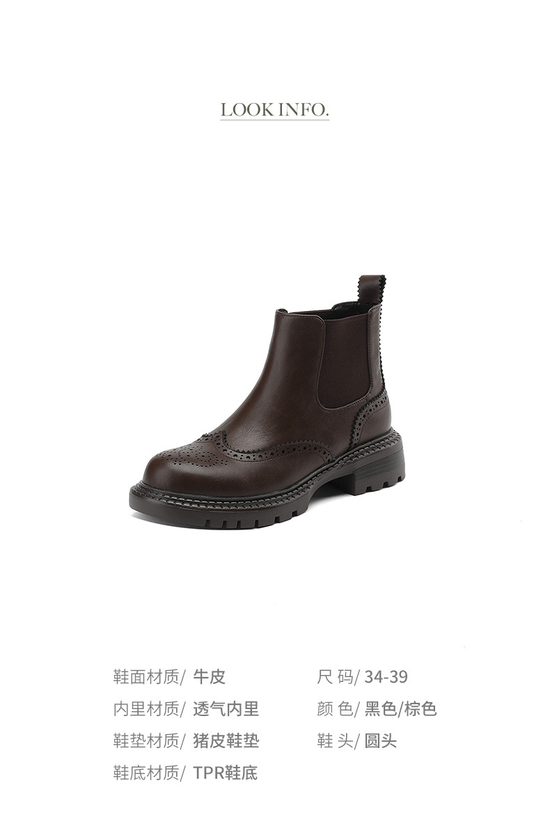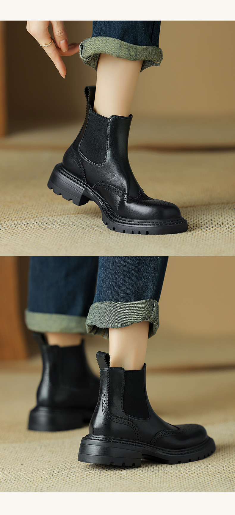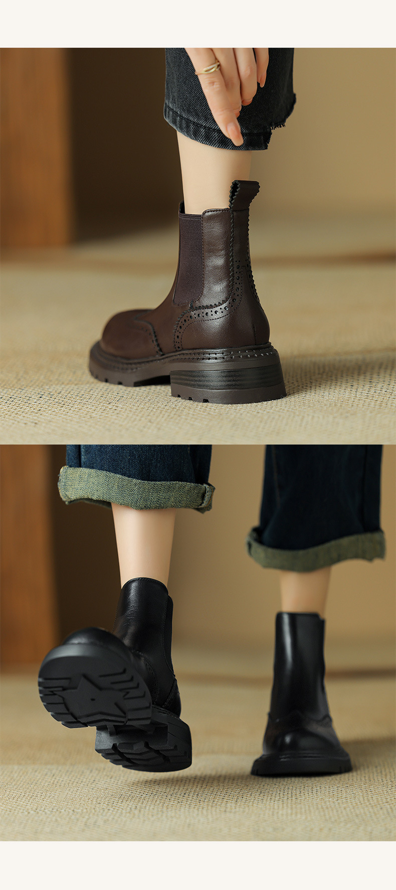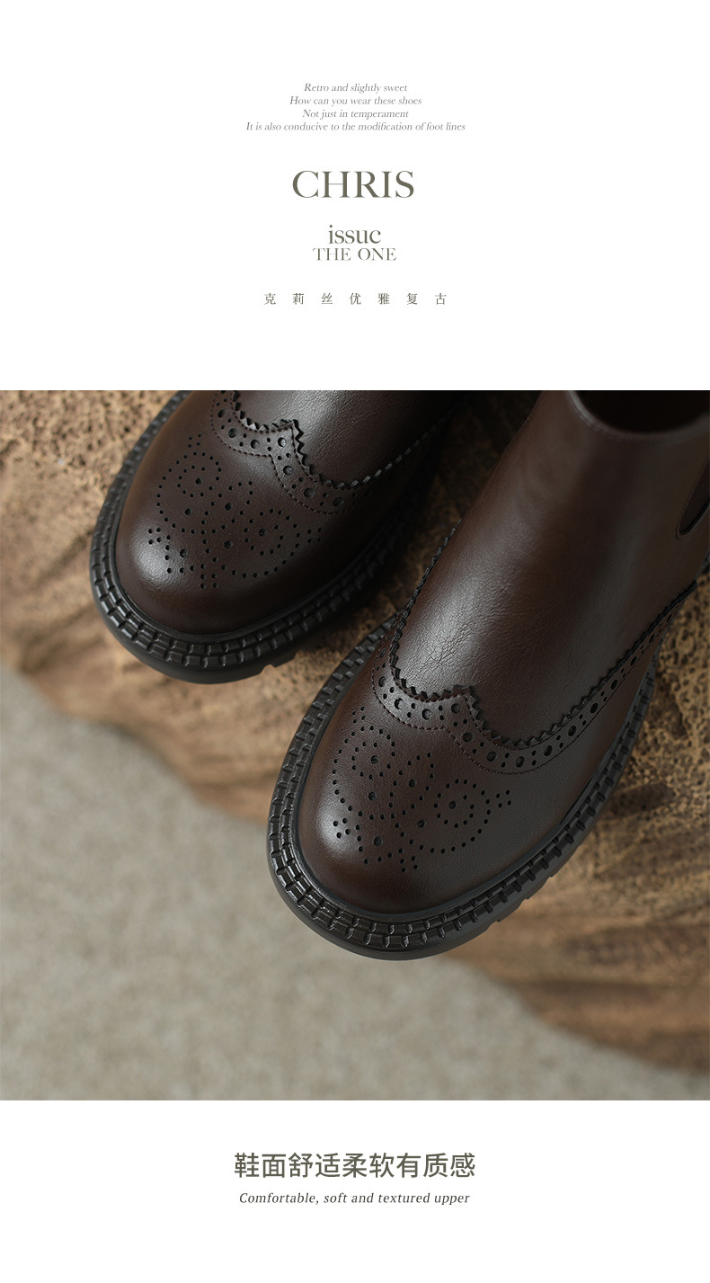 Кожаные ботильоны Bullock 2023 Резные винтажные коричневые рукава в британском стиле с круглым носком Ботинки Челси Женские Ботинки Martin