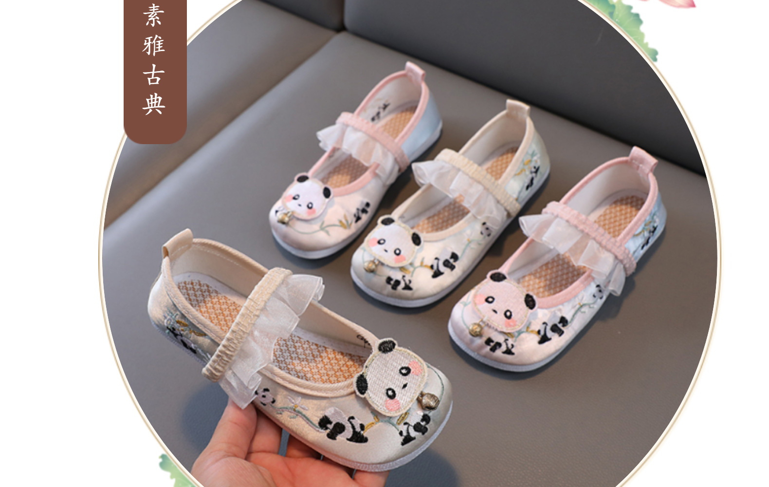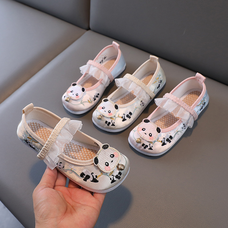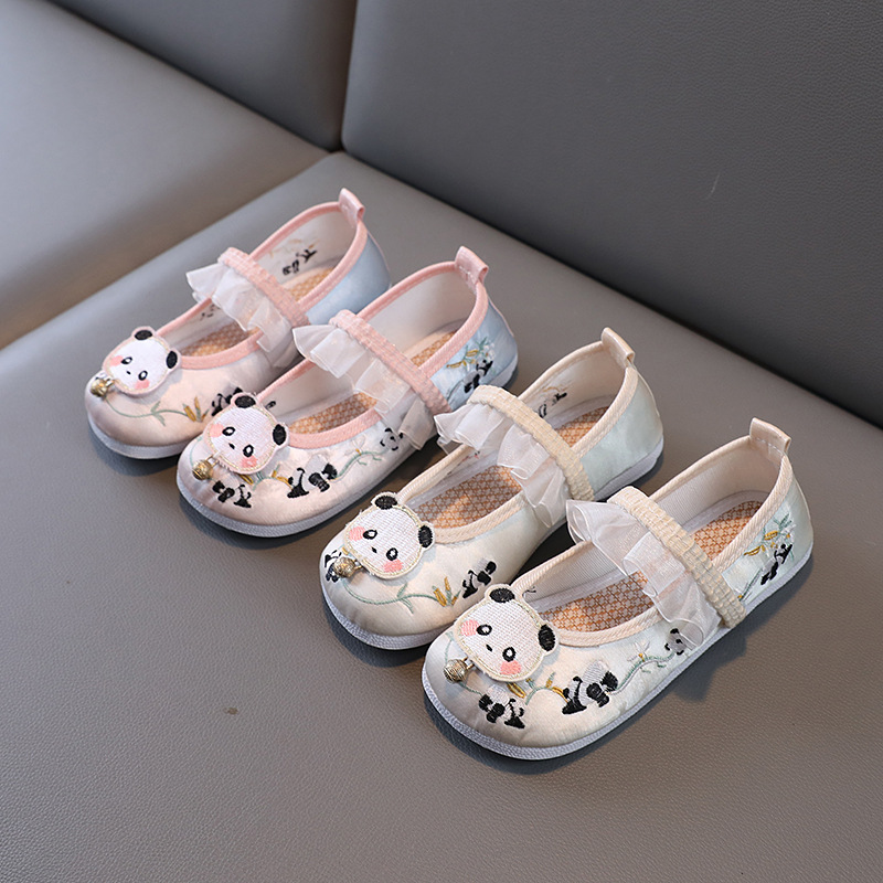 Обувь Hanfu для девочек весна-осень антикварный костюм старый Пекинский Тканевая обувь детская ручная работа детская обувь с вышивкой панда