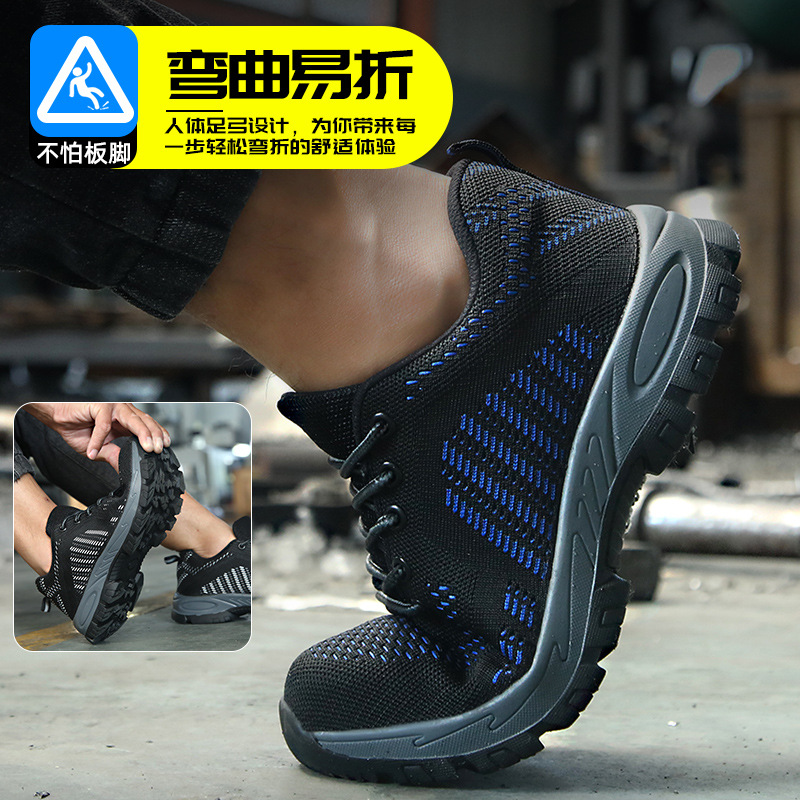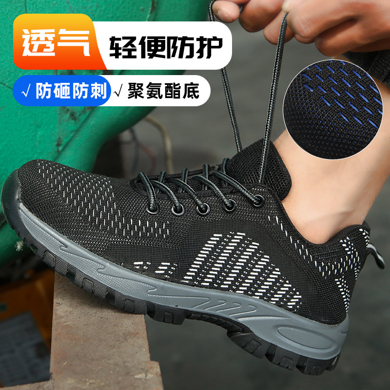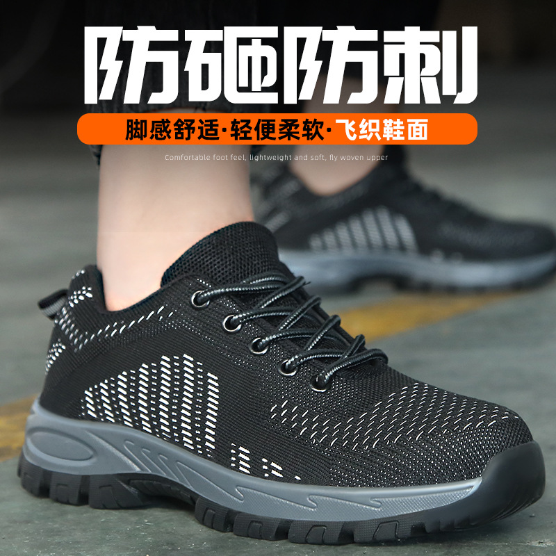 Новая обувь для охраны труда через границу, летающая ткацкая обувь, весенне-осенняя дышащая рабочая обувь, Противоударная и противоскользящая обувь для защиты труда для мужчин