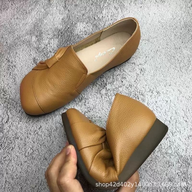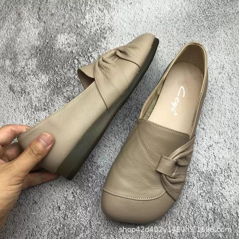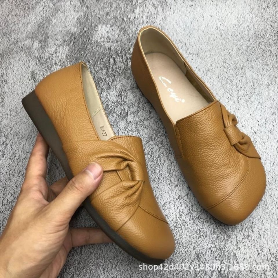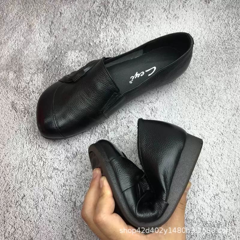 2024, весенне-осенние новые одинарные туфли, женские кожаные туфли в клетку, противоскользящие туфли на подошве с круглым носком, туфли на плоской подошве, женская обувь для мам