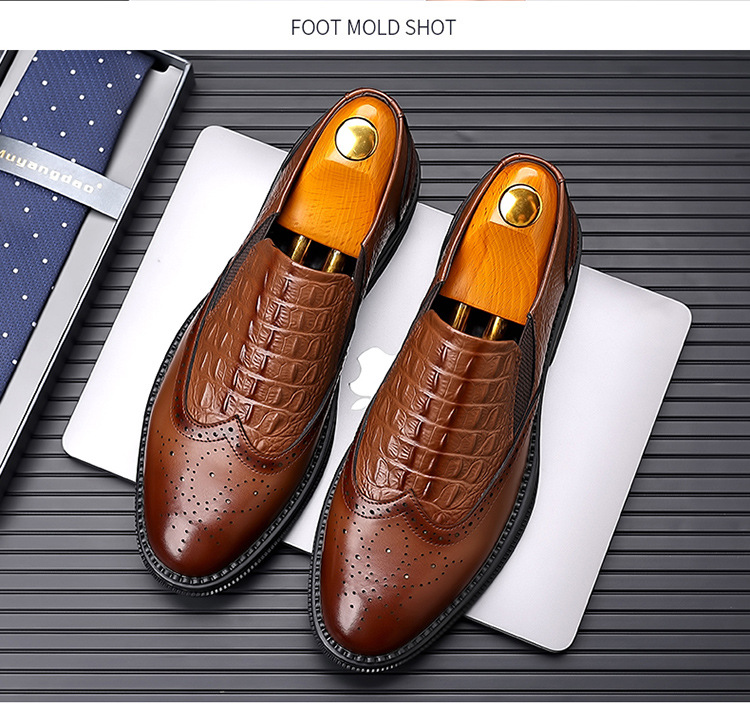 Новая деловая модельная обувь на весну и осень, мужская повседневная мужская обувь с резьбой в стиле рок, дышащие свадебные туфли без шнуровки, модные мужские