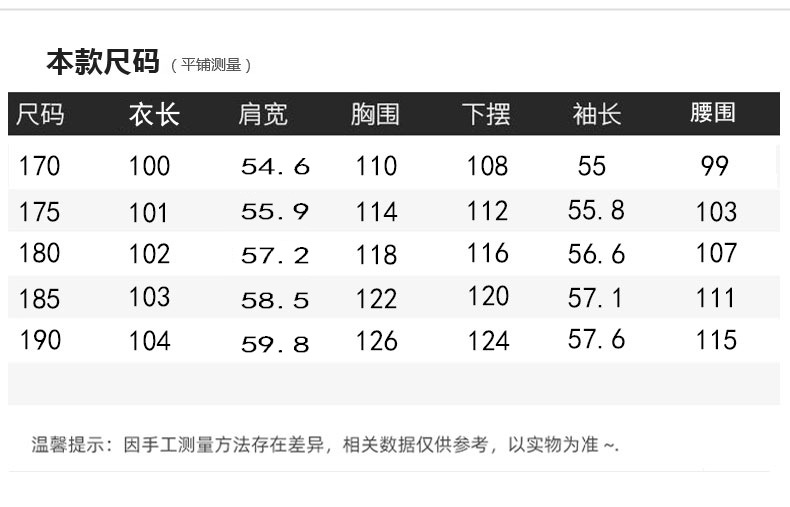 M/170; L/175; XL/180; 2XL/185; 3XL/190