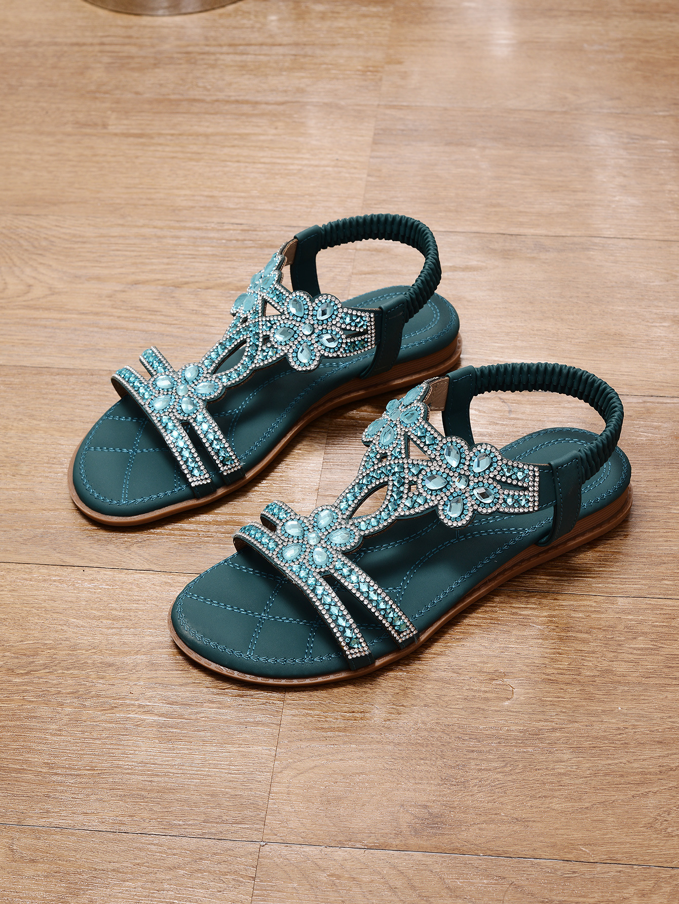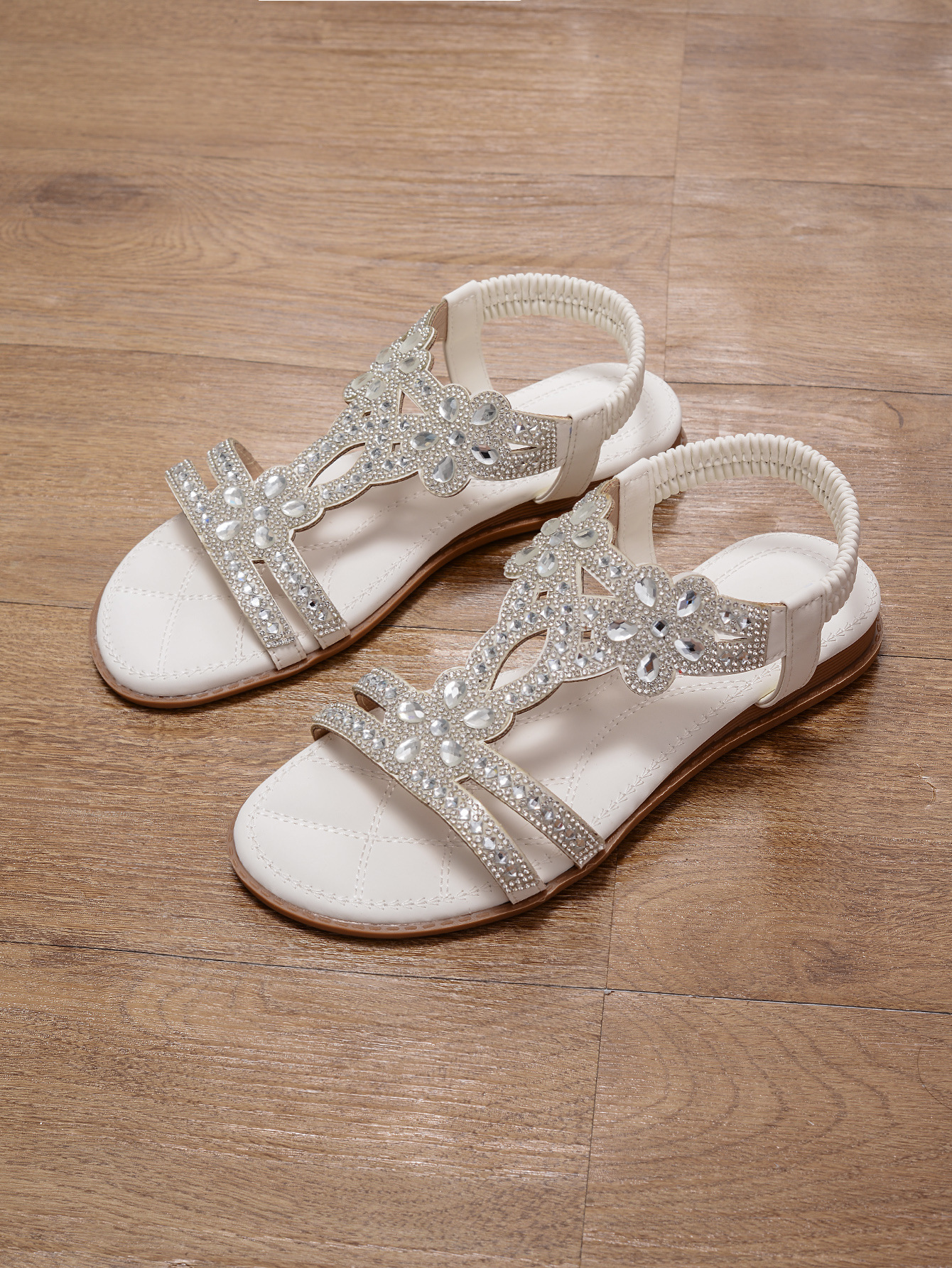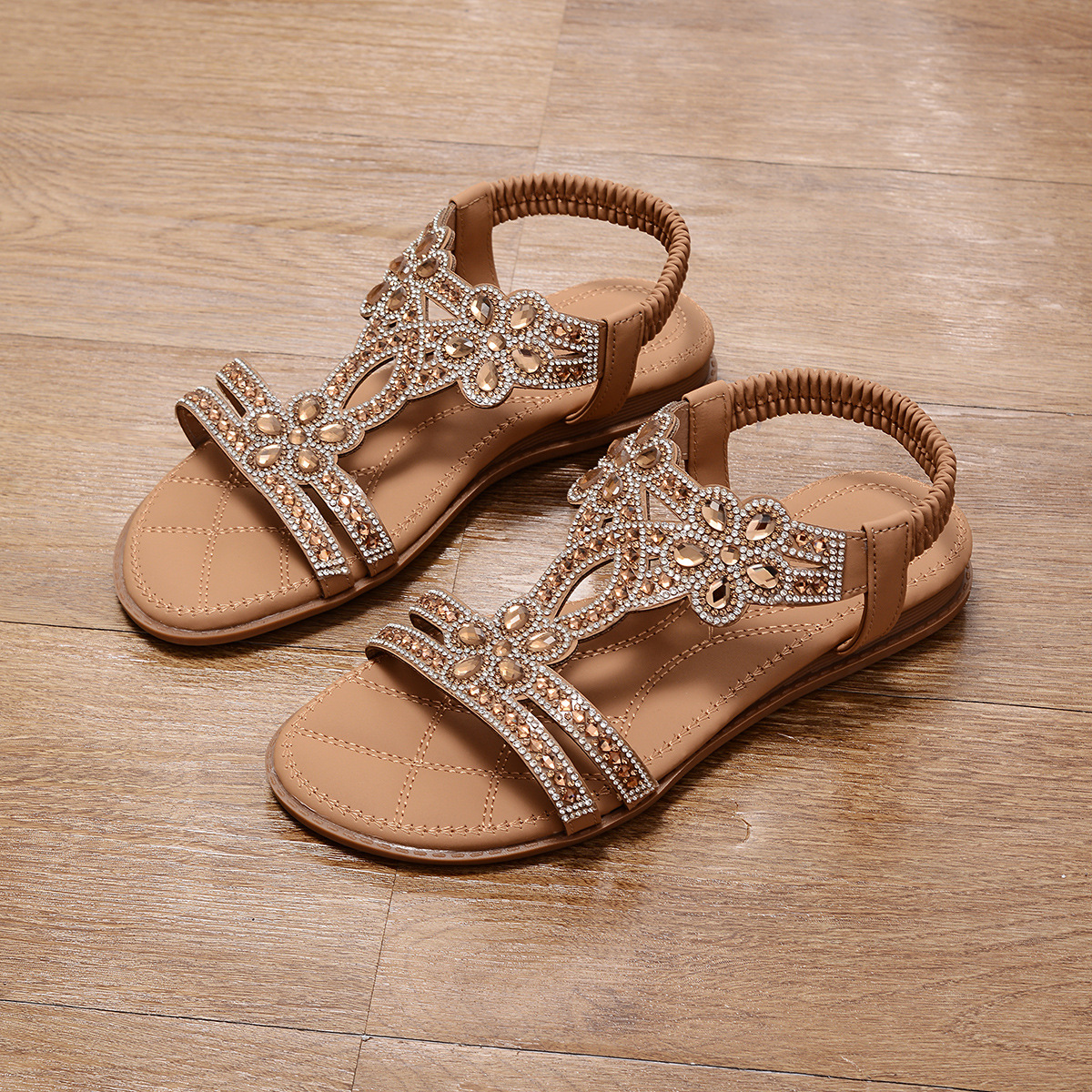Лето 2023 Этнические сандалии богемные винтажные пляжные туфли на плоской подошве больших размеров с бисером верхняя одежда со стразами оптом