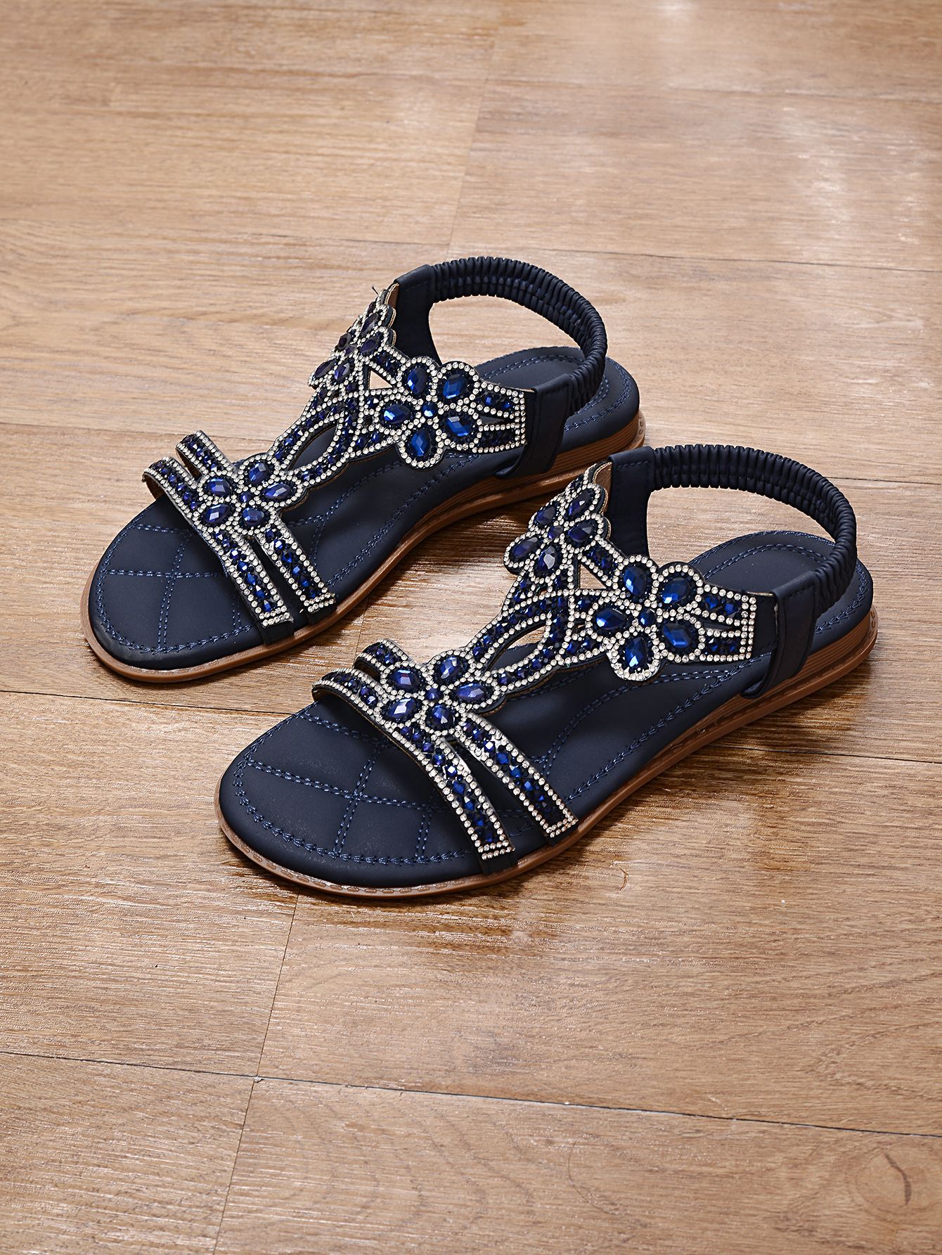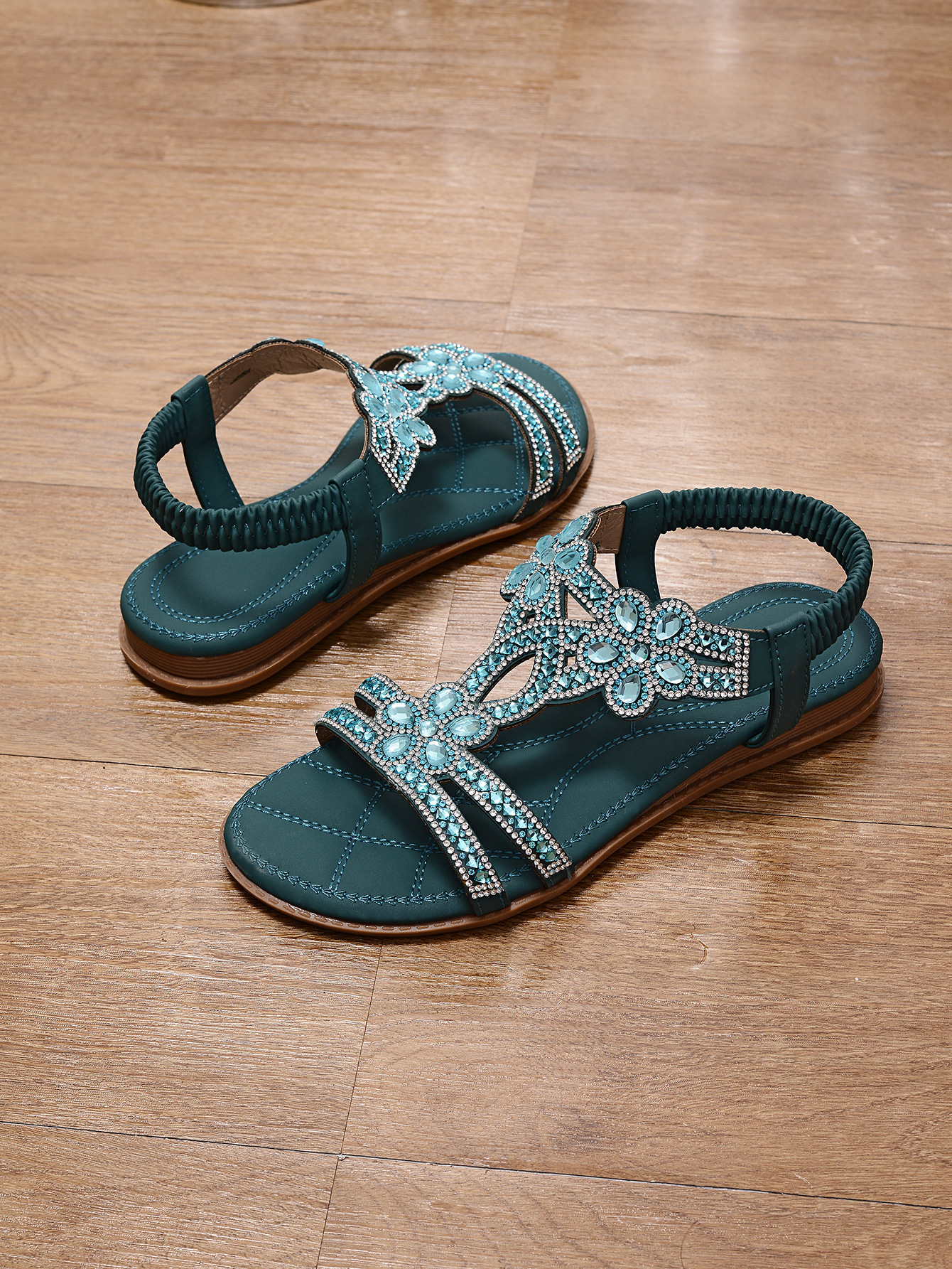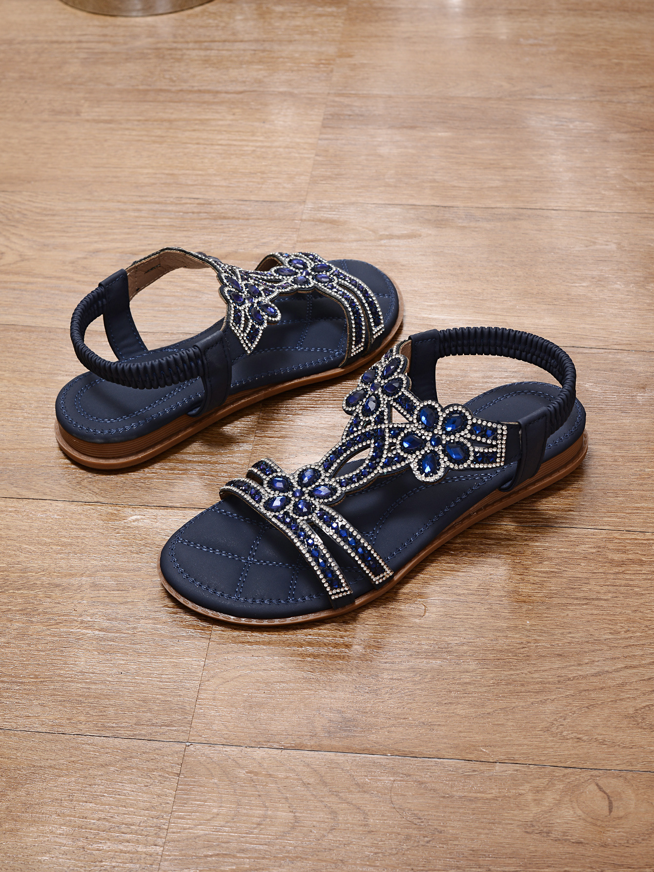 Лето 2023 Этнические сандалии богемные винтажные пляжные туфли на плоской подошве больших размеров с бисером верхняя одежда со стразами оптом
