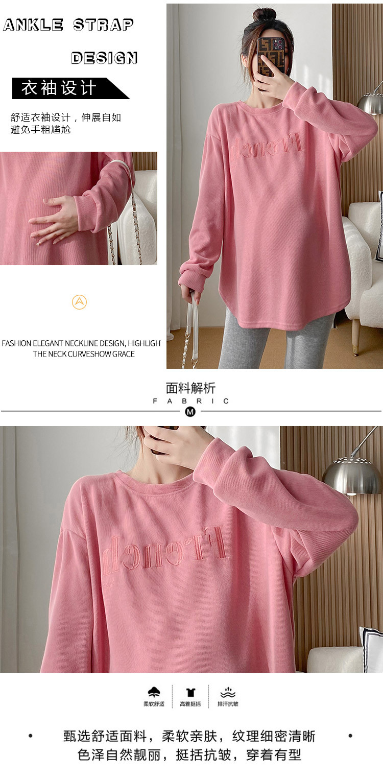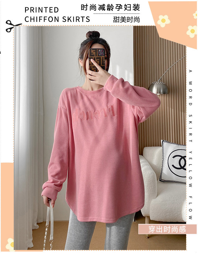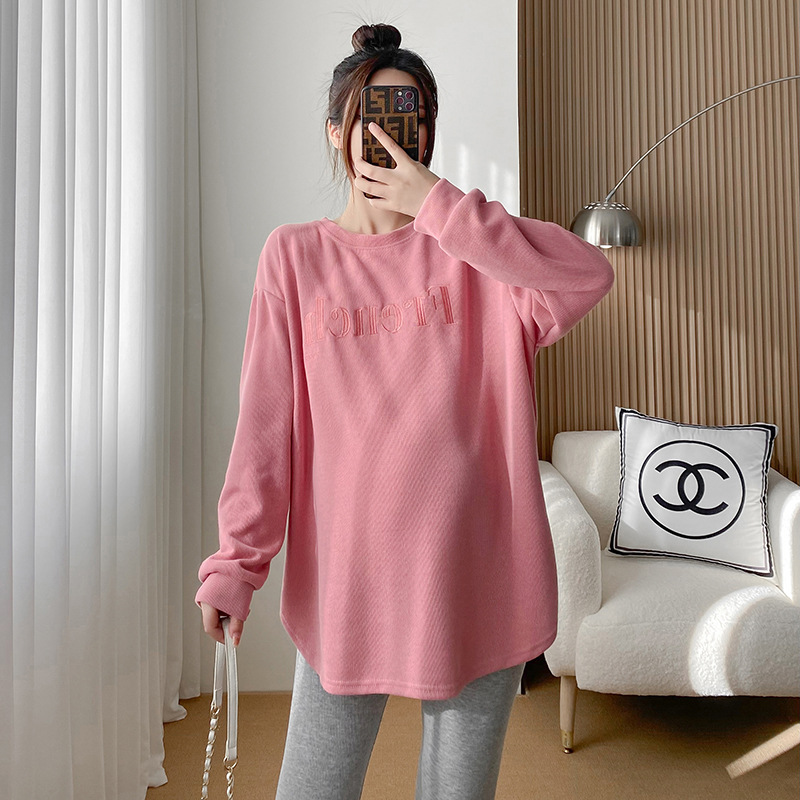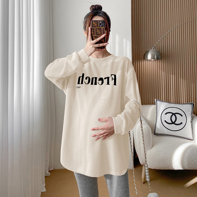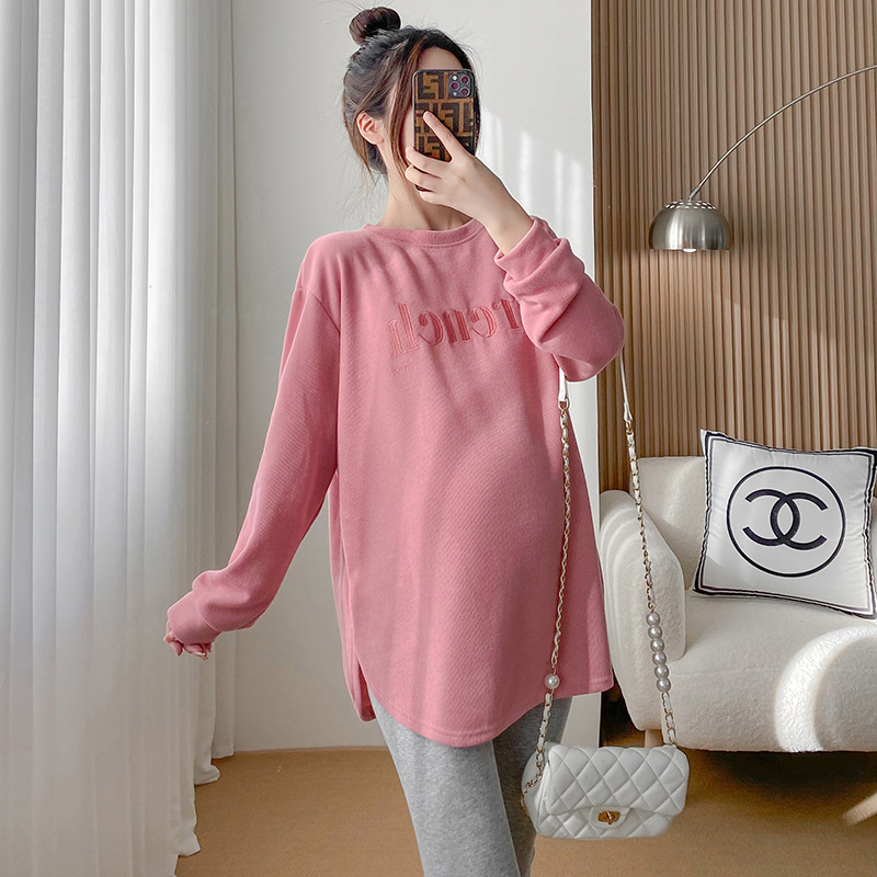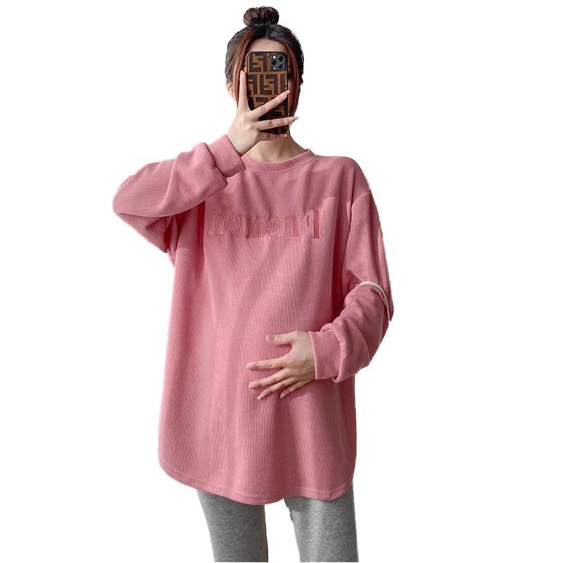 Топ с длинным рукавом для беременных женщин на весну и осень, свитер хорошего качества с Вышивкой Букв в Корейском стиле, свободная универсальная одежда для похудения для беременных