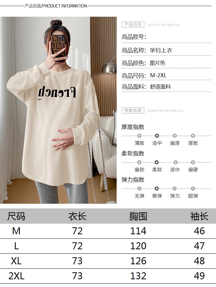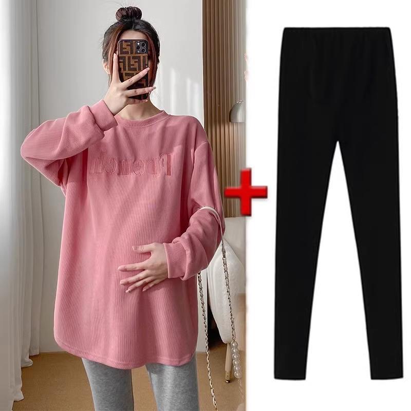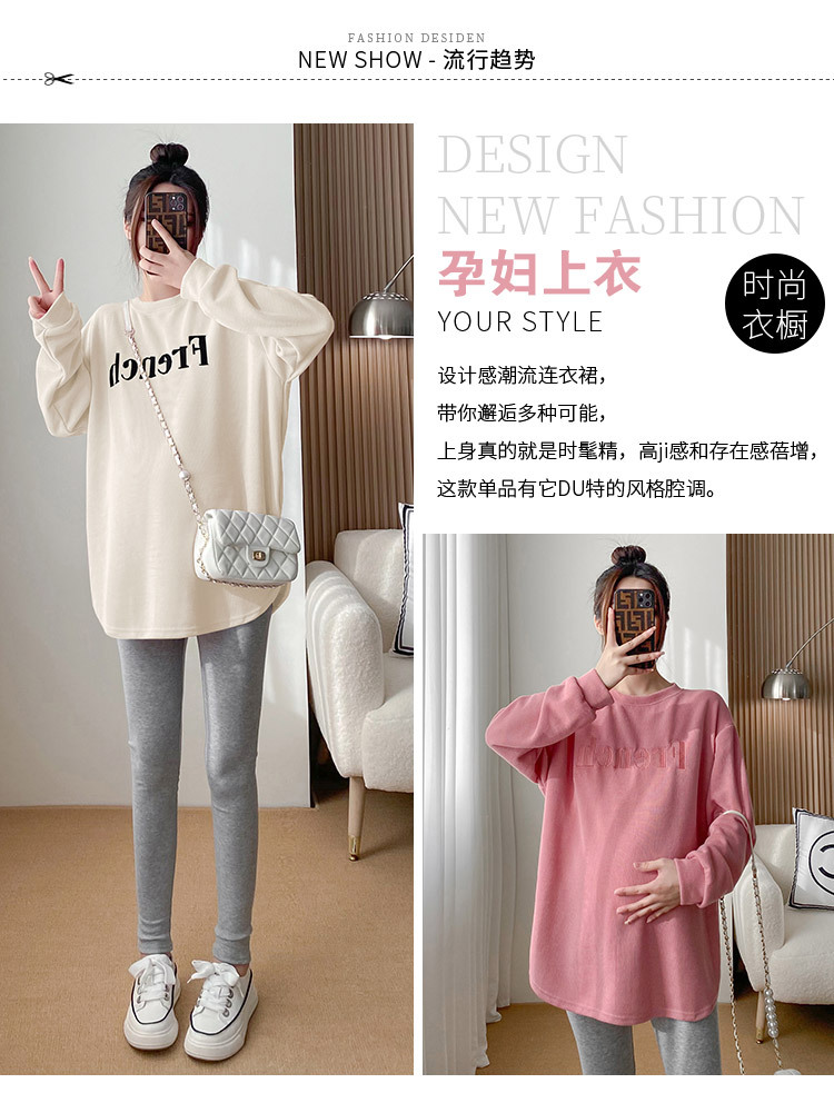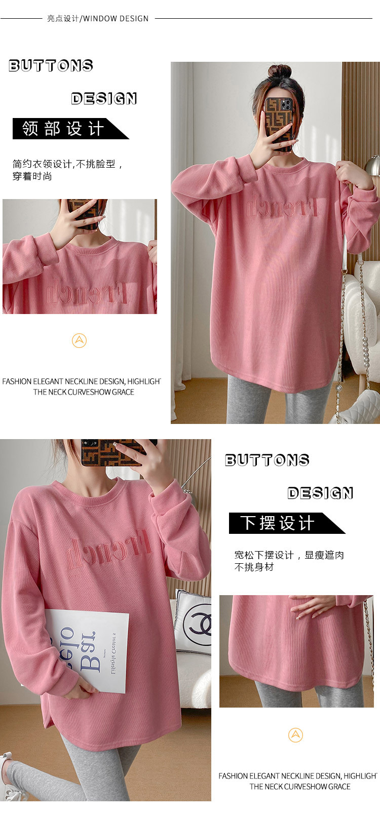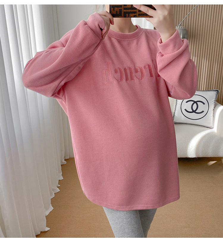 Топ с длинным рукавом для беременных женщин на весну и осень, свитер хорошего качества с Вышивкой Букв в Корейском стиле, свободная универсальная одежда для похудения для беременных