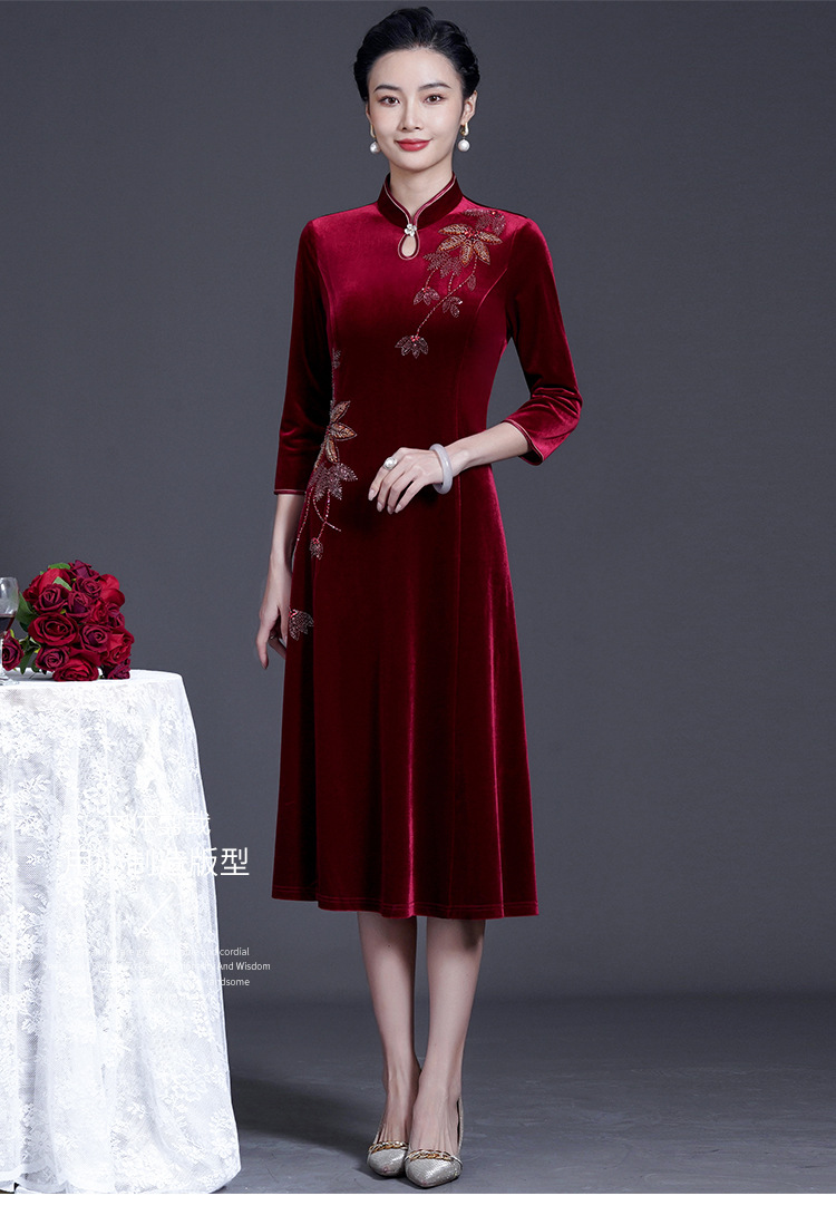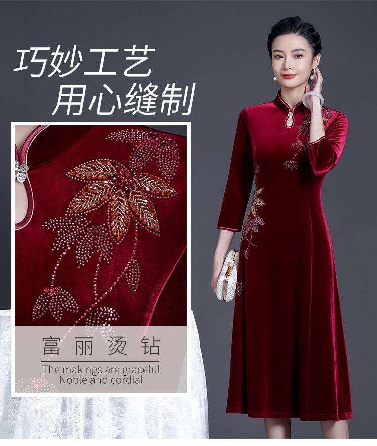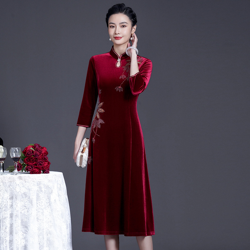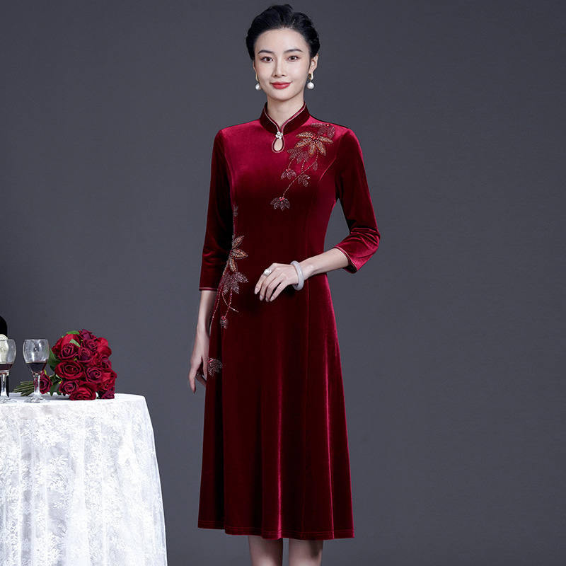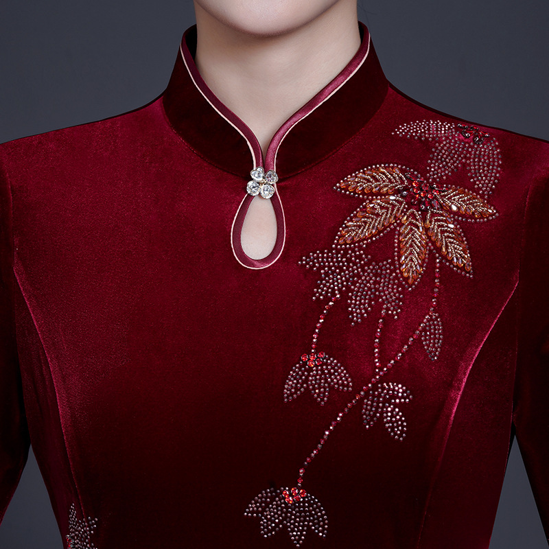 Молодая мама средних лет свадебное платье свекровь свадебный банкет золотой бархатный чонсам модное платье невесты благородная свадьба