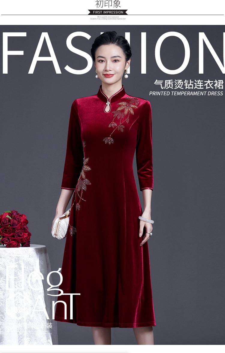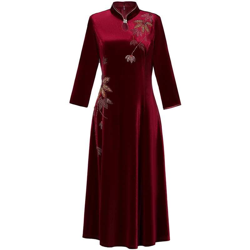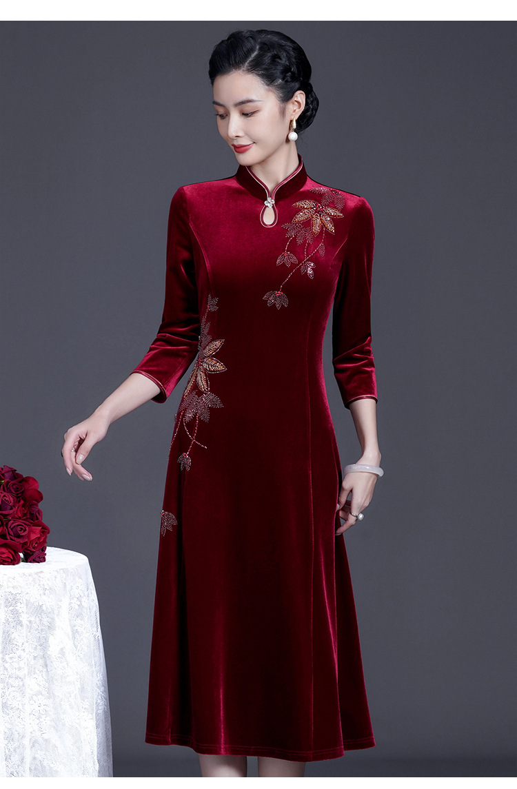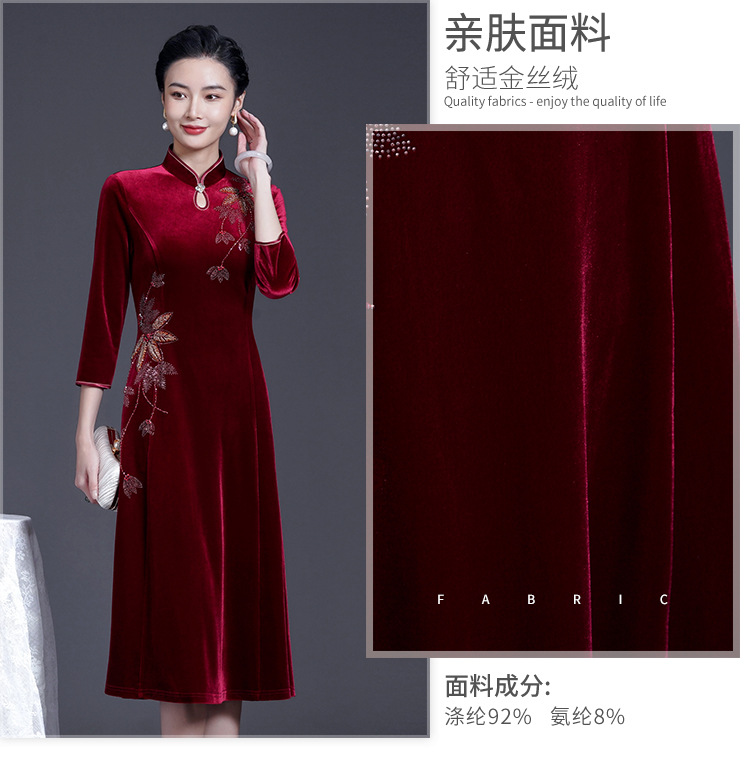 Молодая мама средних лет свадебное платье свекровь свадебный банкет золотой бархатный чонсам модное платье невесты благородная свадьба