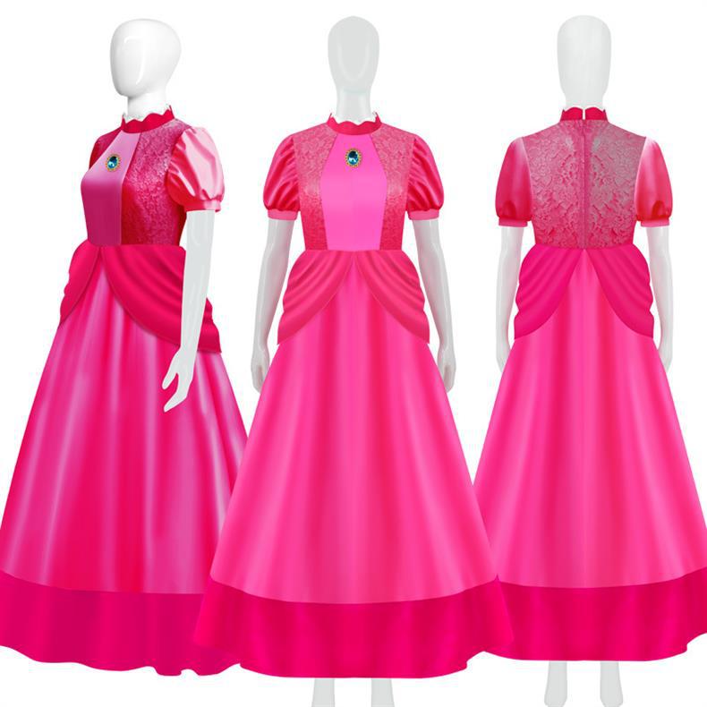 Ребенок Мэри Cos костюм Марио Бриджит Персик Принцесса Розовое платье Косплей Костюм