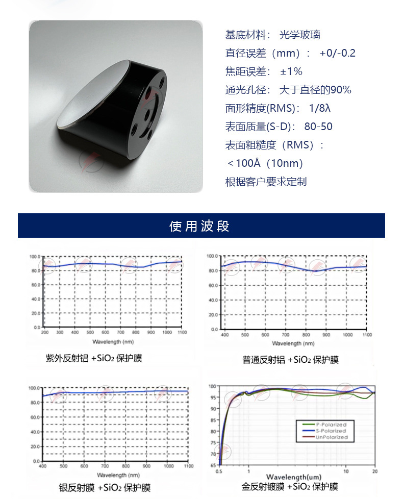 Диаметр 50,8 мм 90 градусов внеосевое параболическое зеркало защита зеркала с оптической фокусировкой отражение золота