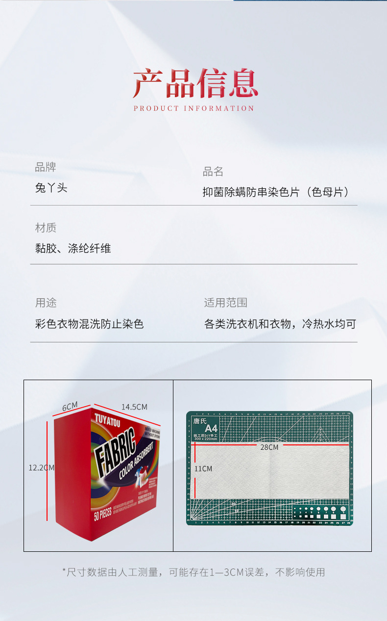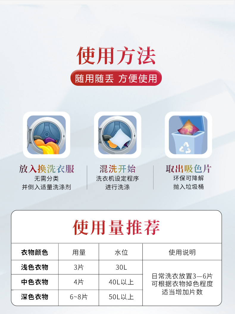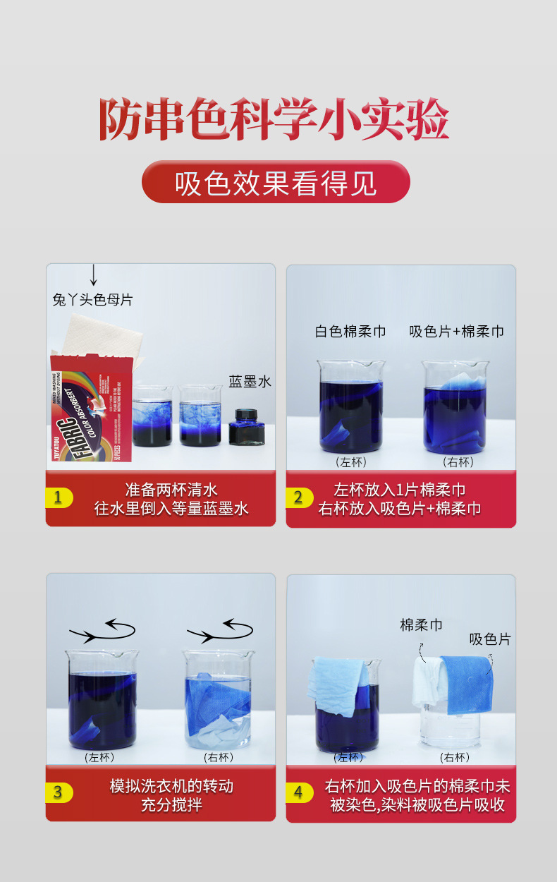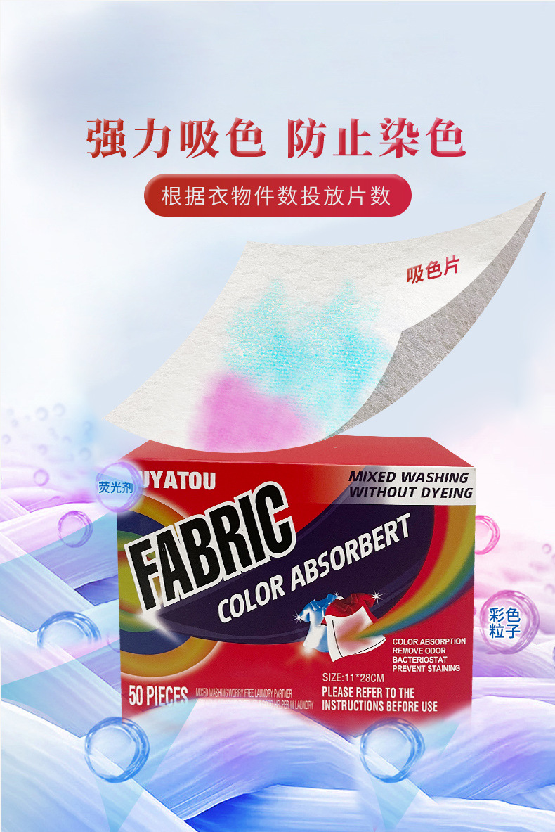 Цветопоглощающая пленка Анти-окрашивание Одежда Цветопоглощающая бумага Анти-Перекрестная цветная струна Крашение Цветопоглощающая пленка Стиральная машина Color Masterbatch Домашняя упаковка