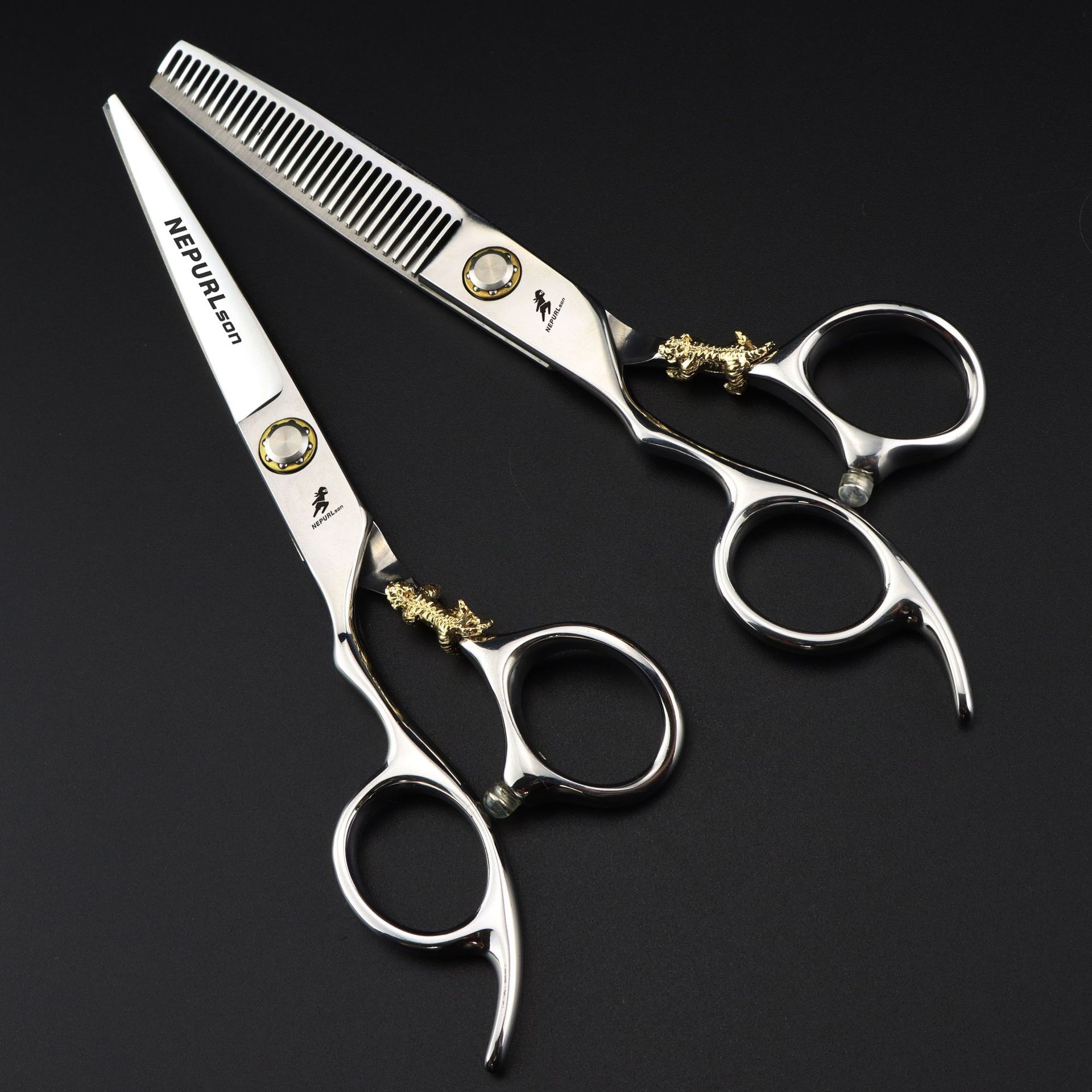 6,0-дюймовые Парикмахерские ножницы Neptsen Silver Golden Tiger Левая рука Плоские ножницы Лю Хай Ножницы Зубные ножницы Тонкие ножницы