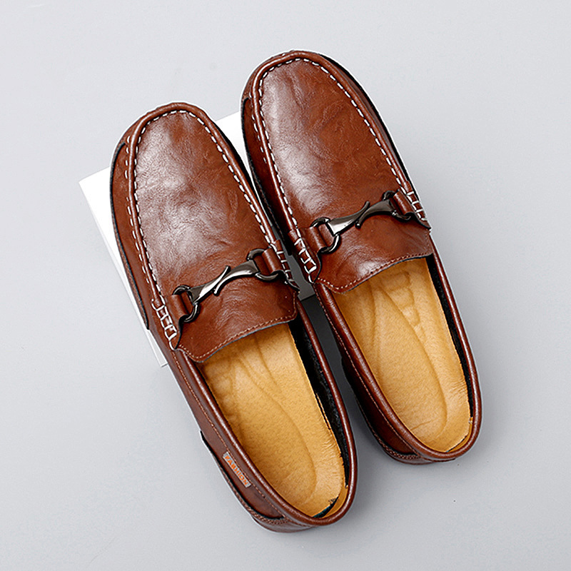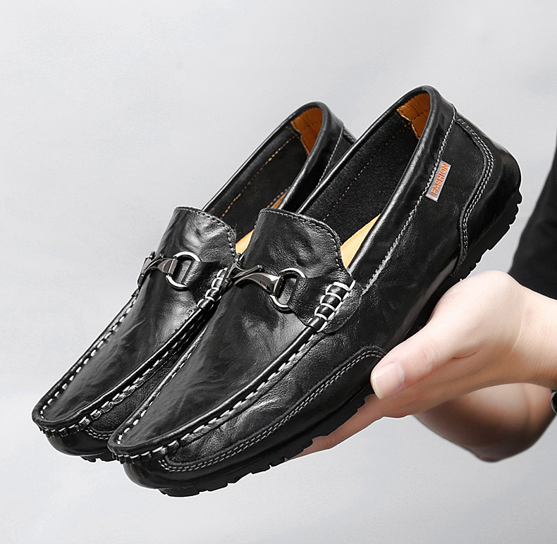 Прямая трансляция Взрывы Обувь из натуральной кожи из воловьей кожи Трансграничная Мужская обувь больших размеров из лакированной кожи без шнуровки для вождения Повседневная кожаная обувь
