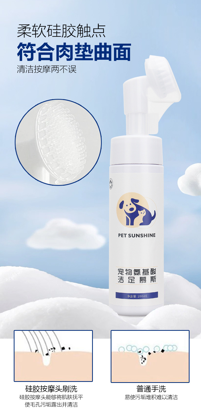 Petsunshine популярная пена для чистки ног домашних животных одноразовая чистка ног кошек и собак мясная подушка уход